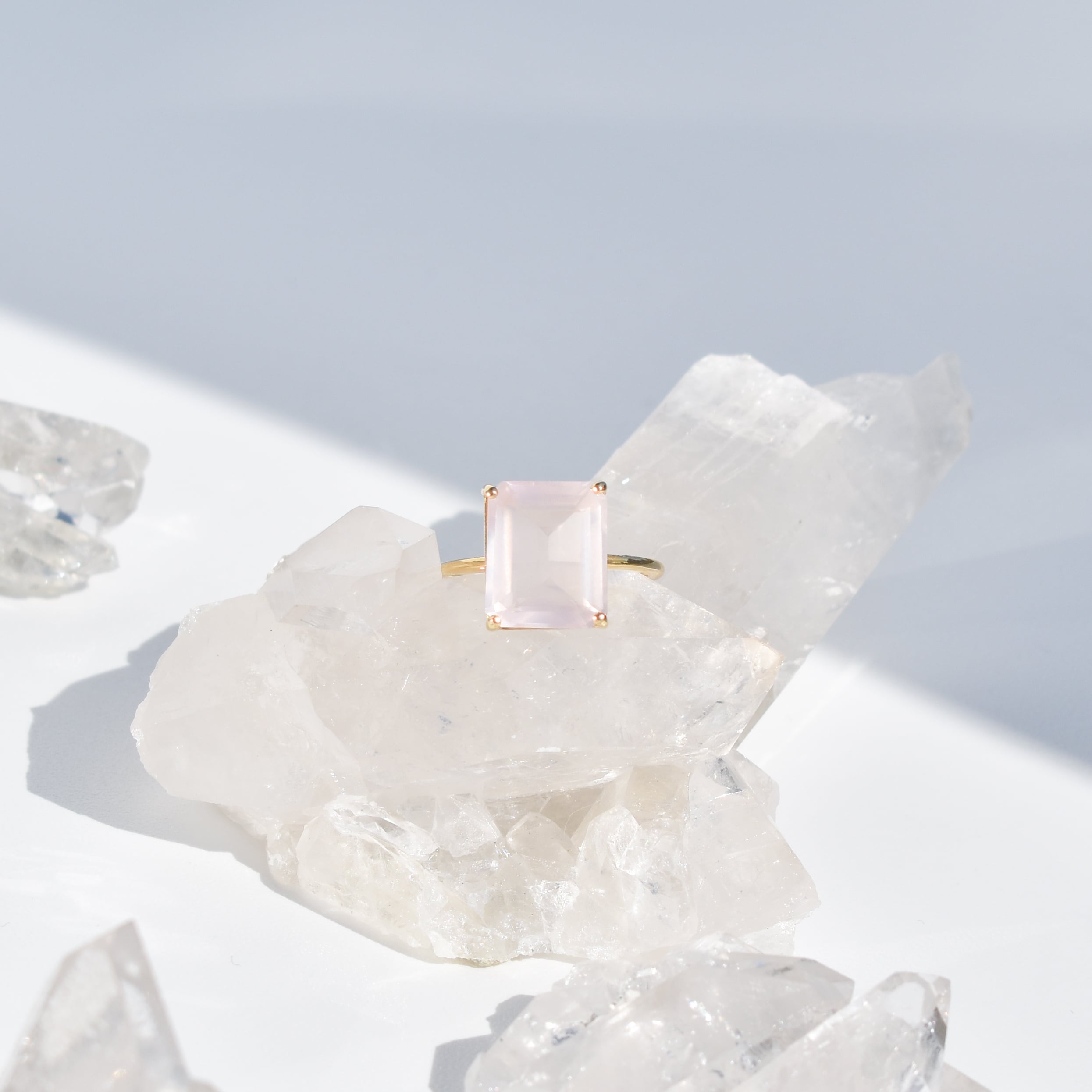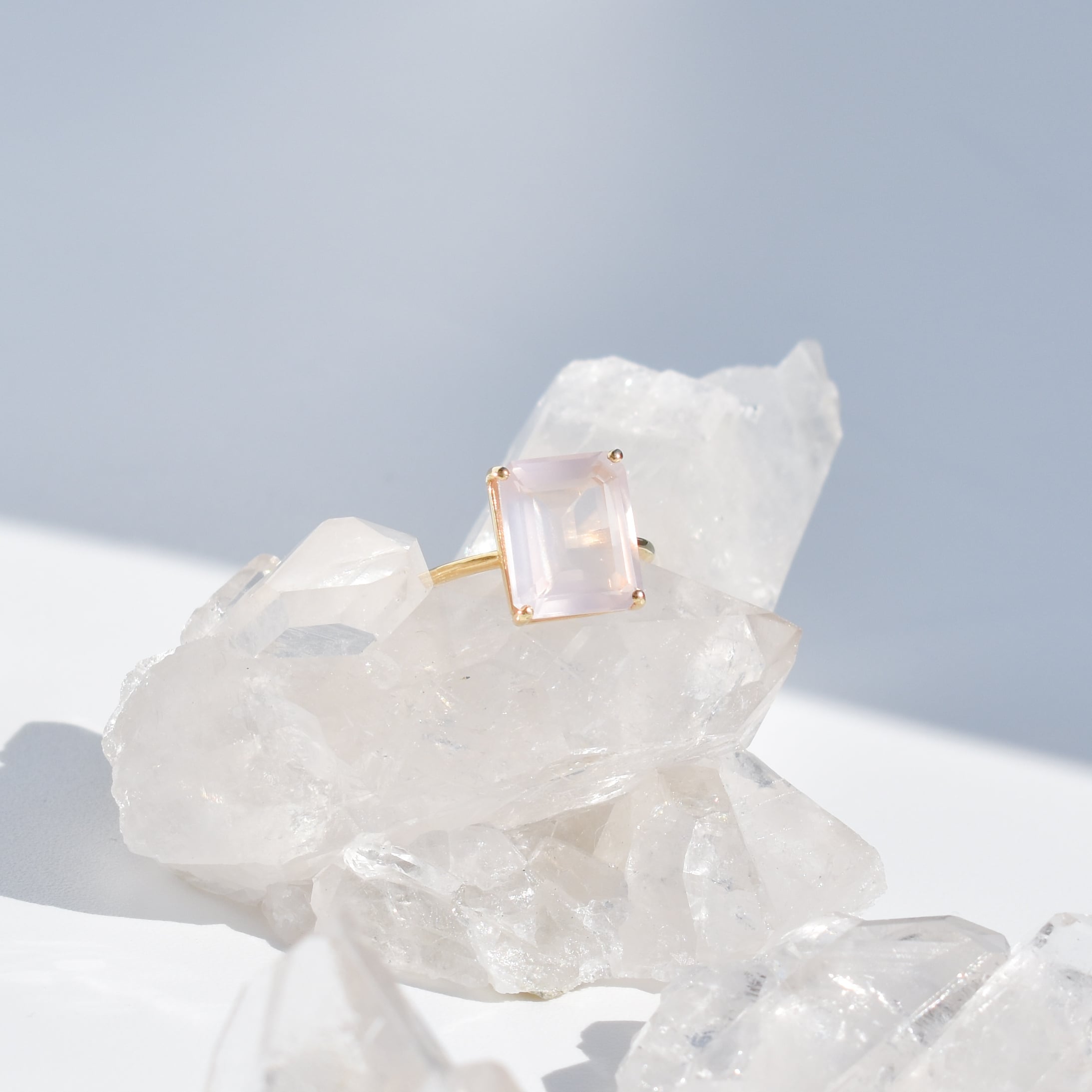 *High Quality*《Roma Jewelry》Rose Quartz Rectangle Ring