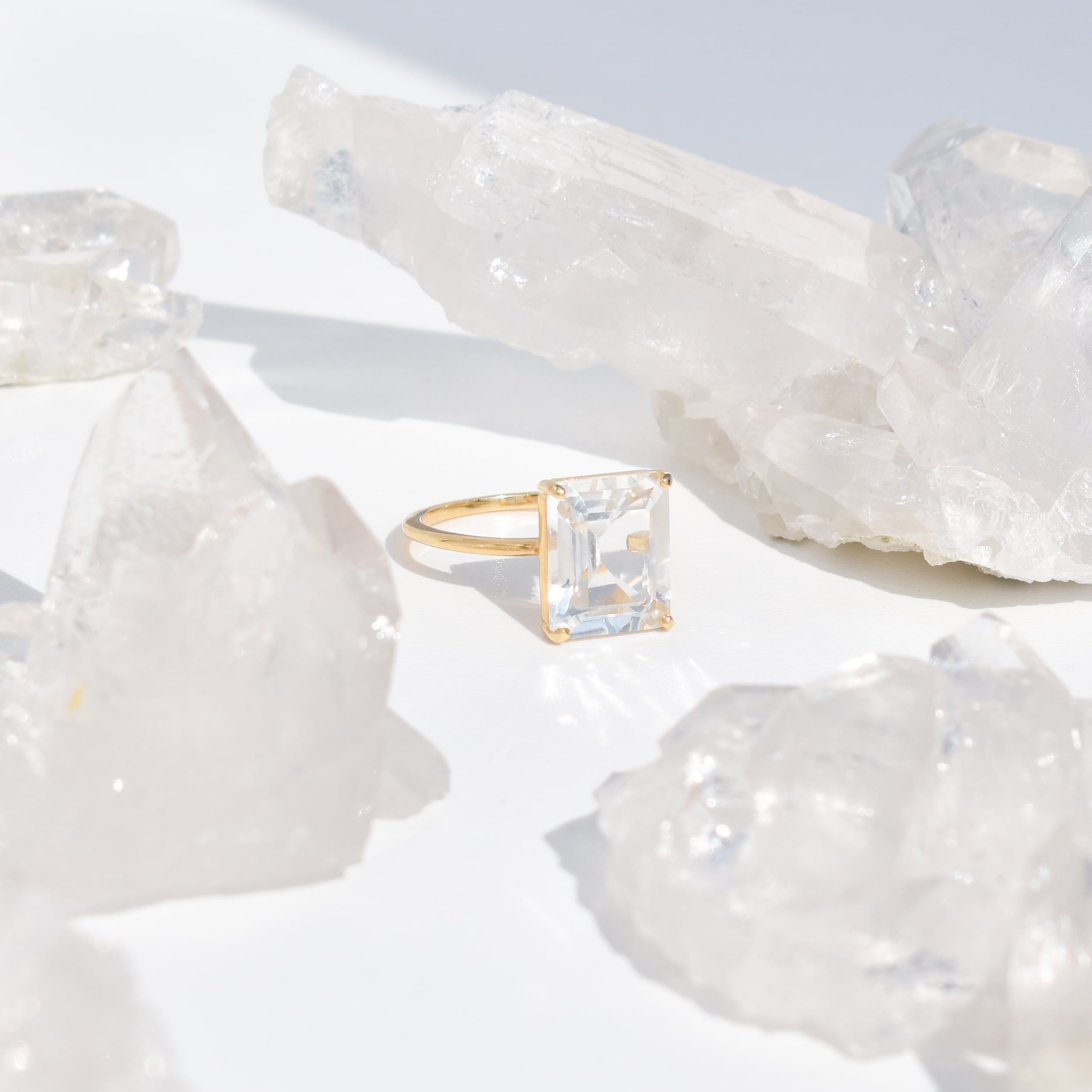 *High Quality*《Roma Jewelry》White Topaz Rectangle Ring