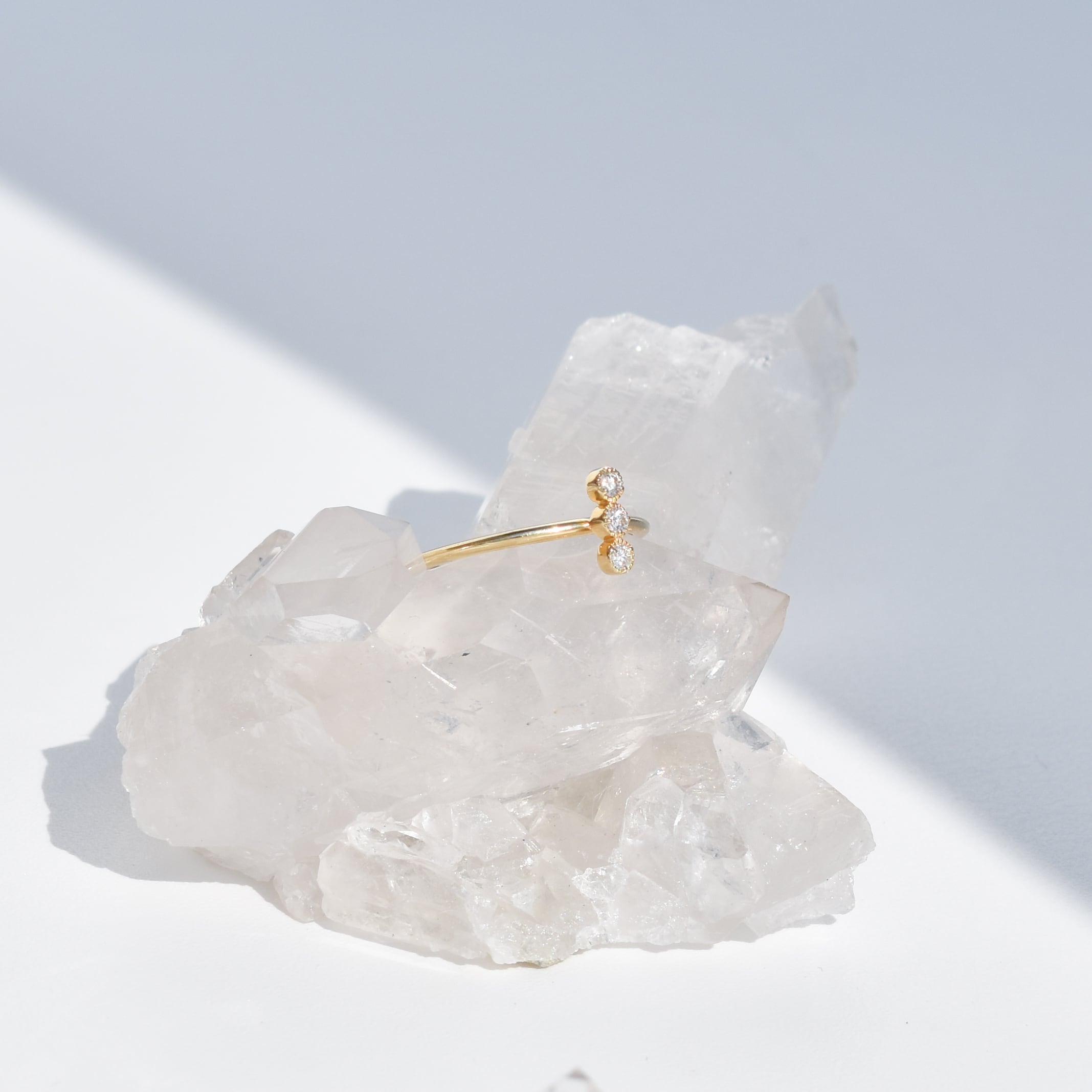 繊細に配されたダイヤモンドが、光の粒を散りばめたように輝くリング。