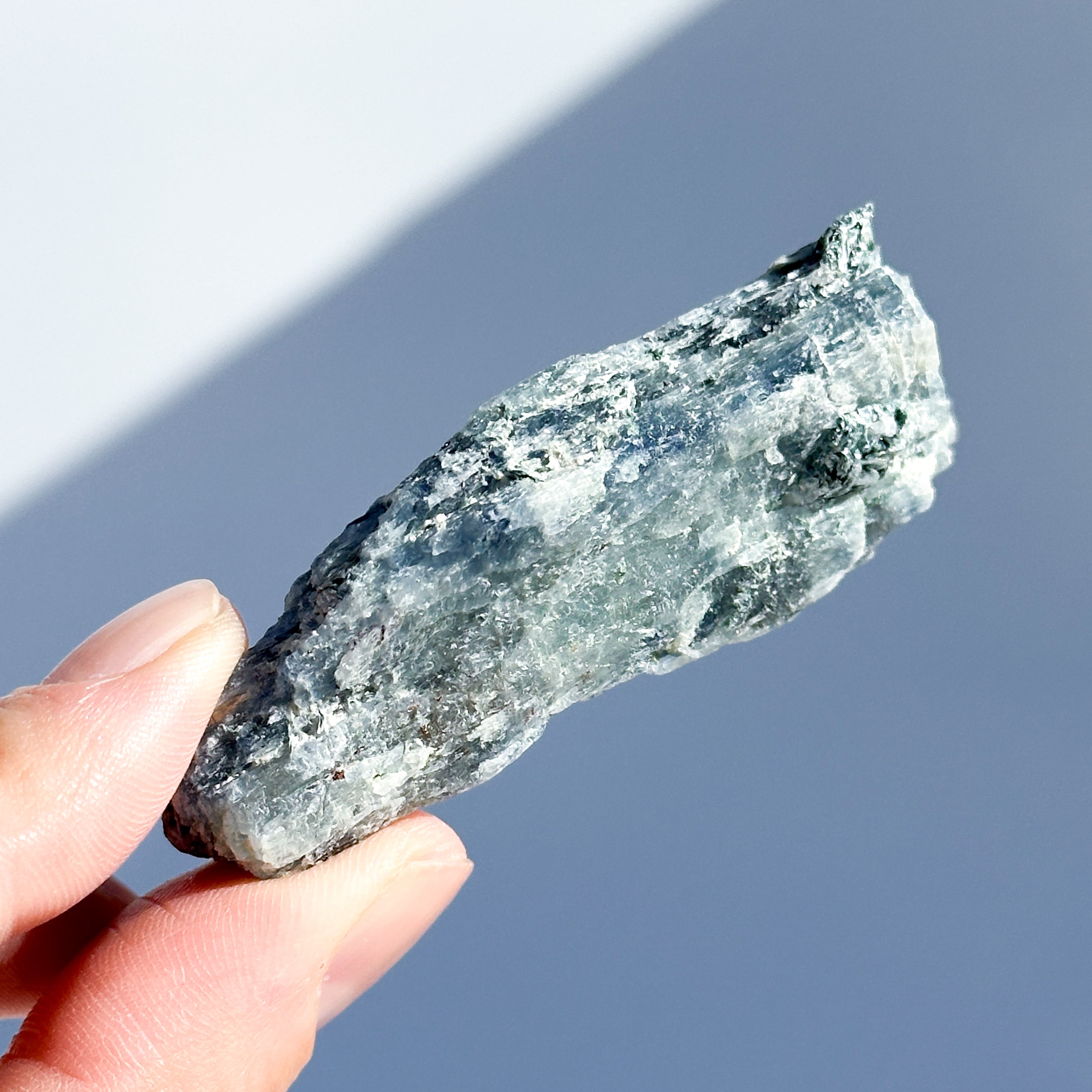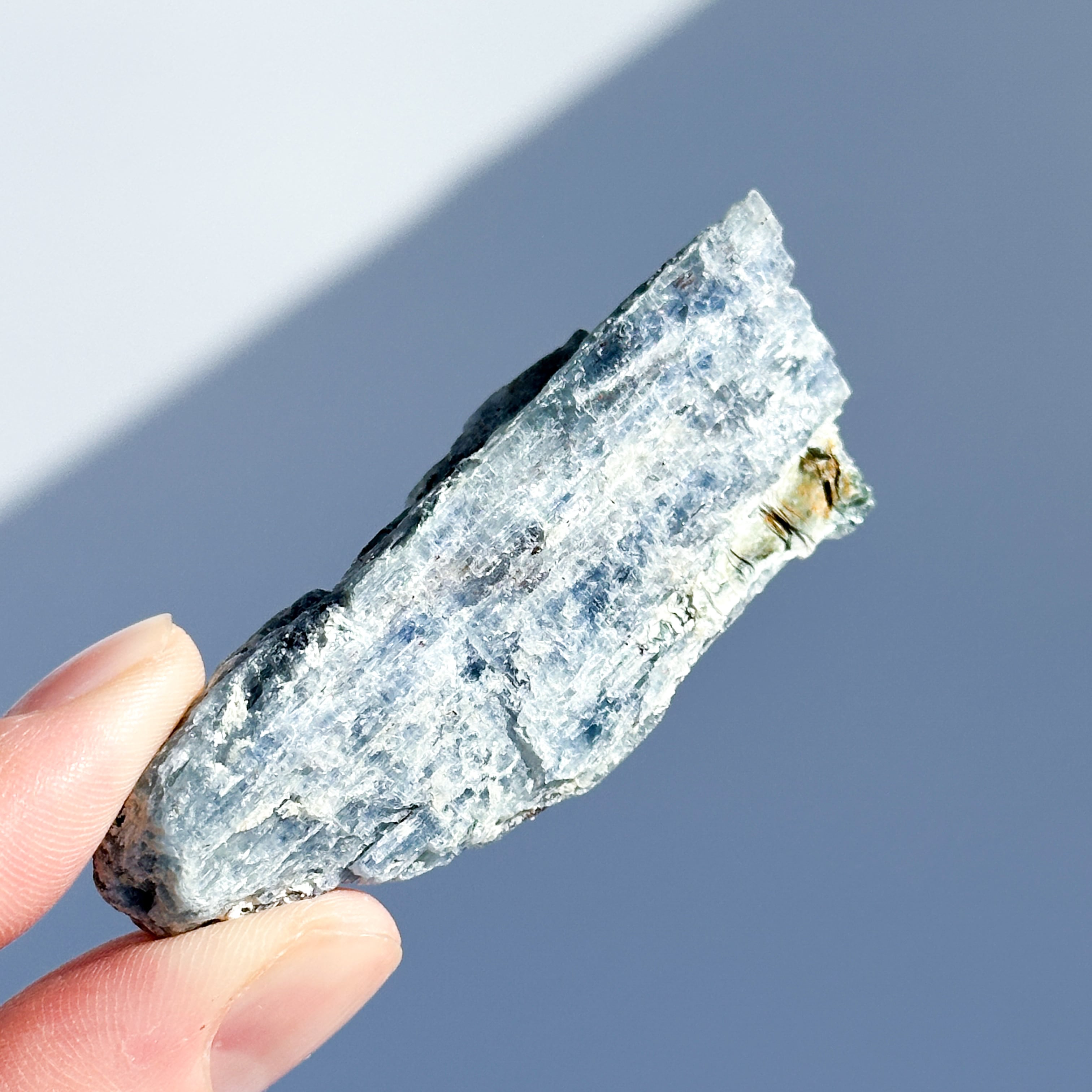柱状の結晶が幾重にも重なった青の層が美しいカイヤナイト。