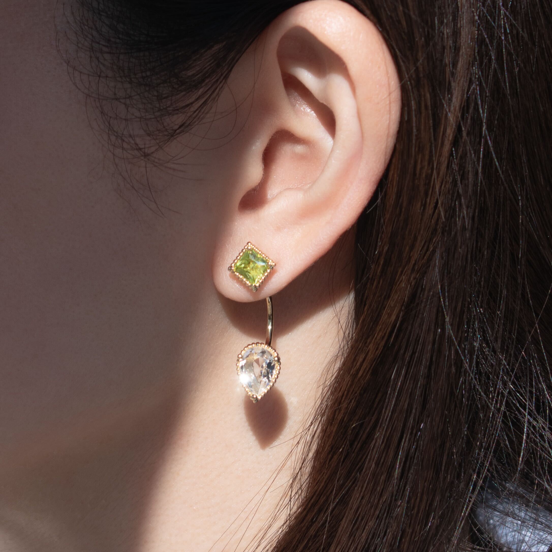 《Roma Jewelry》Peridot×ClearQuartz Drop pierced earring