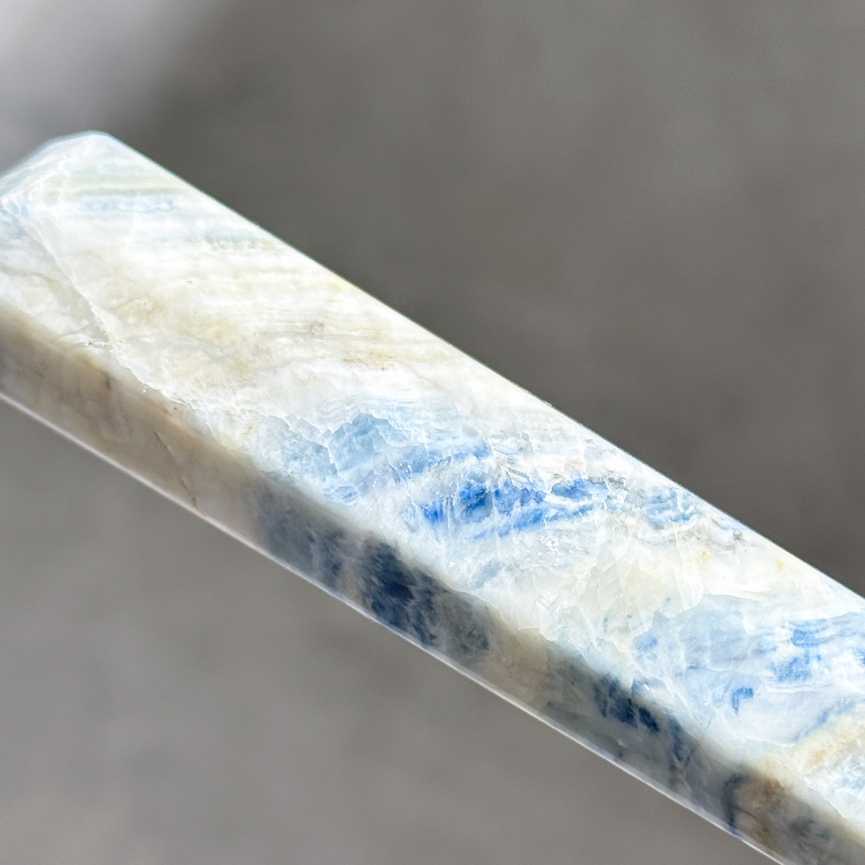 個体差がやや大きいですが、縞模様がクレイジーレースアゲートやフローライトにも見えたりと、見る毎に発見があり観察し甲斐がある天然石です。