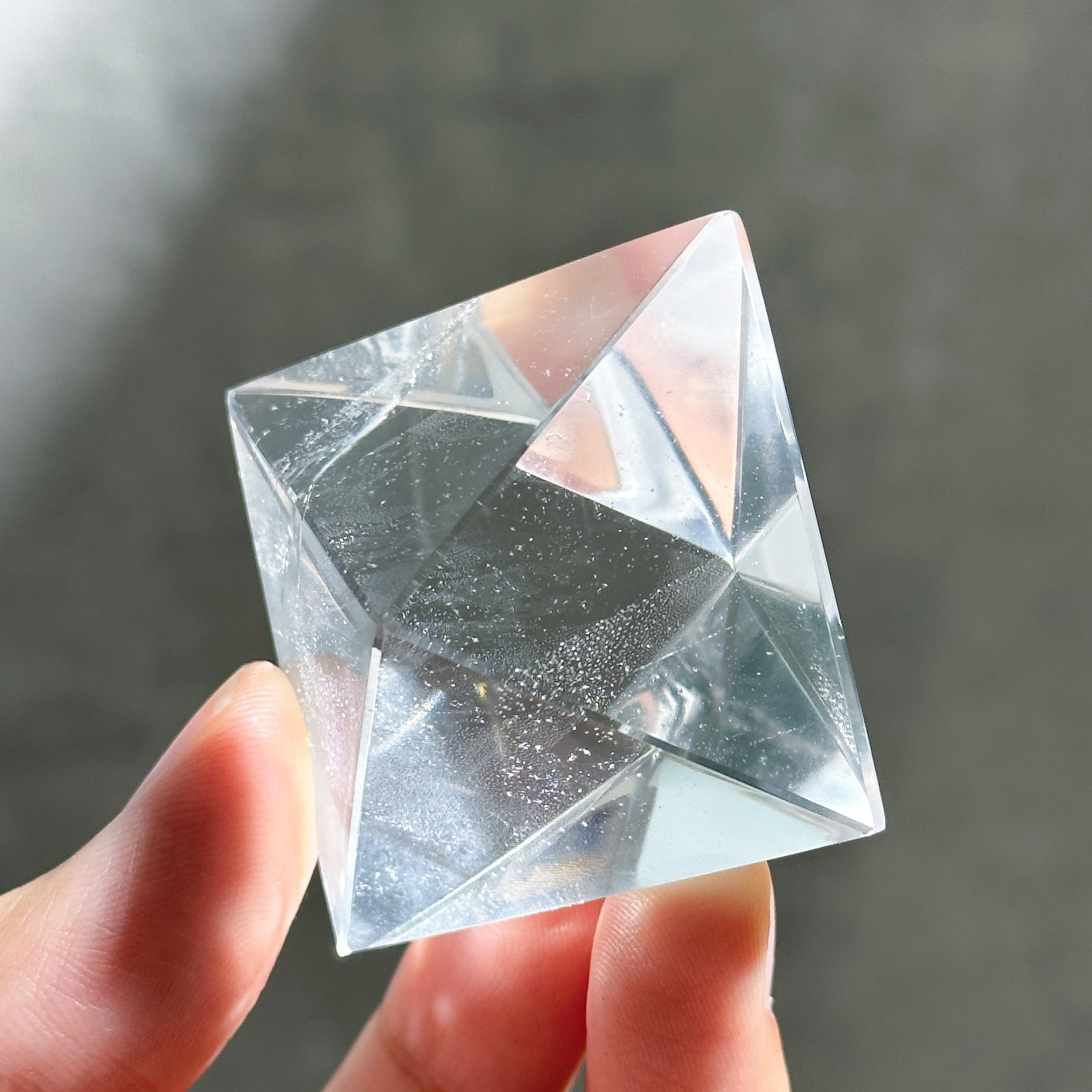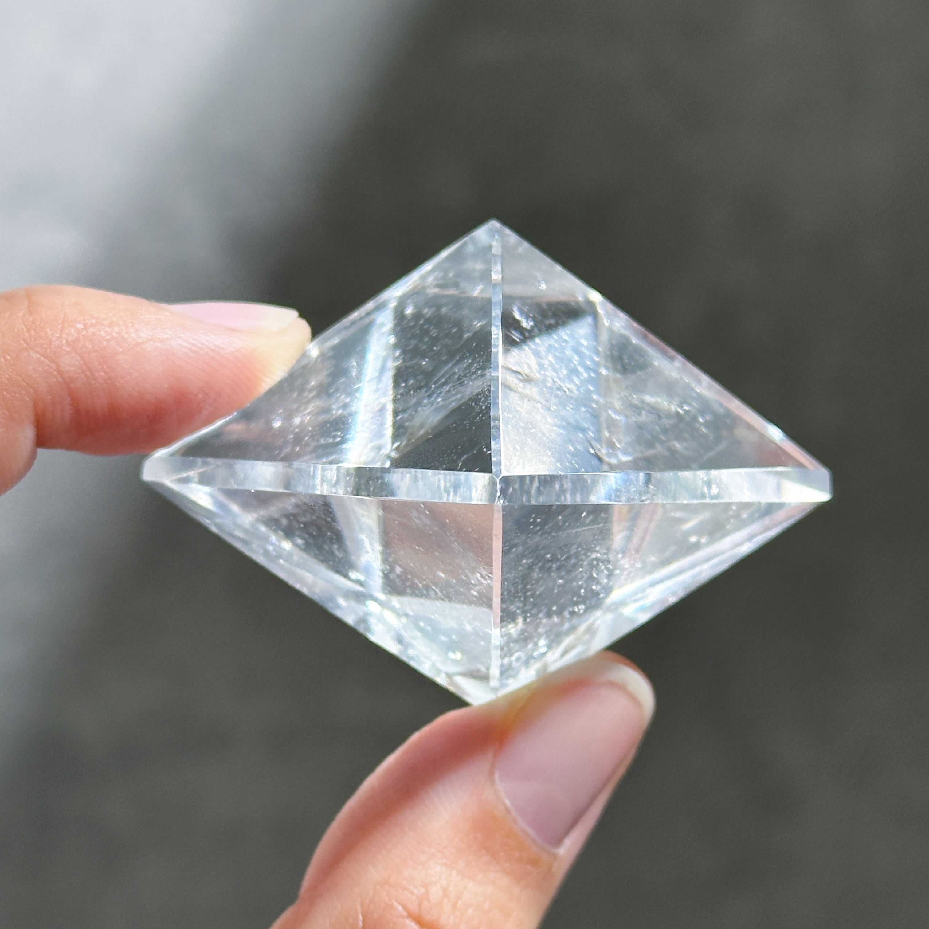 ブラジル・ミナスジェライス産のクリアクォーツを、正八面体に研磨したものです。