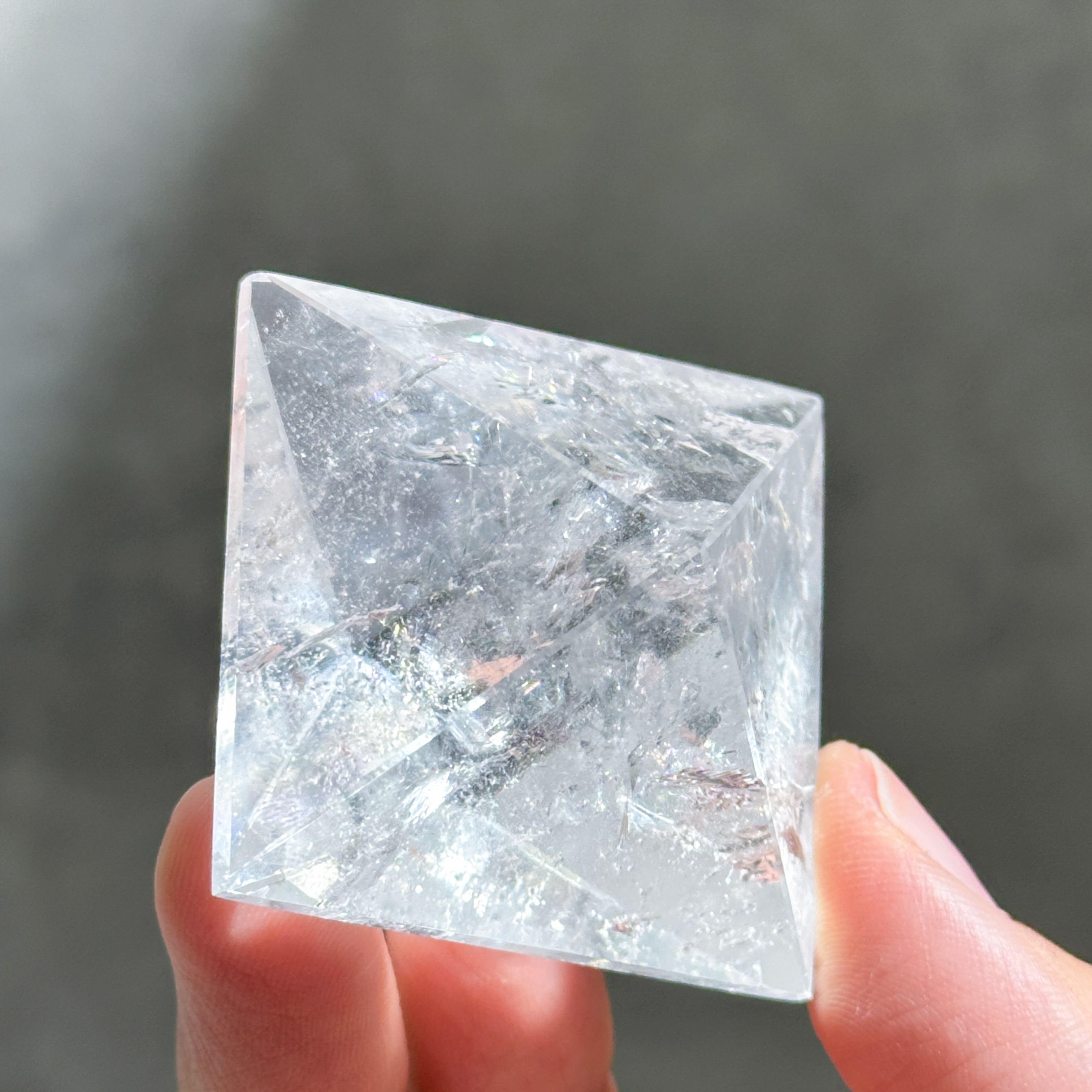 ブラジル・ミナスジェライス産のクリアクォーツを、正八面体に研磨したものです。