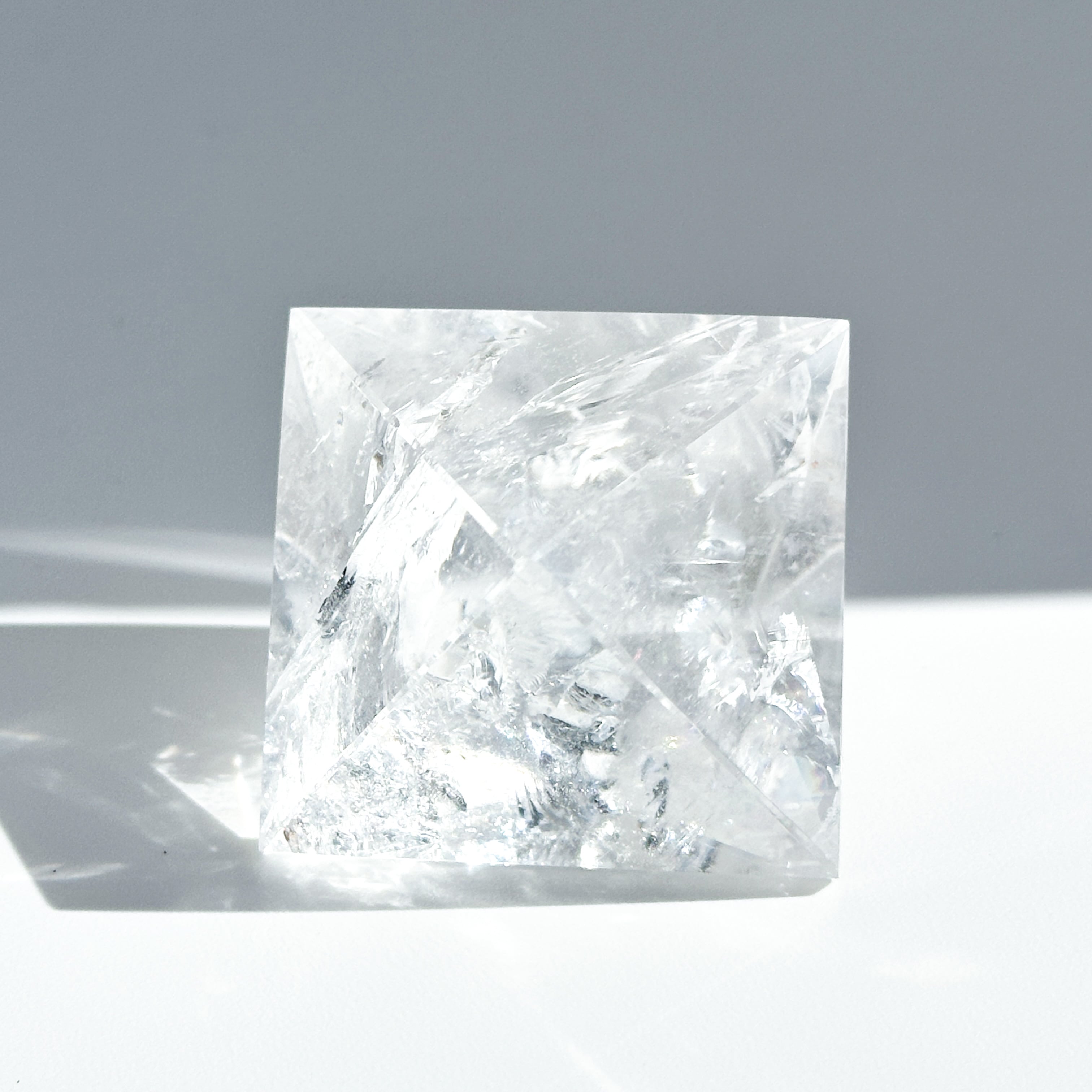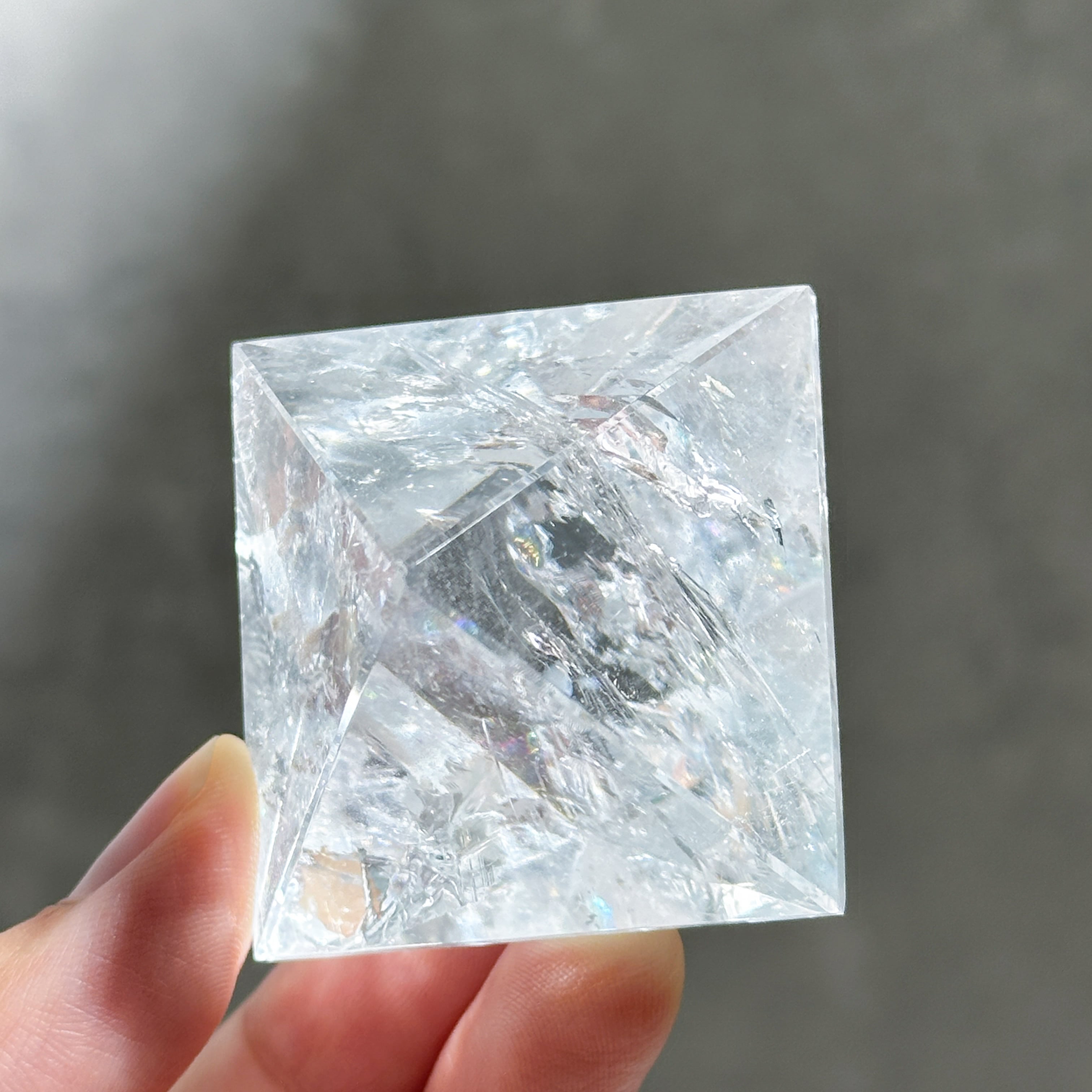 ブラジル・ミナスジェライス産のクリアクォーツを、正八面体に研磨したものです。