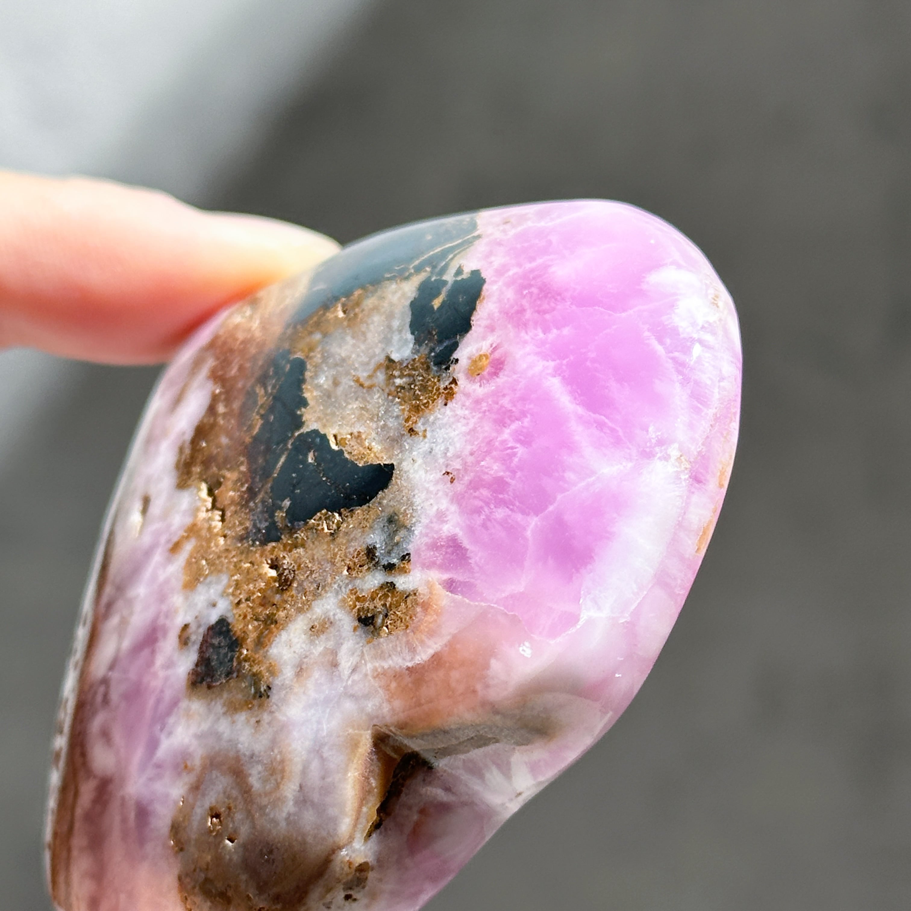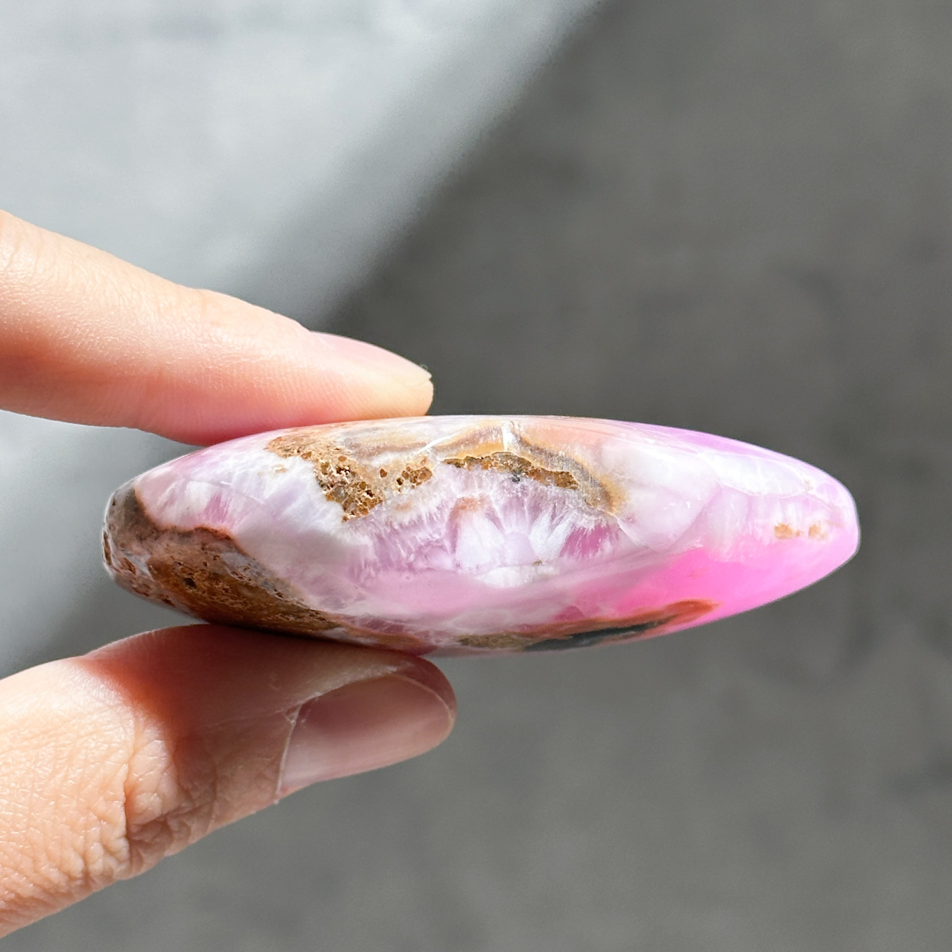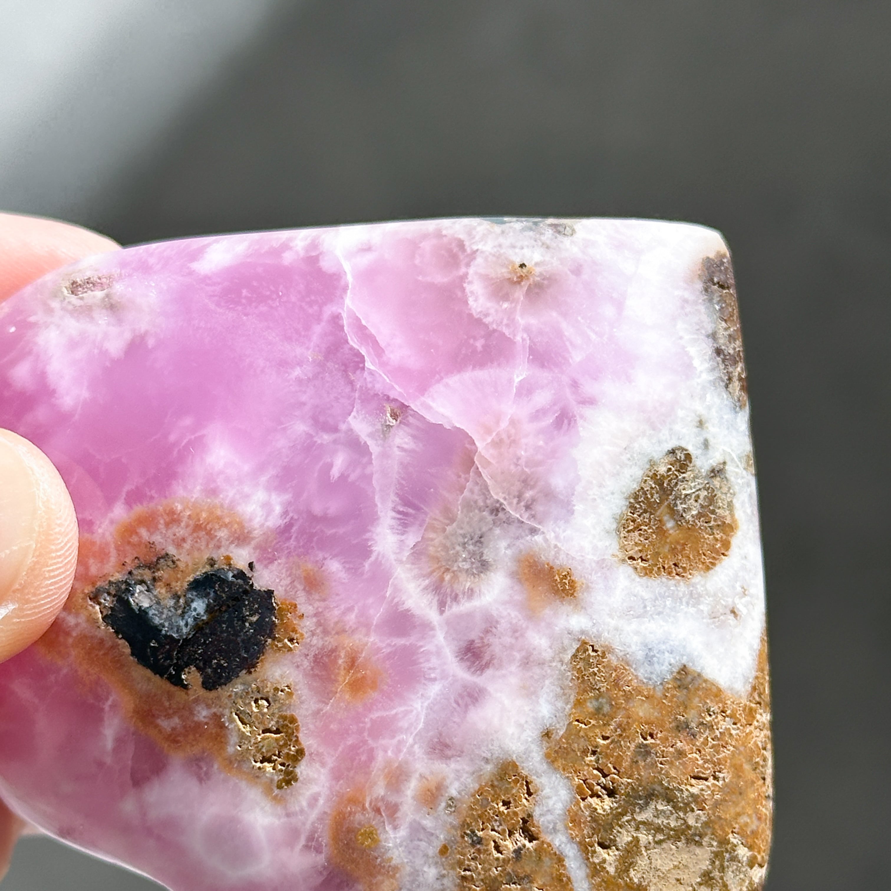 白色の部分も同じアラゴナイトです。アラゴナイト自体は世界中で産出する石ですが、このように、白とピンクが混じったものは、他に類を見ない非常に珍しいものです✧