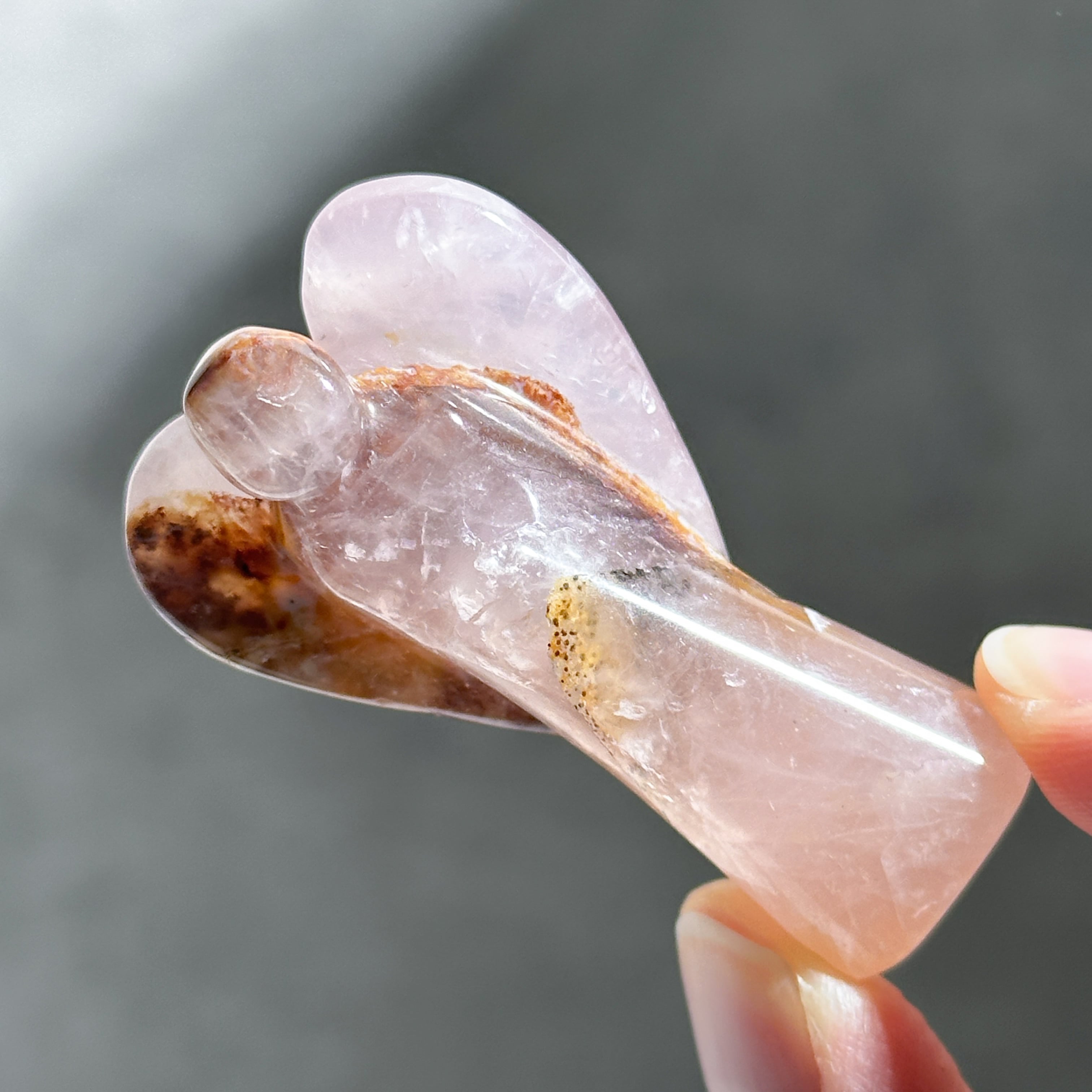 ゴールデンヒーラー×ローズクォーツを、小さなエンジェルの形に彫刻いたしました。