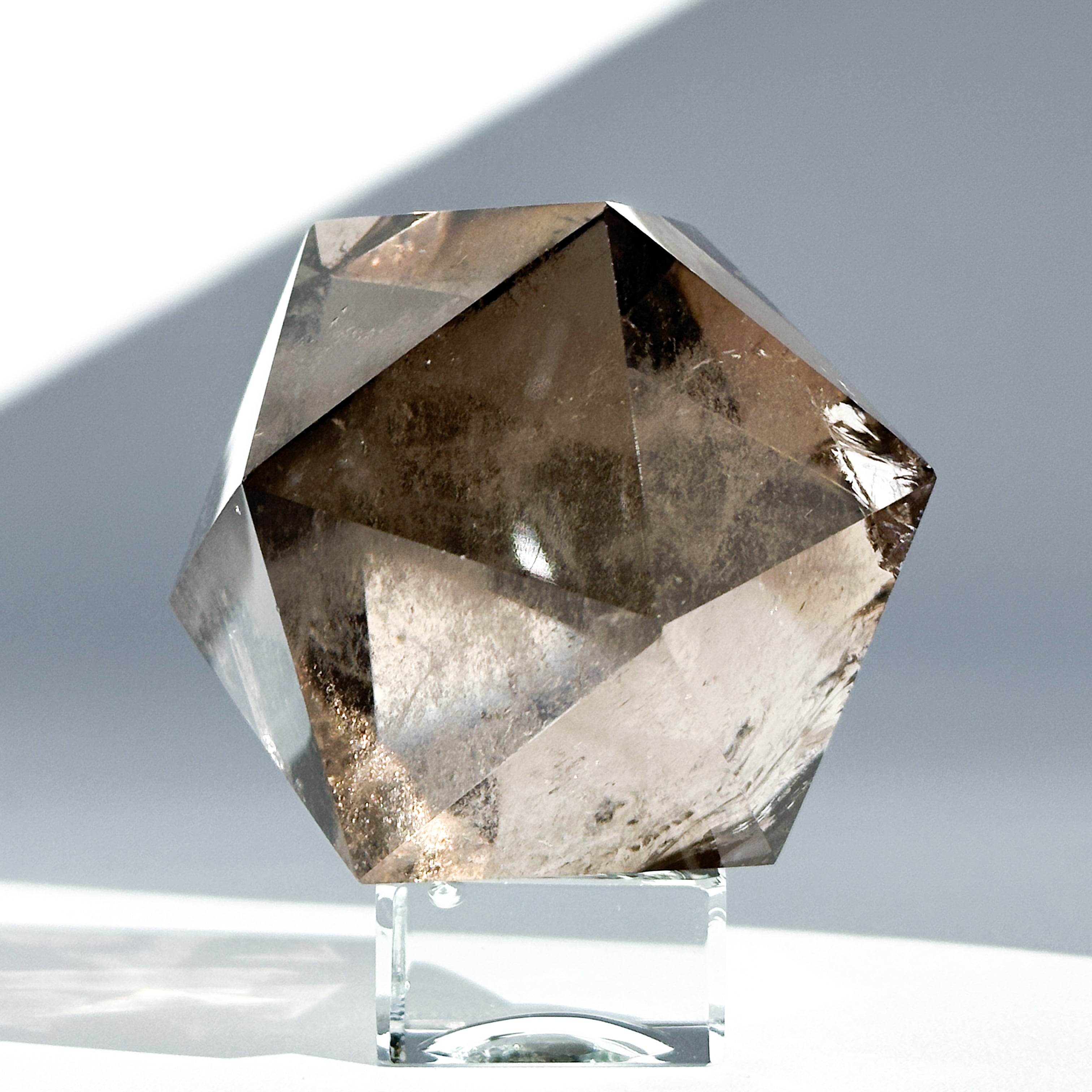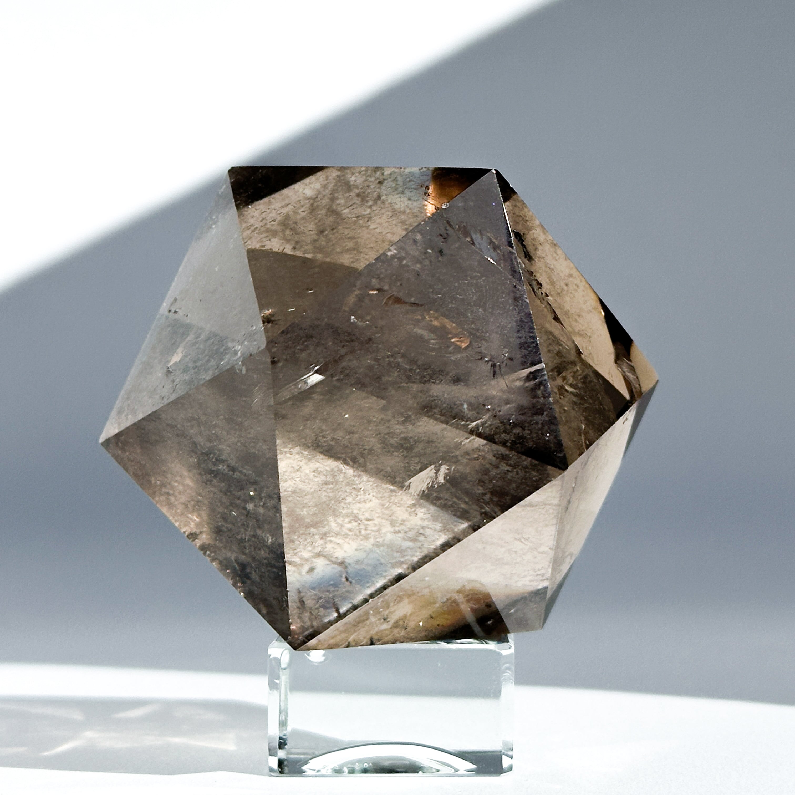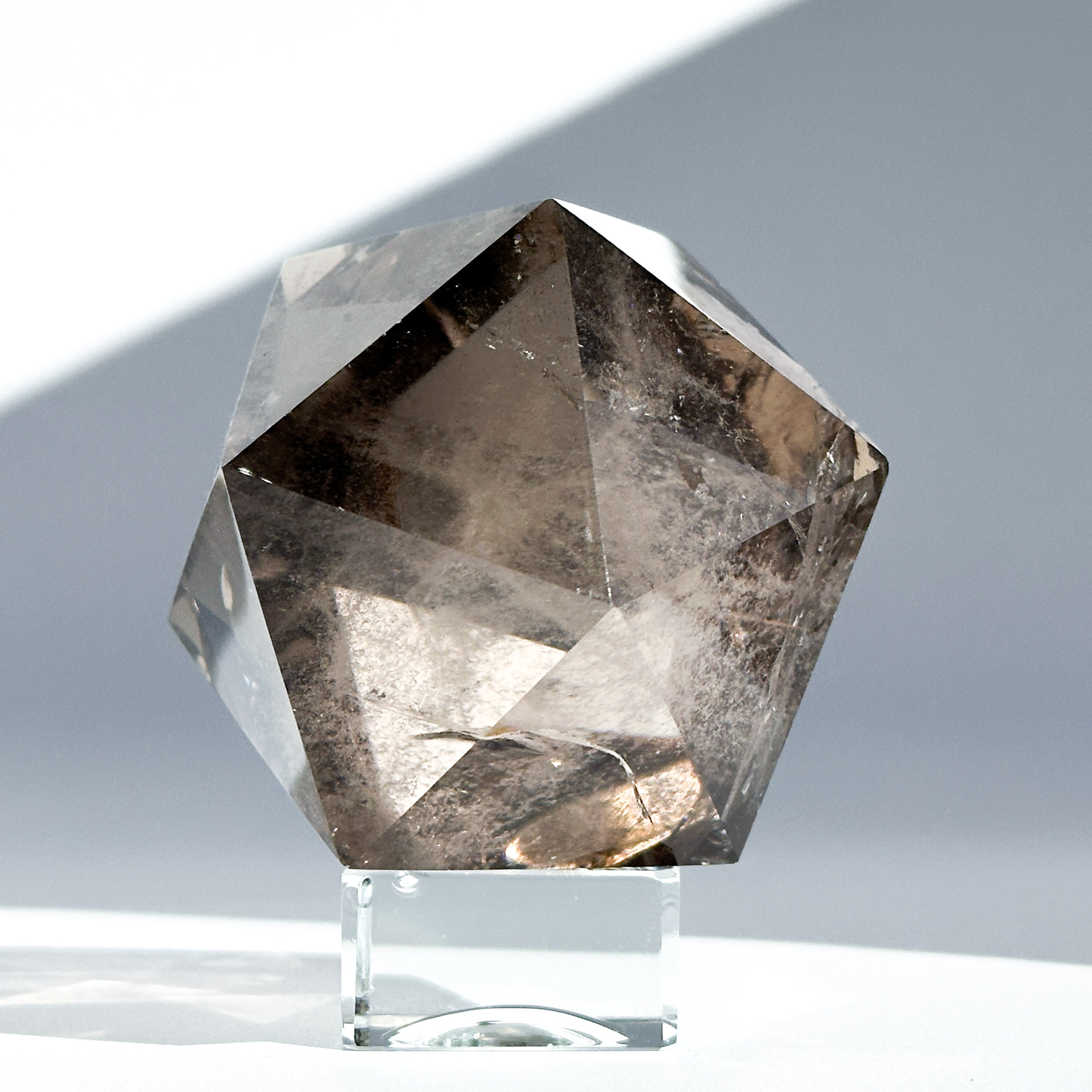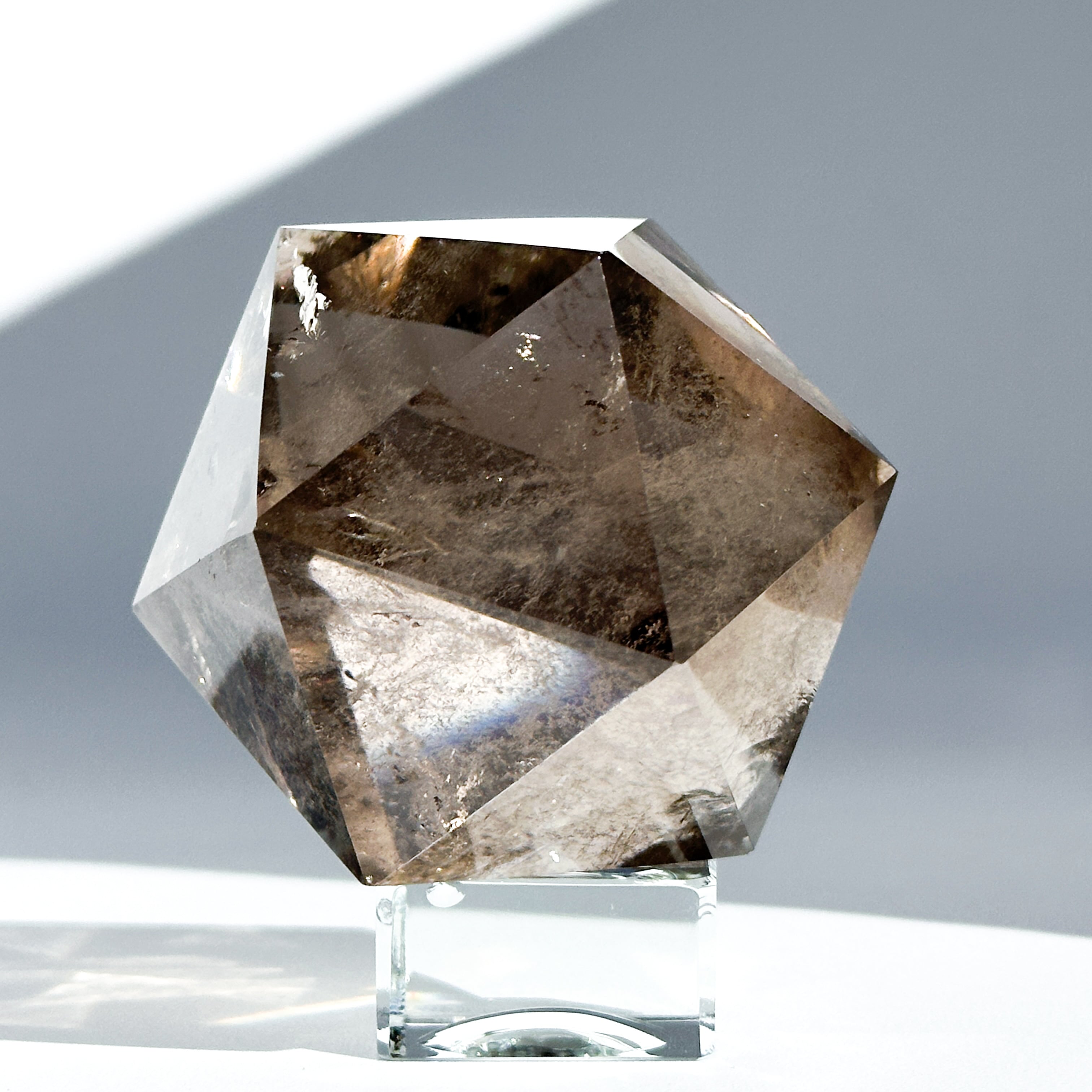 ブラジル・ミナスジェライス産のスモーキークォーツを、正二十面体に研磨したものです。