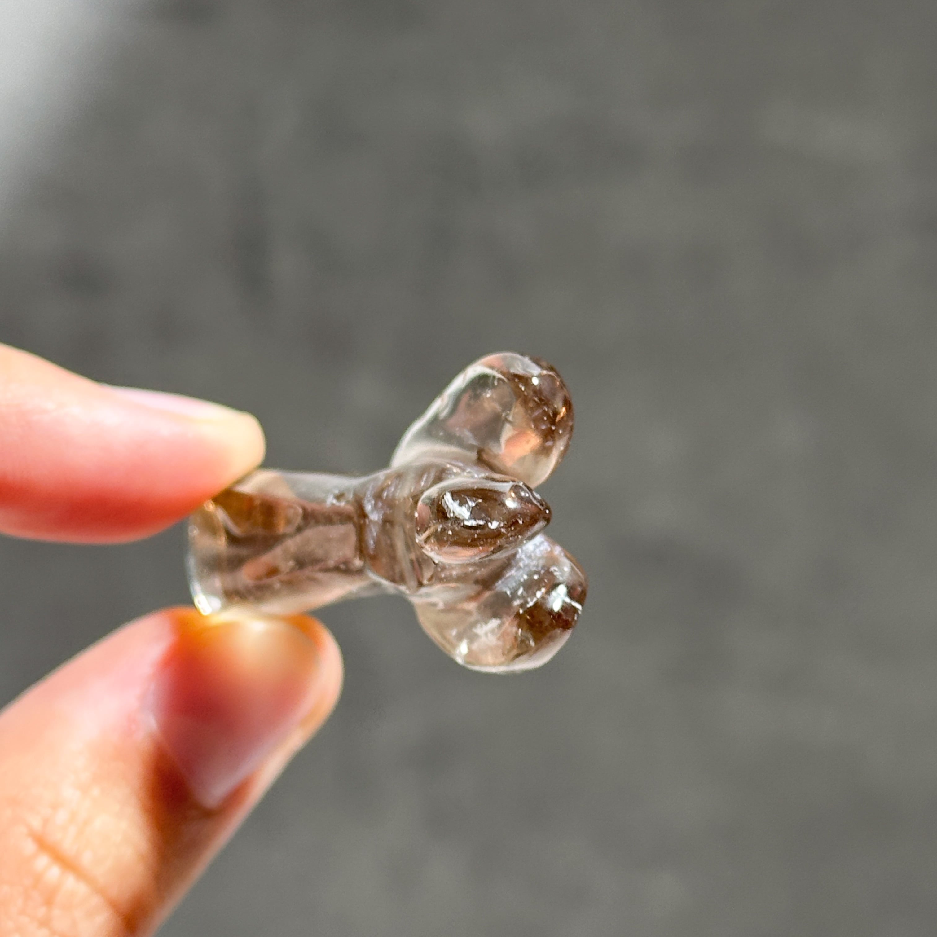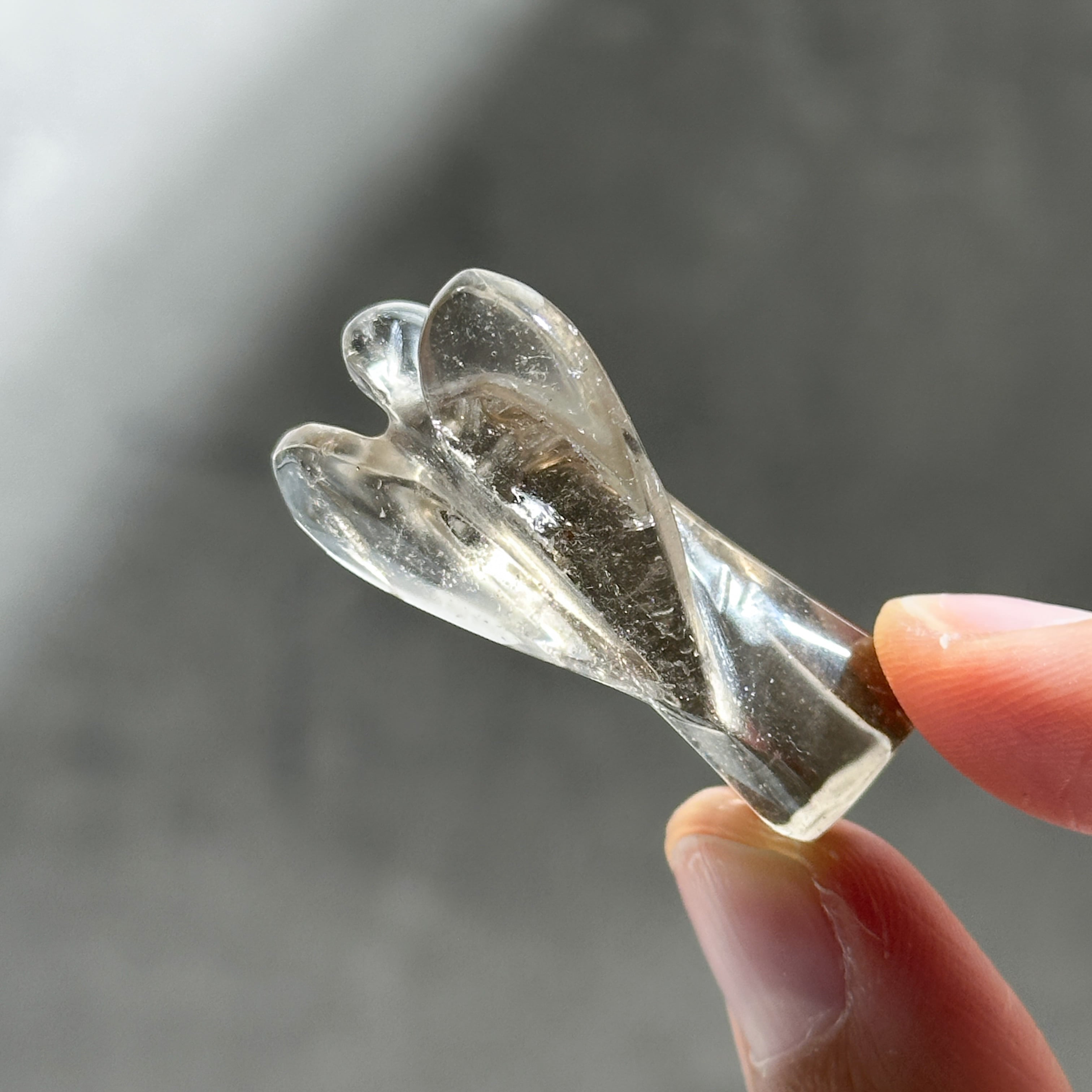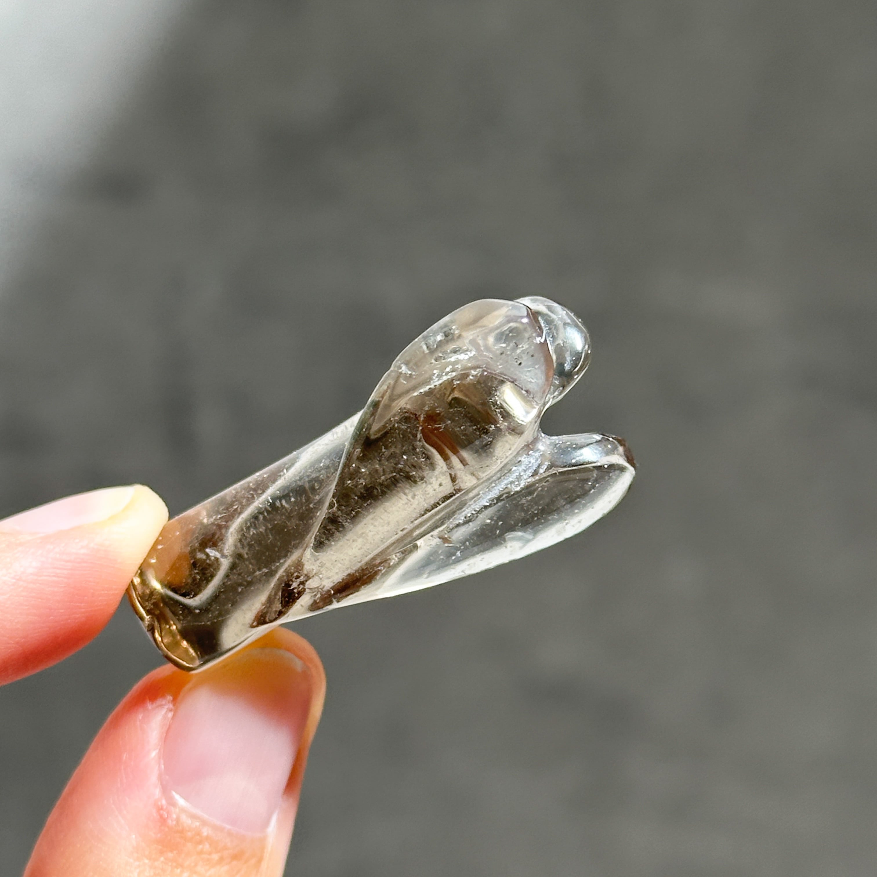スモーキークォーツを、小さなエンジェルの形に彫刻いたしました。