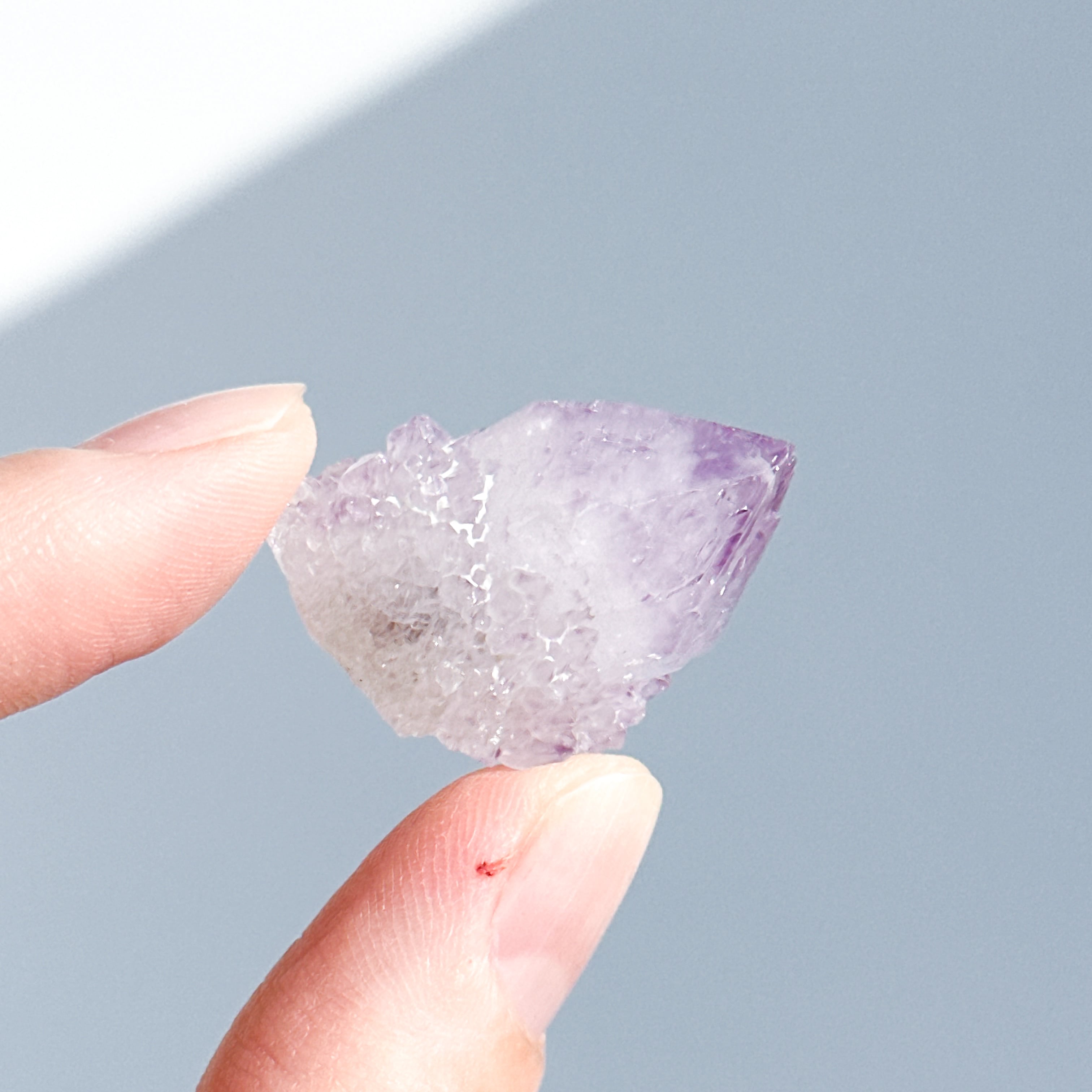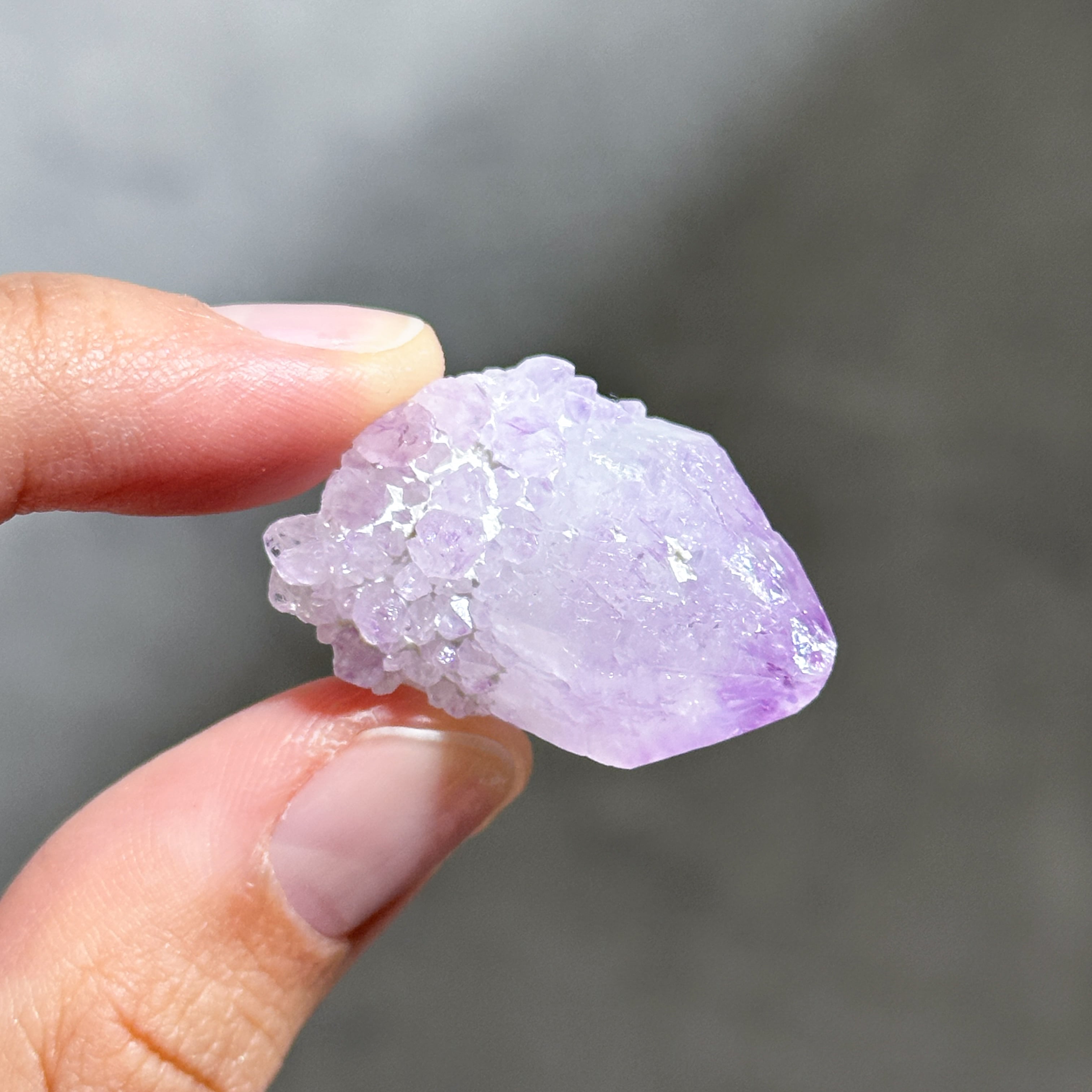 砂糖菓子のように美しい、ライラック色(淡い紫色)のスピリットクォーツのクラスターを、