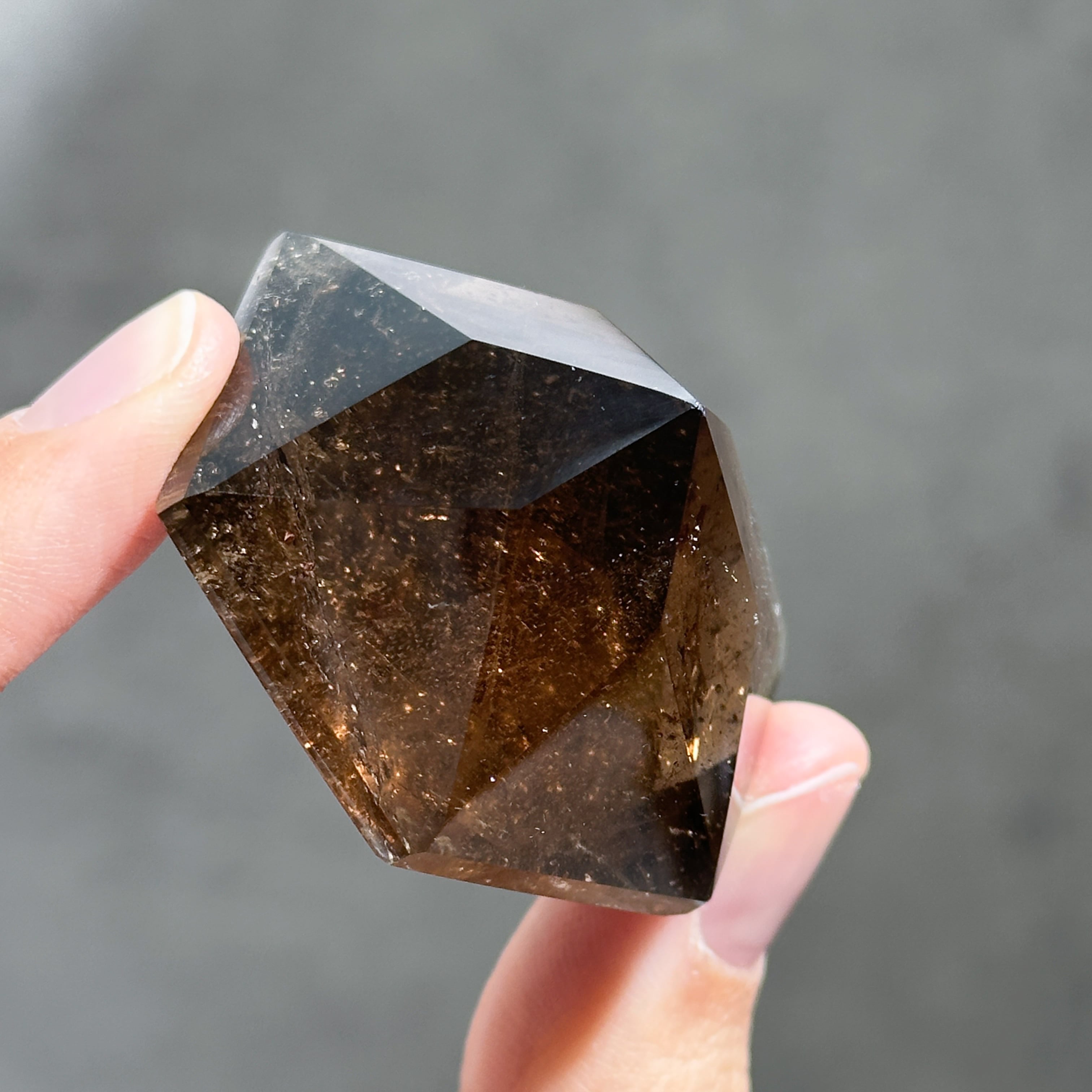 ブラジル・ミナスジェライス産のスモーキークォーツを、ダイヤモンド型に研磨したものです。