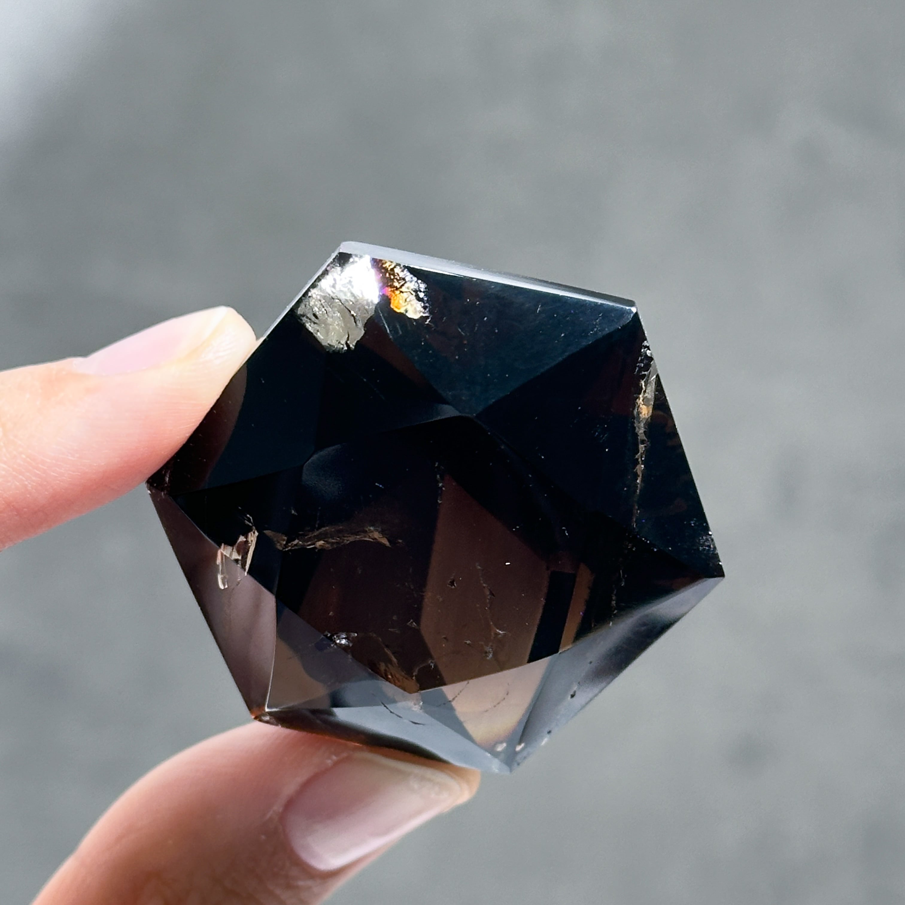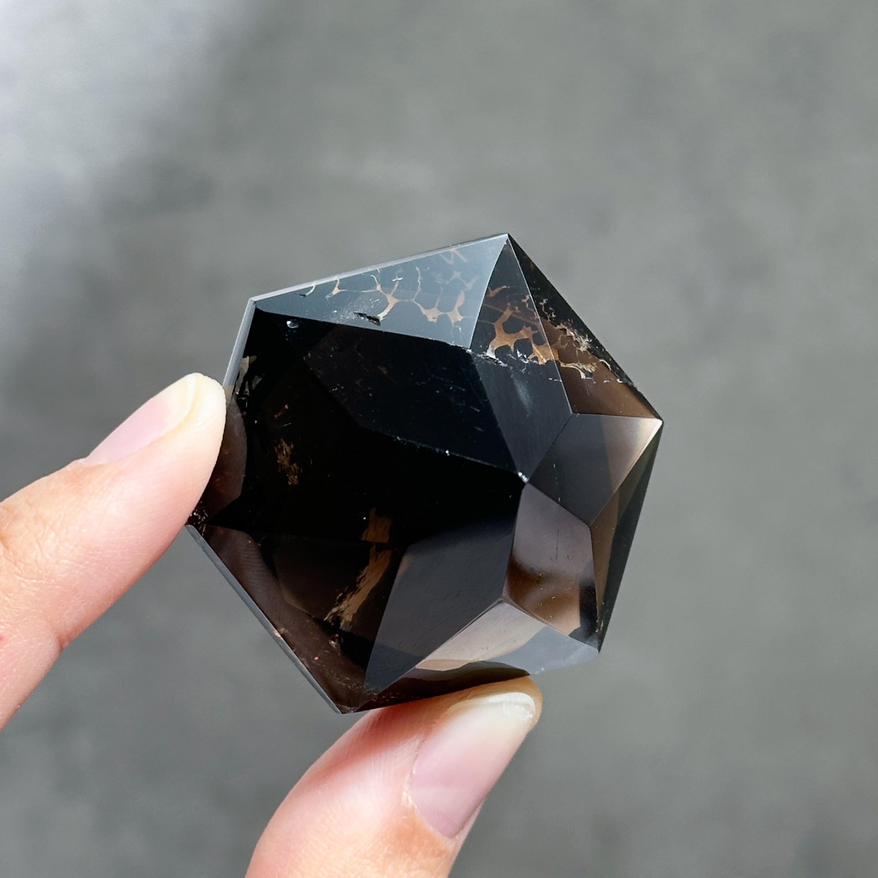 ブラジル・ミナスジェライス産のスモーキークォーツを、ダイヤモンド型に研磨したものです。