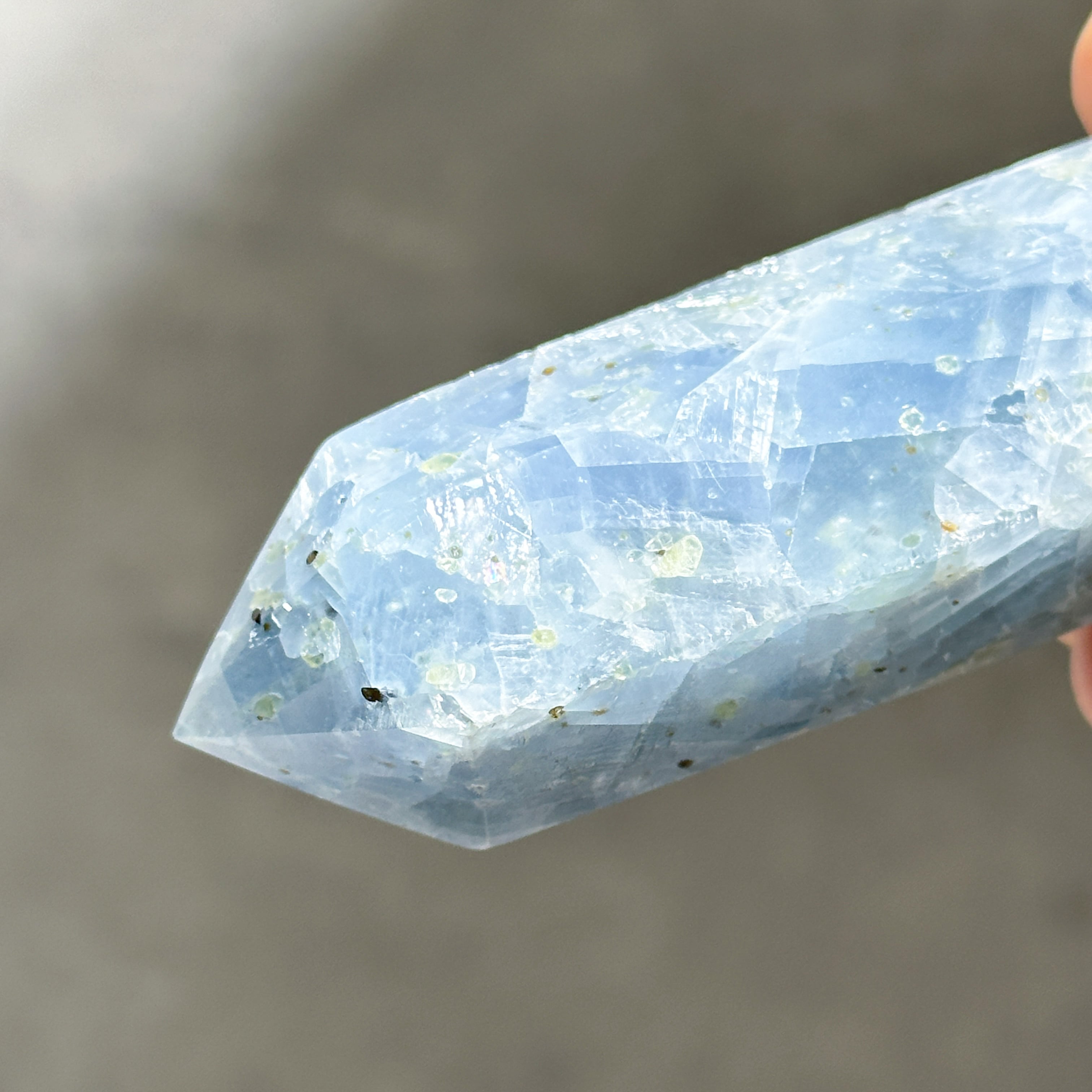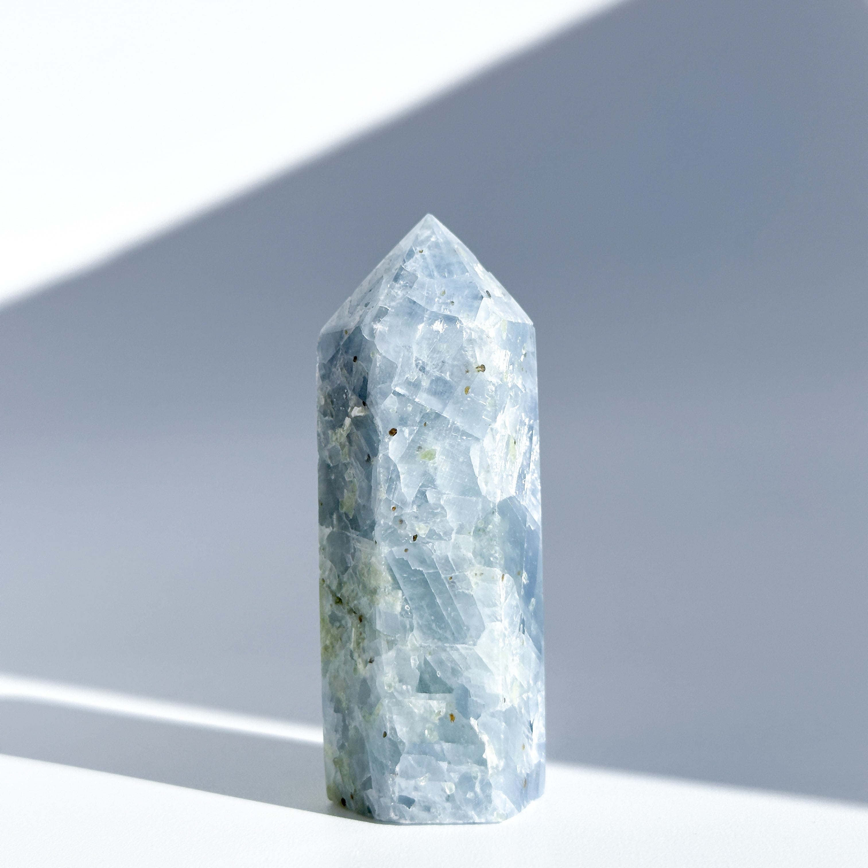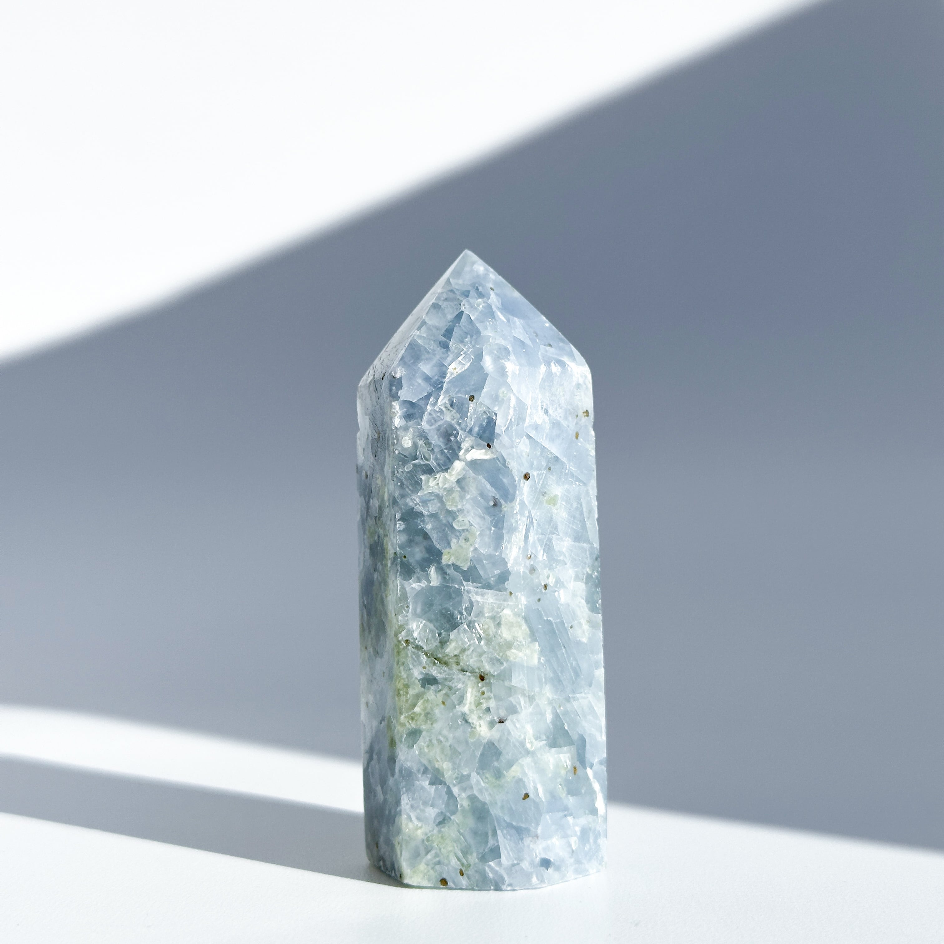 澄み渡るライトブルーの天然石、セレスタイトをタワー型に研磨しました。