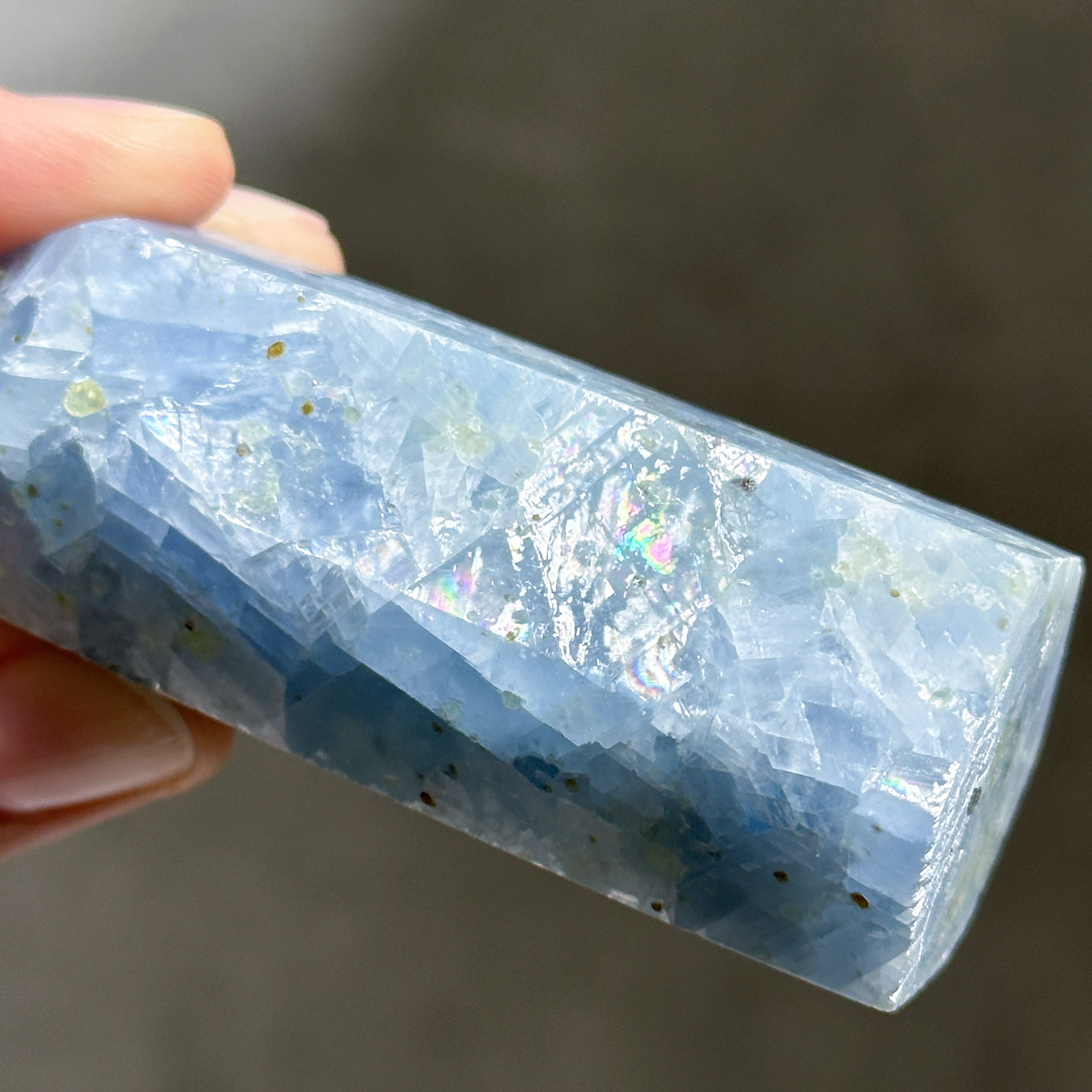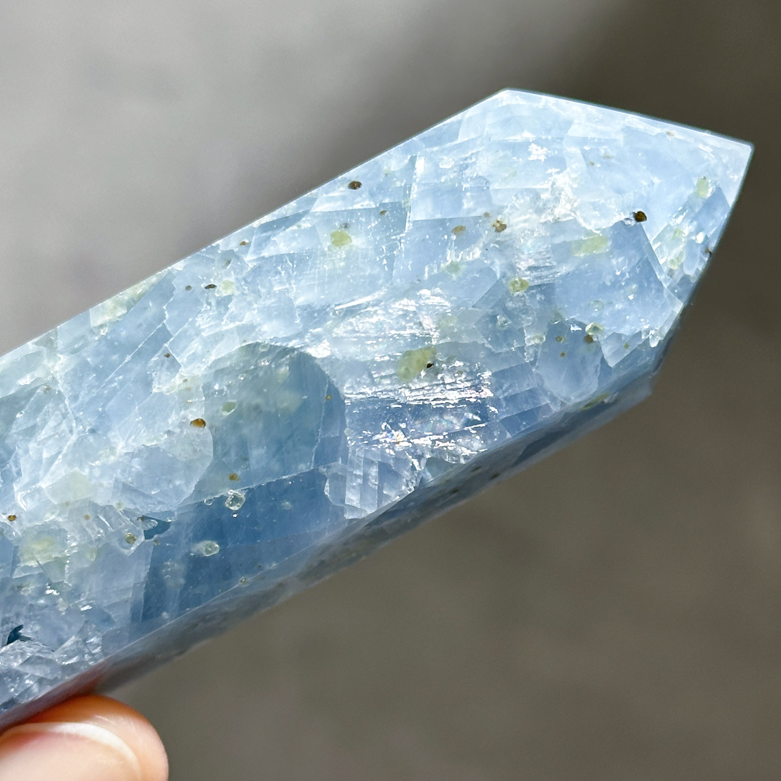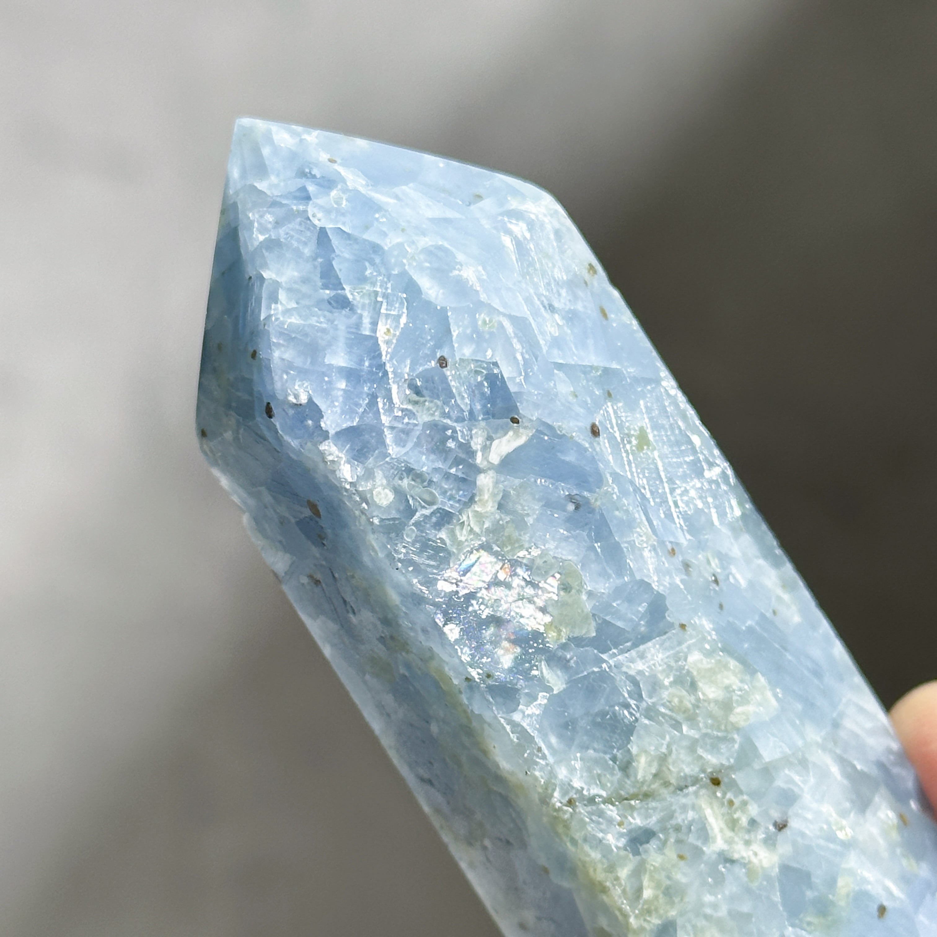 澄み渡るライトブルーの天然石、セレスタイトをタワー型に研磨しました。