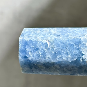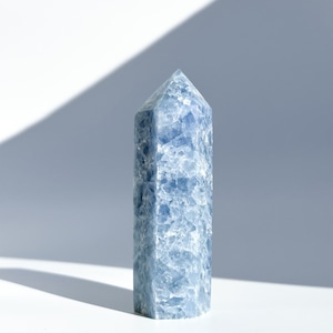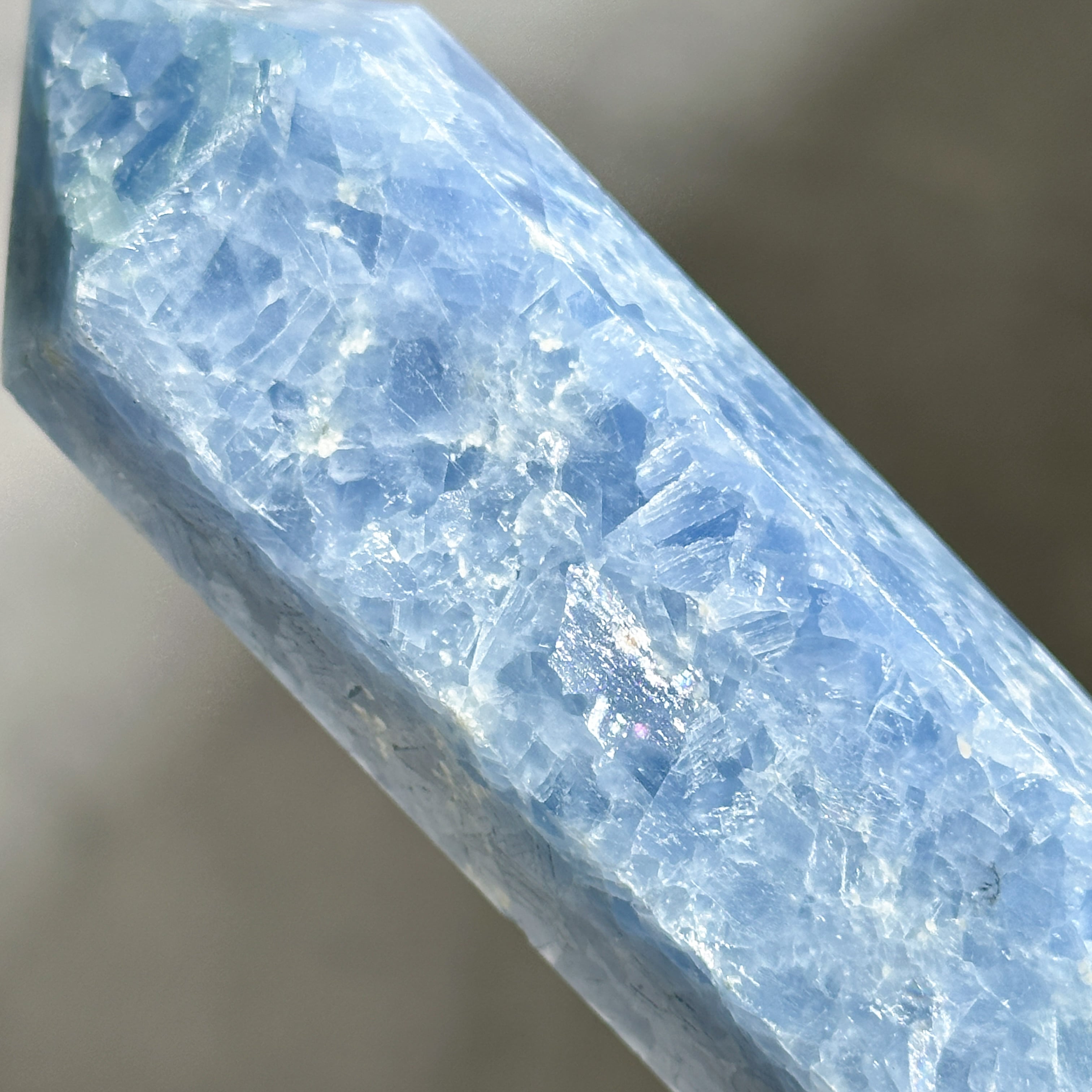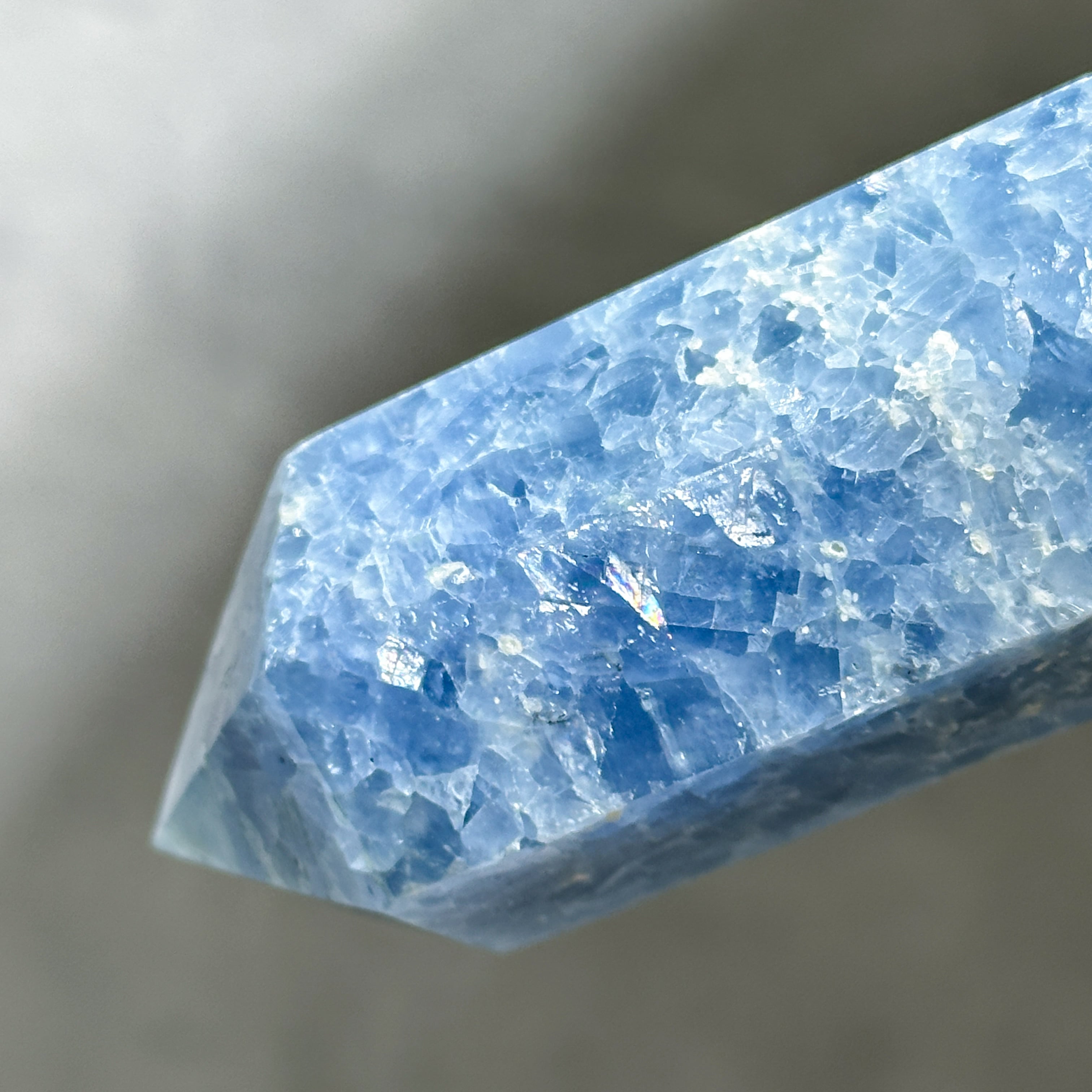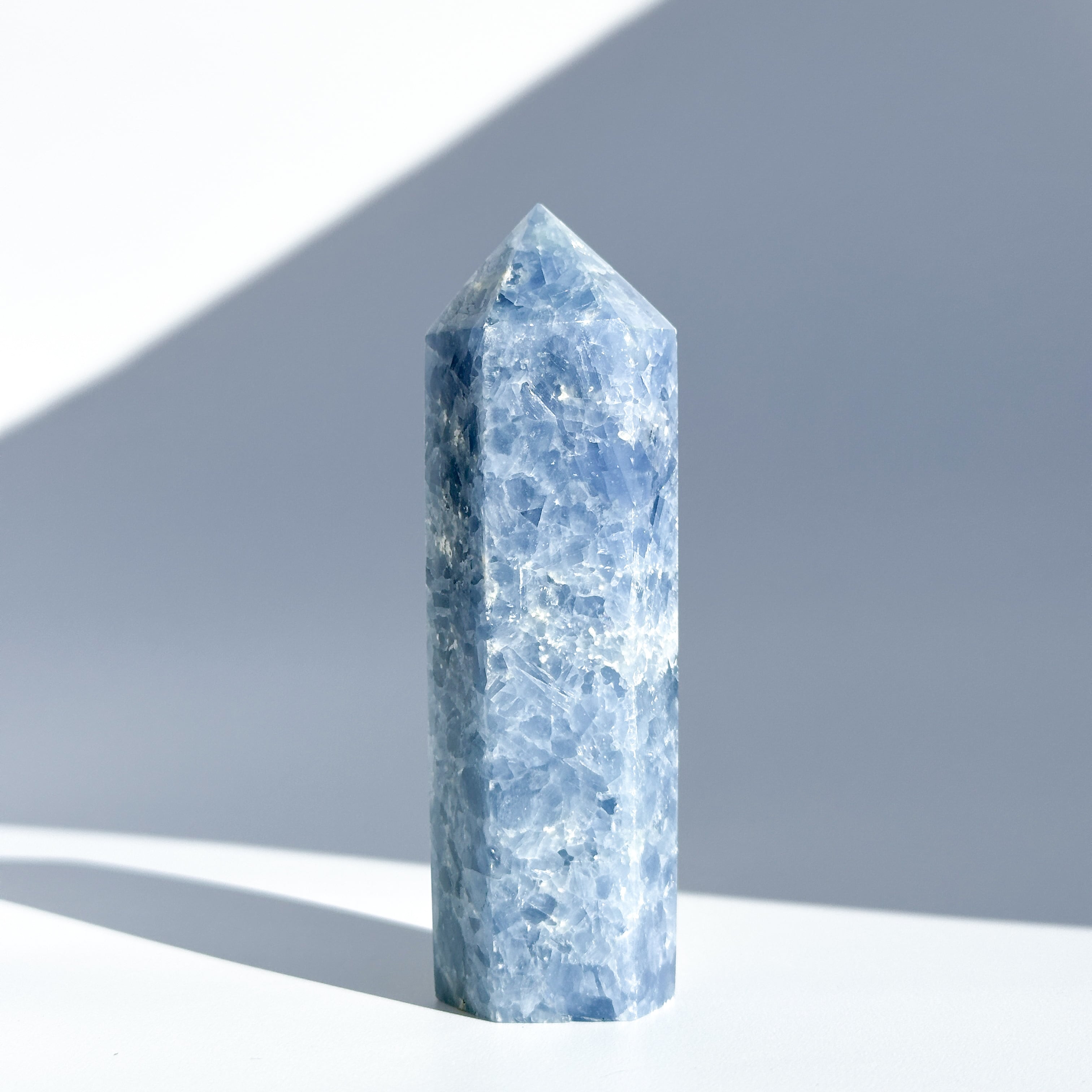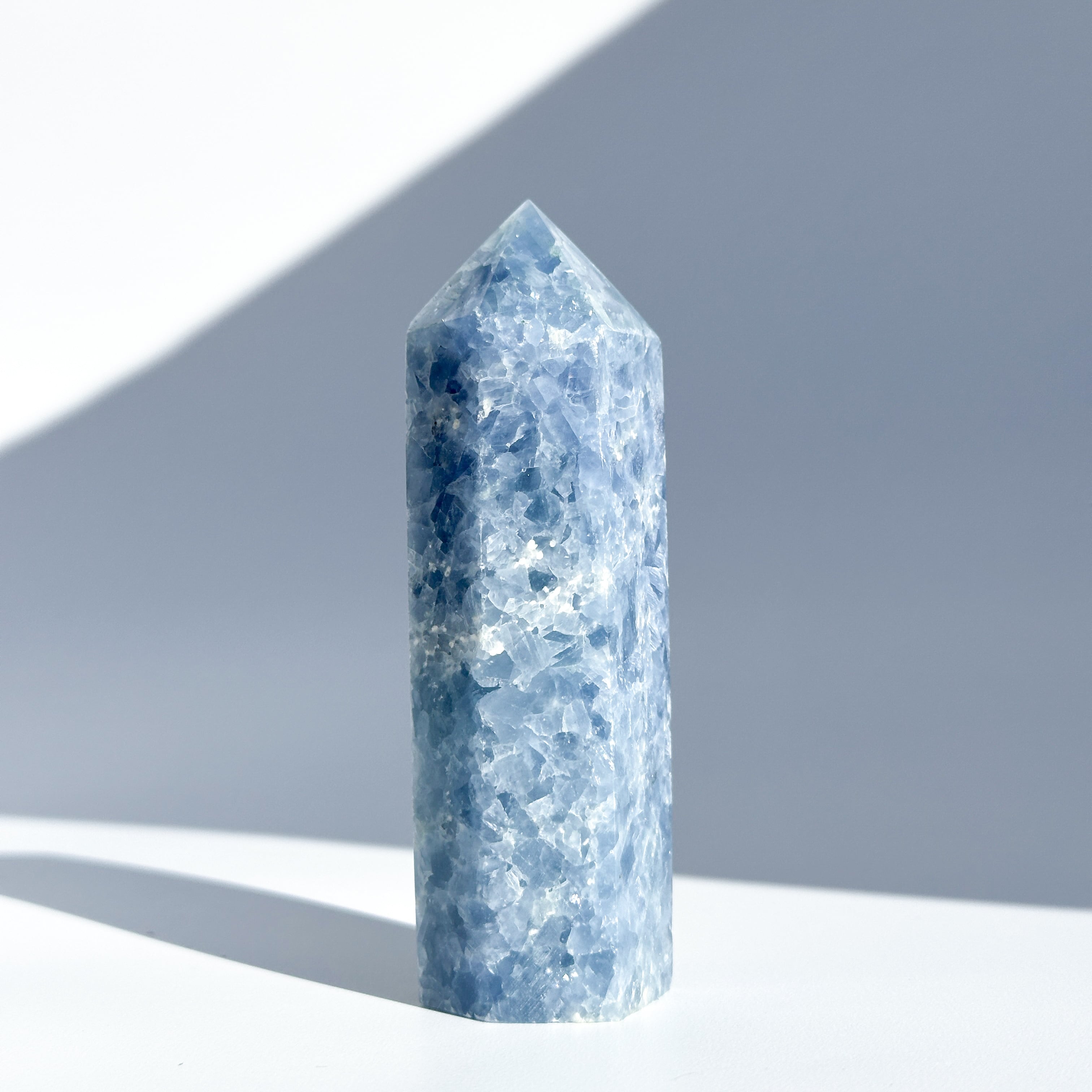 澄み渡るライトブルーの天然石、セレスタイトをタワー型に研磨しました。