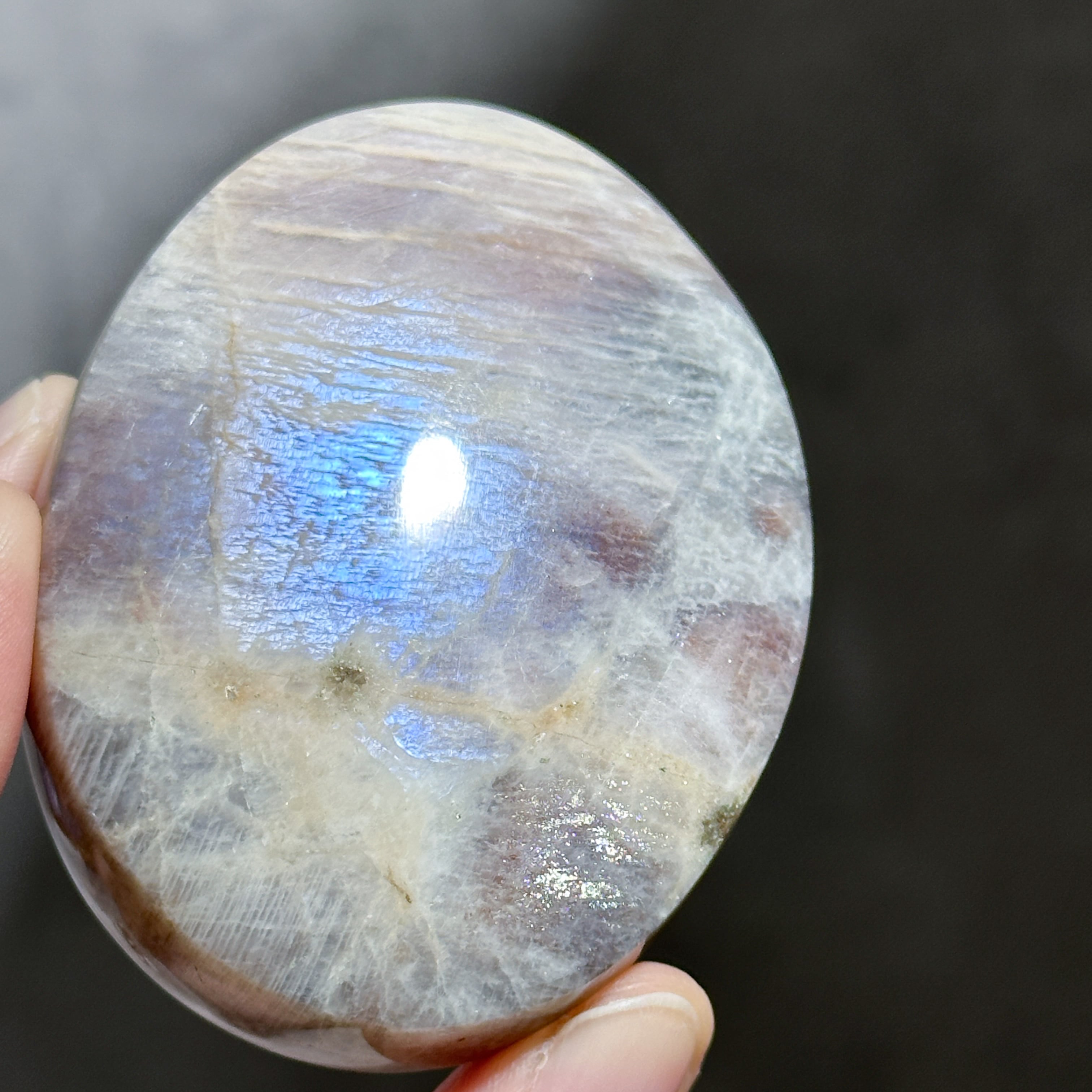 両面ブルーシラー◎サン&ムーンストーン パームストーン34◇ Sun & Moon Stone ◇ 天然石・鉱物・パワーストーン