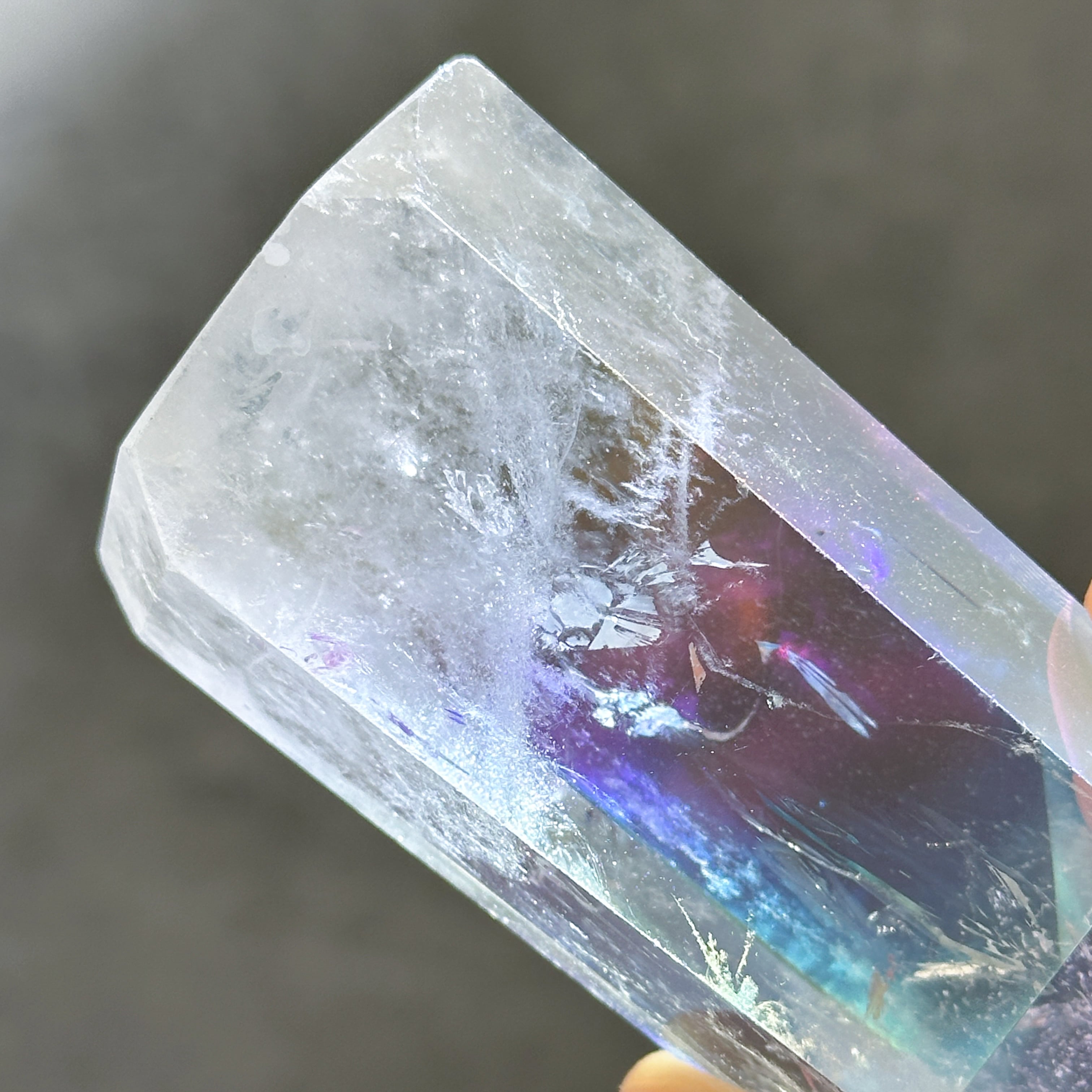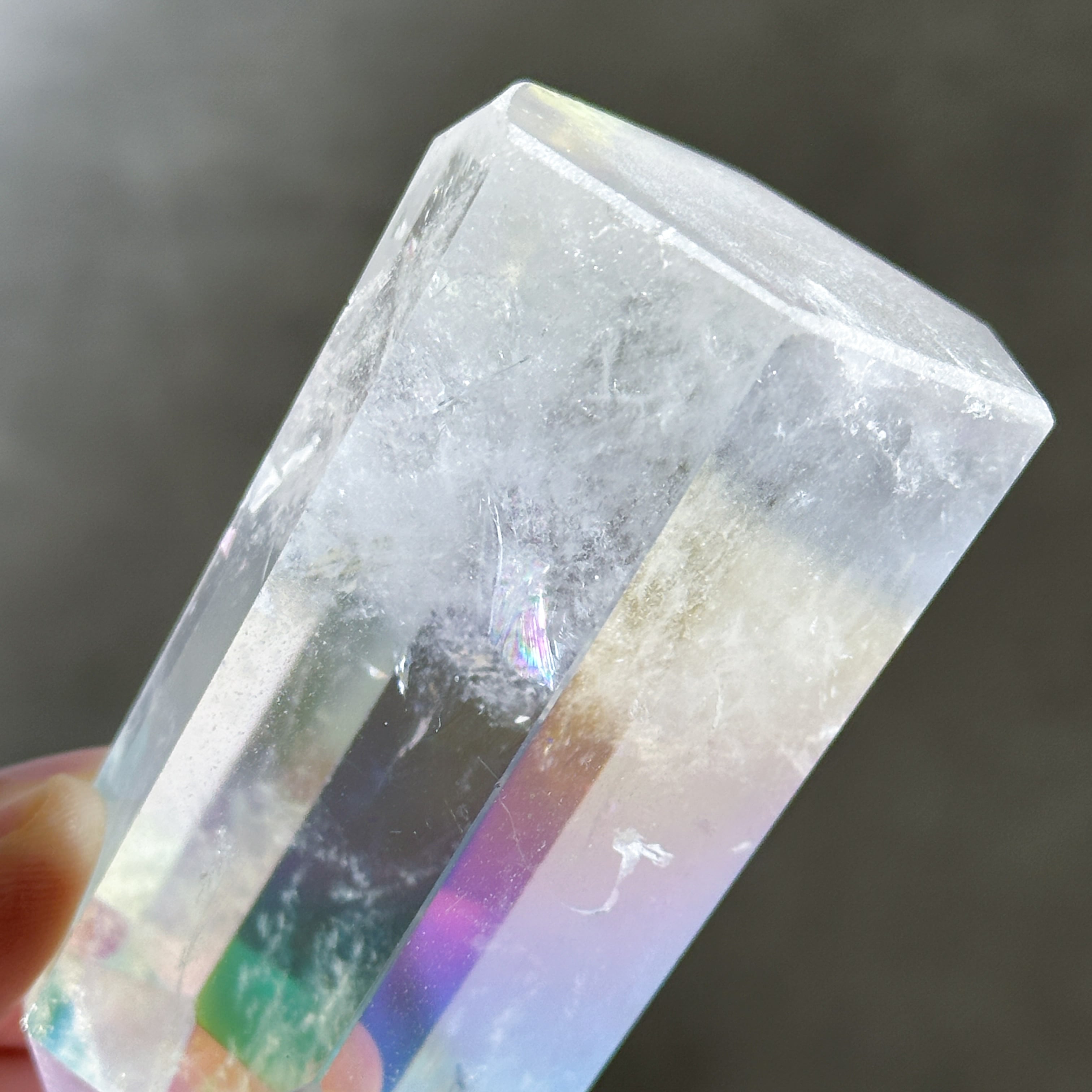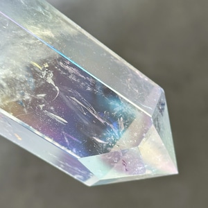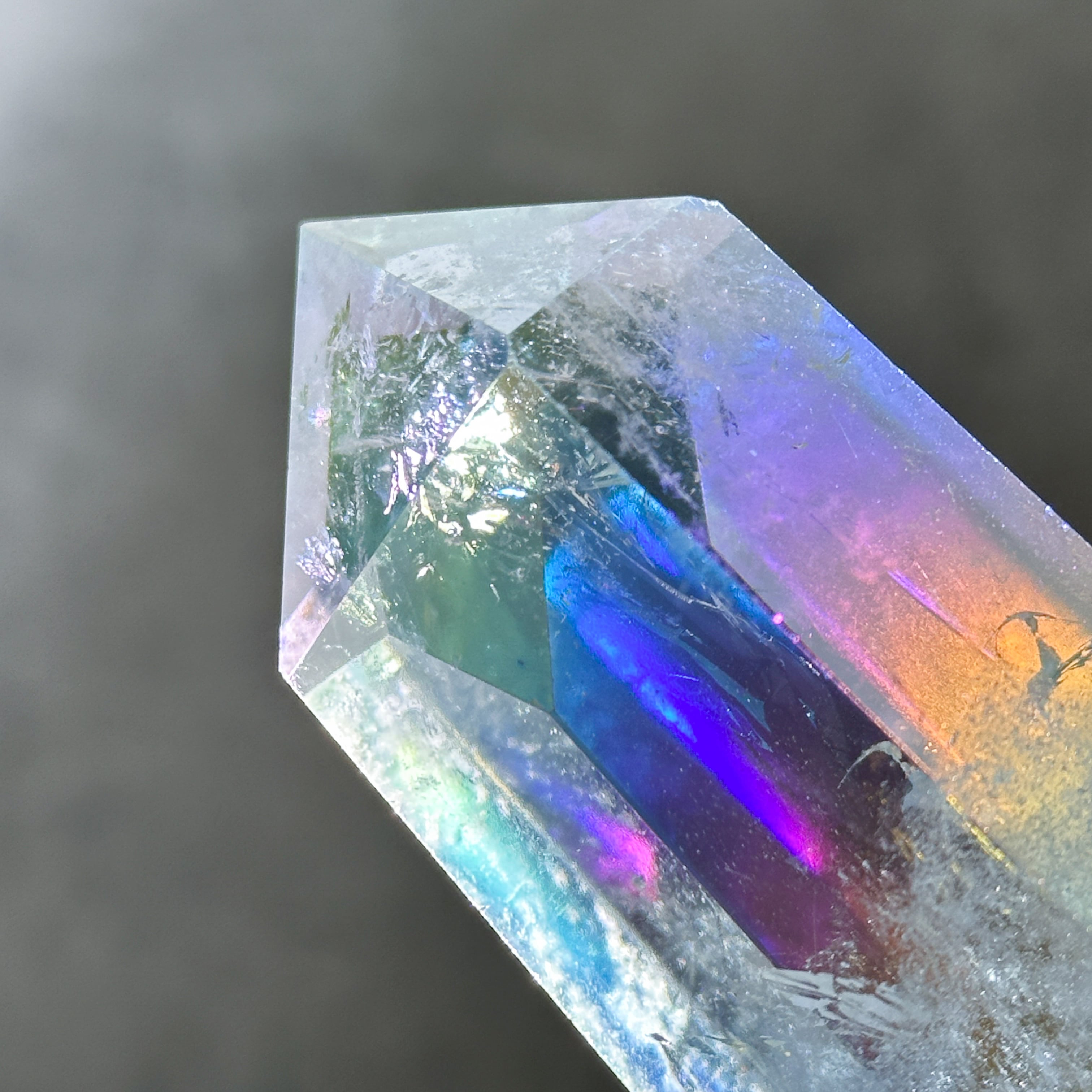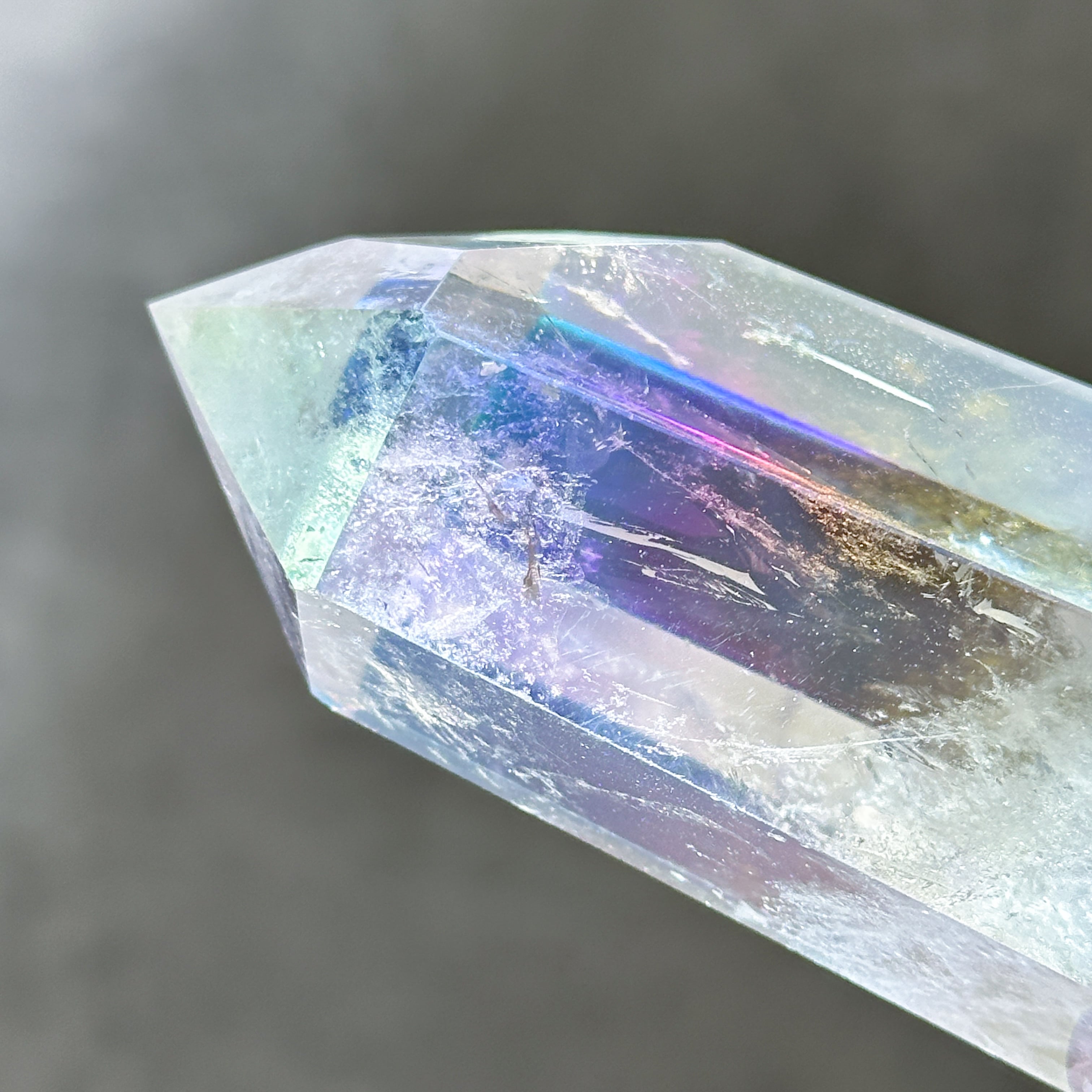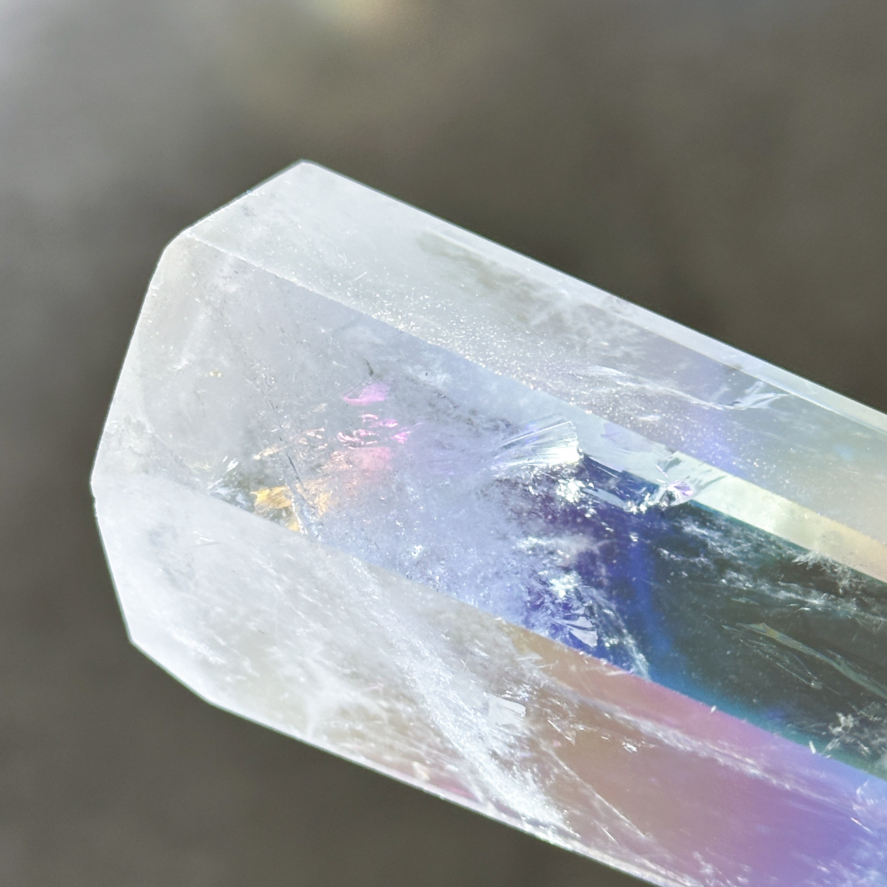 オーラクォーツは天然の水晶に真空状態で金属を癒着コーティングさせた、新時代のクリスタルです。