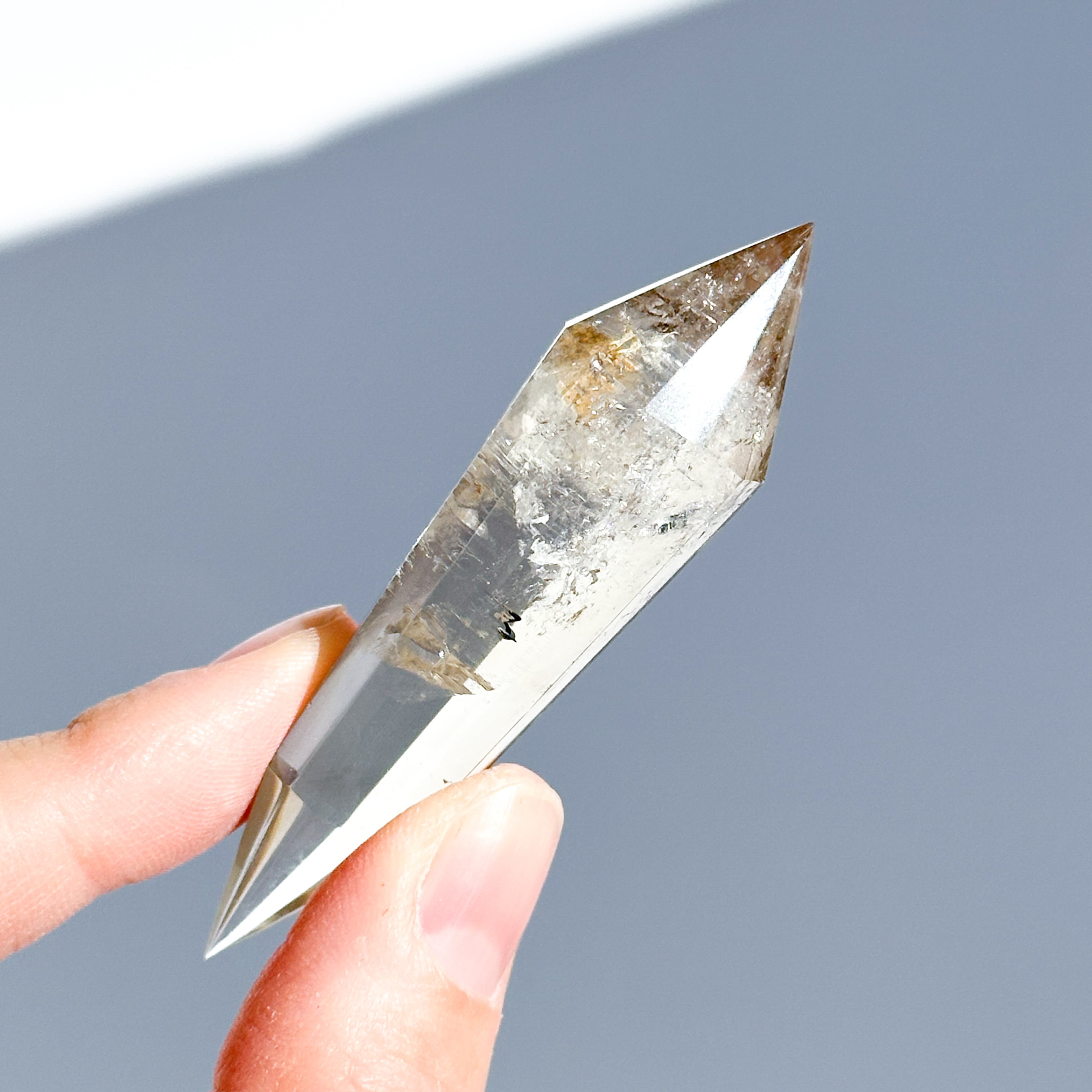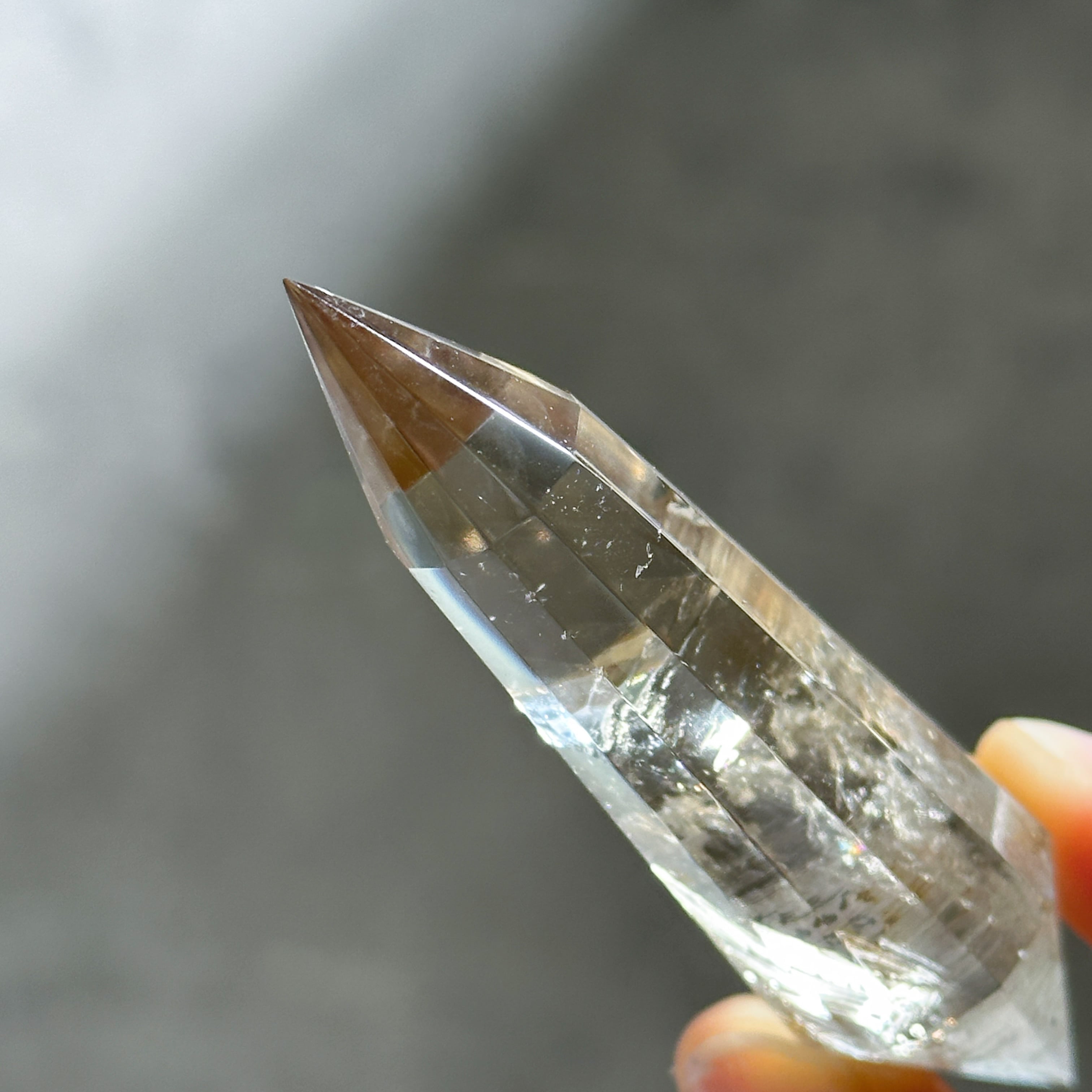 ブラジル・ミナスジェライス産のスモーキークォーツをダブルターミネイテッド(両剣型)に研磨したものです。