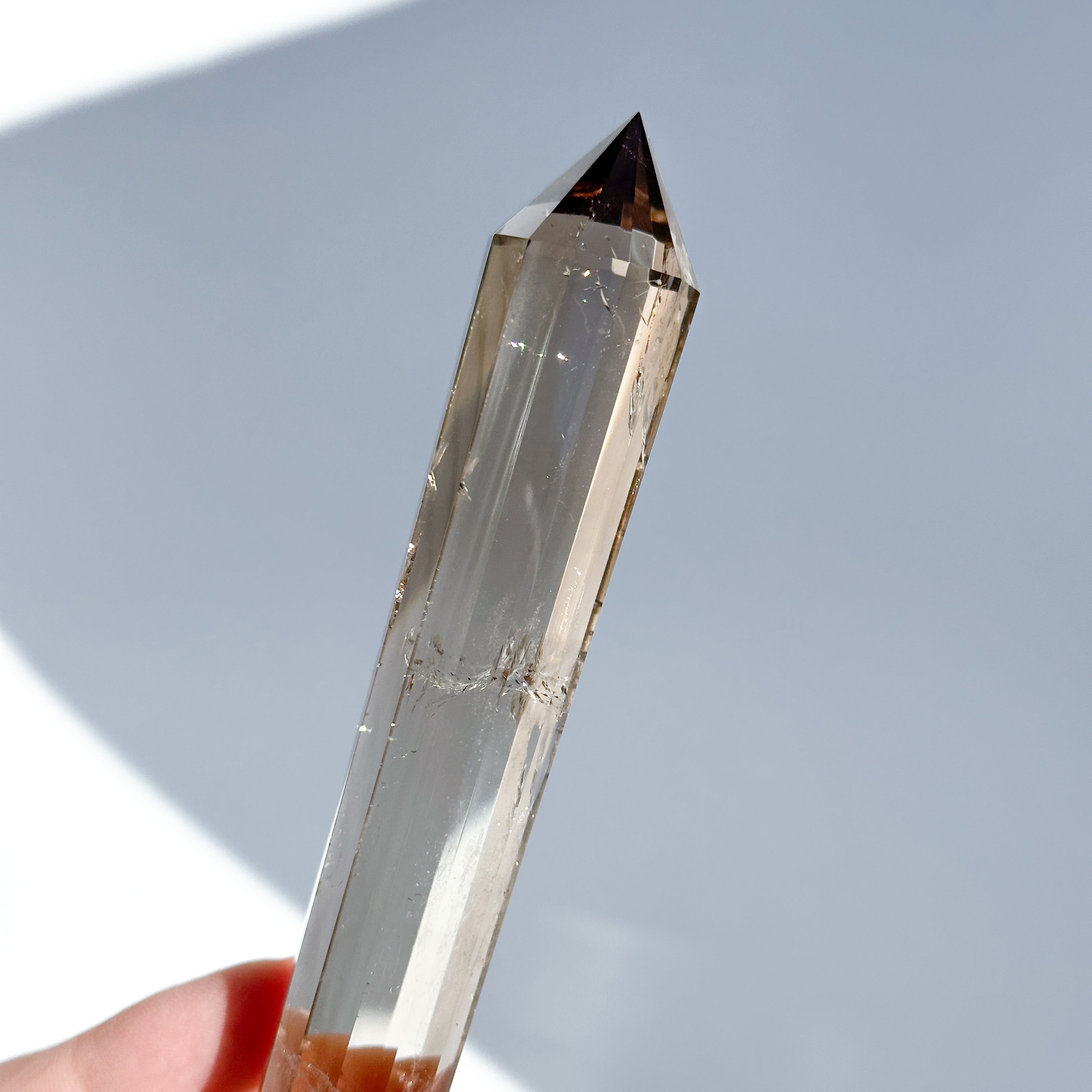 ブラジル・ミナスジェライス産のスモーキークォーツをダブルターミネイテッド(両剣型)に研磨したものです。