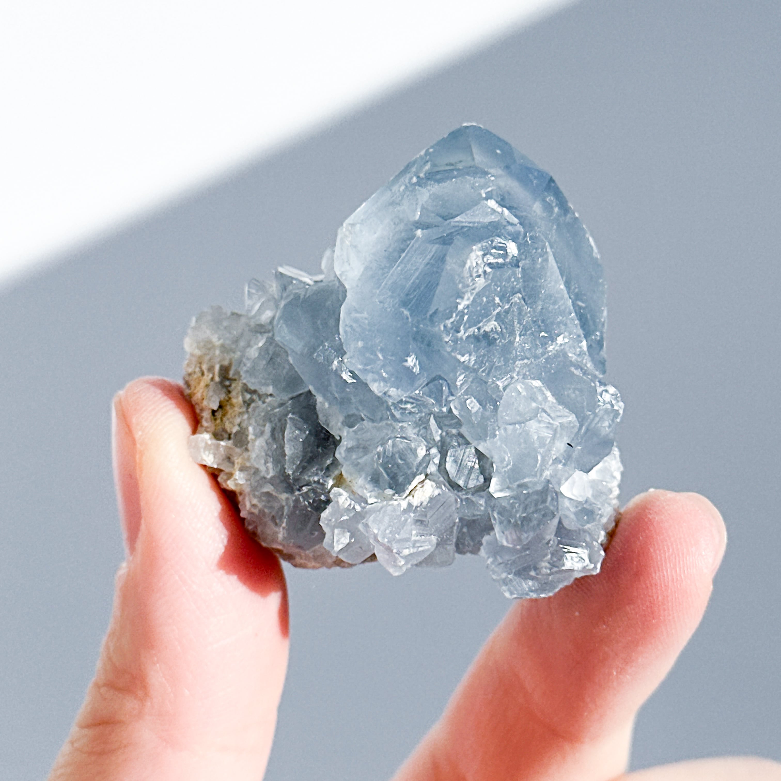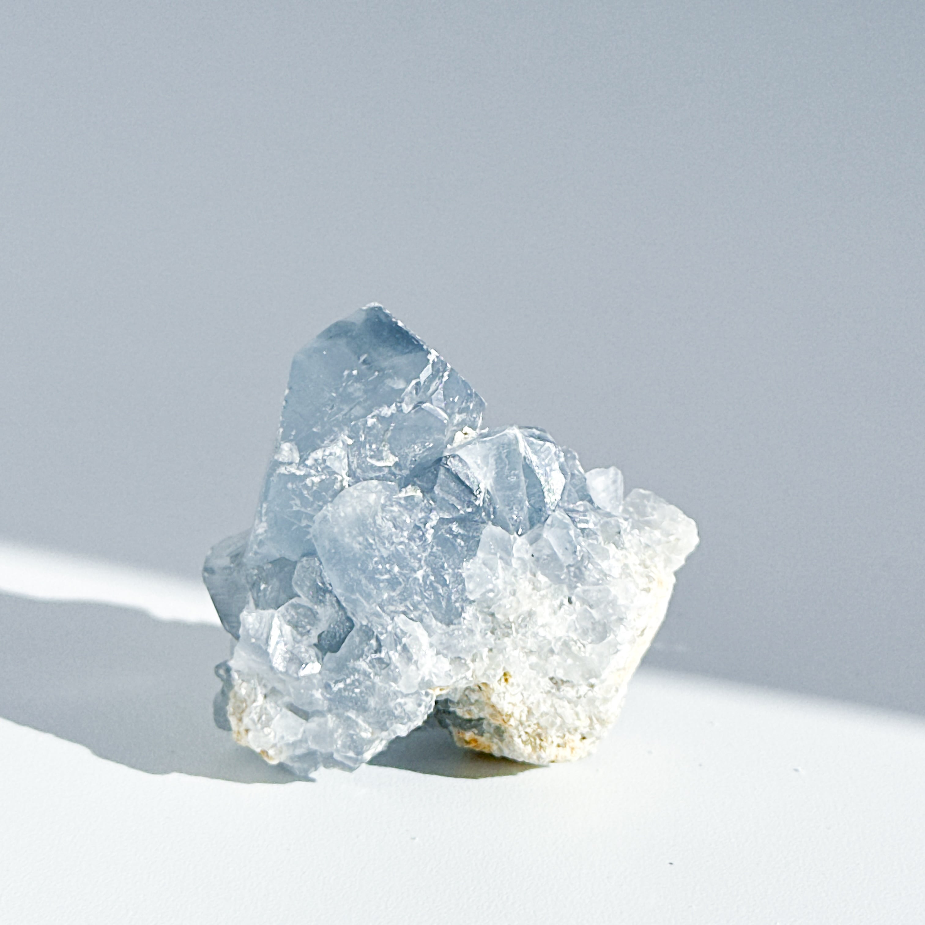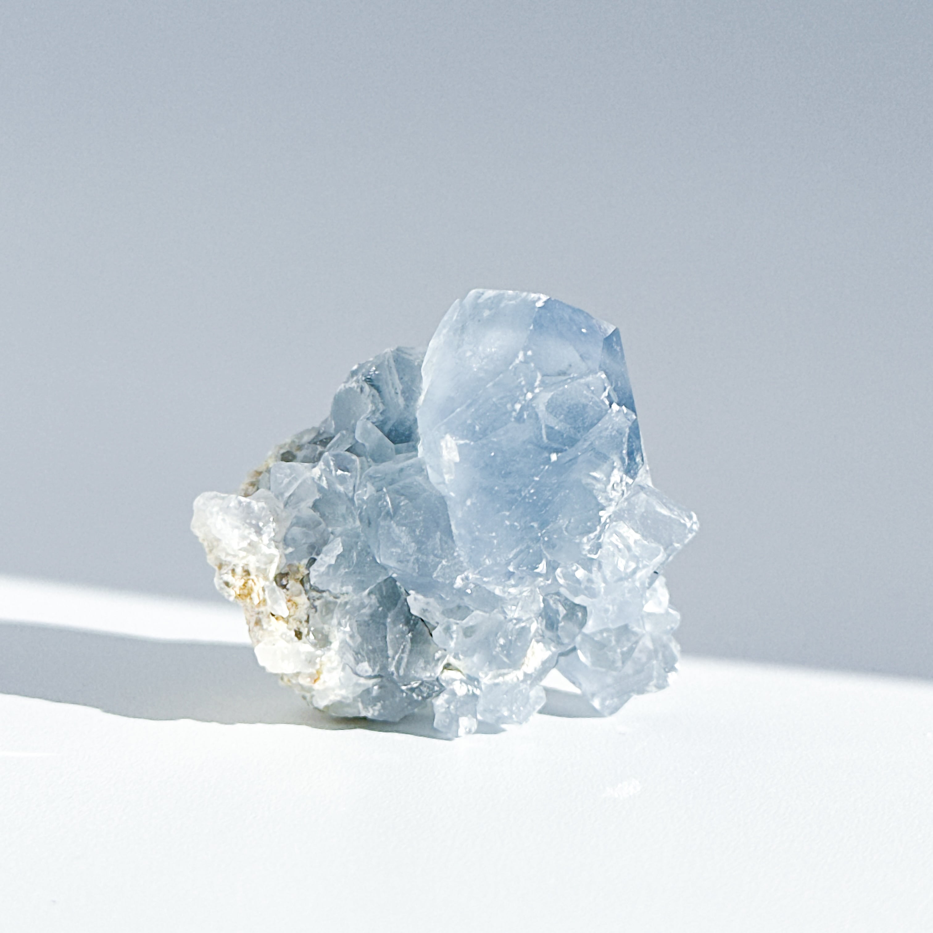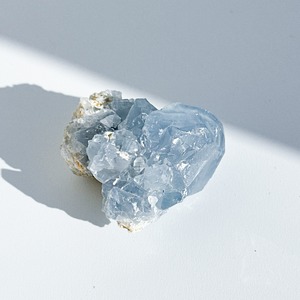 幾多あるブルーの天然石の中でも、晴れた空の穏やかさに最も近い印象があるのがセレスタイト。柔らかい色味、優しい輝きから、エンジェルを連想する人も多いようです。
