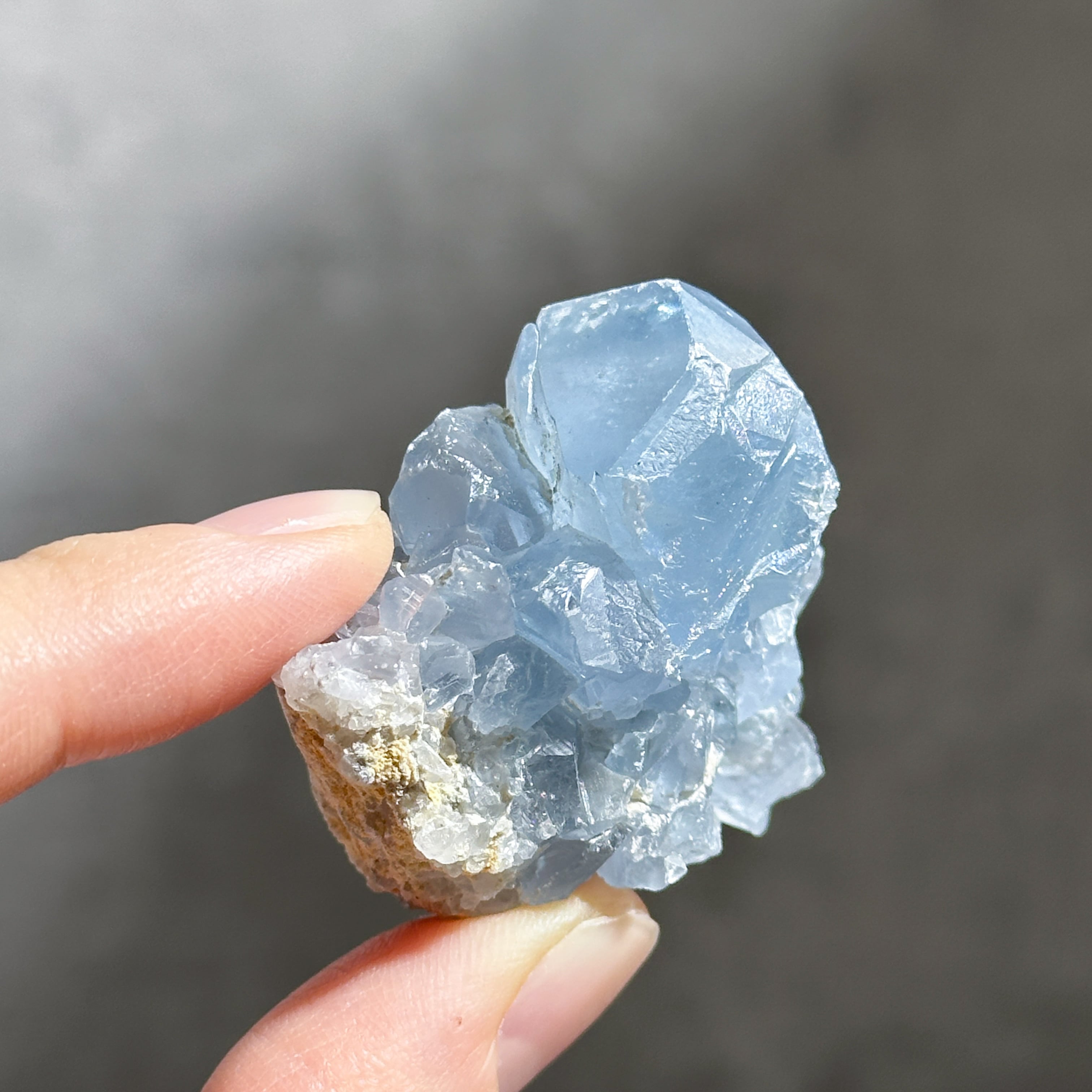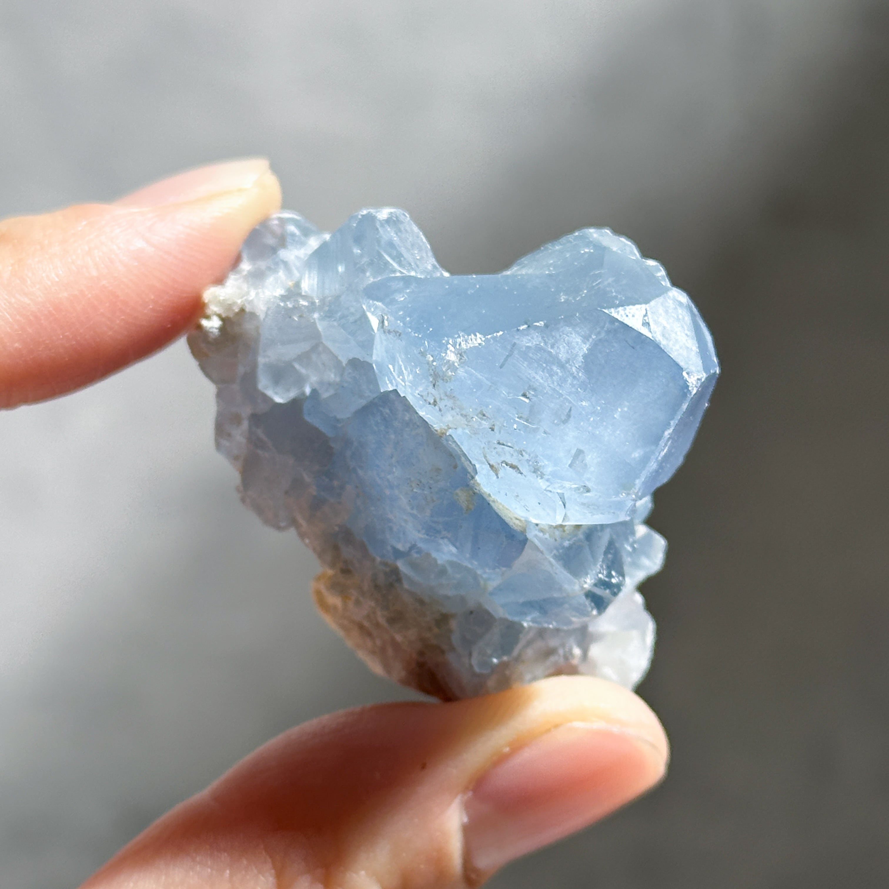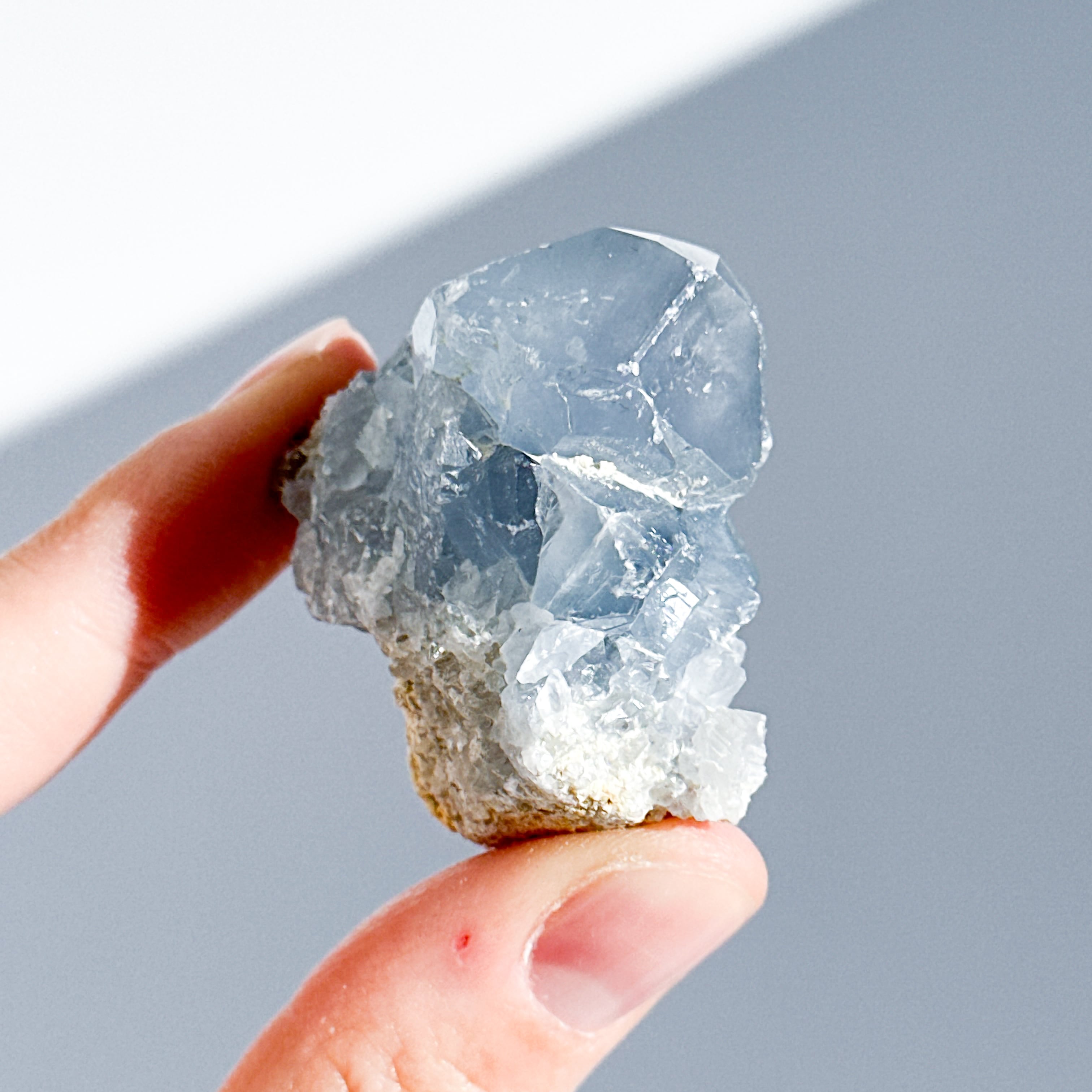 幾多あるブルーの天然石の中でも、晴れた空の穏やかさに最も近い印象があるのがセレスタイト。柔らかい色味、優しい輝きから、エンジェルを連想する人も多いようです。