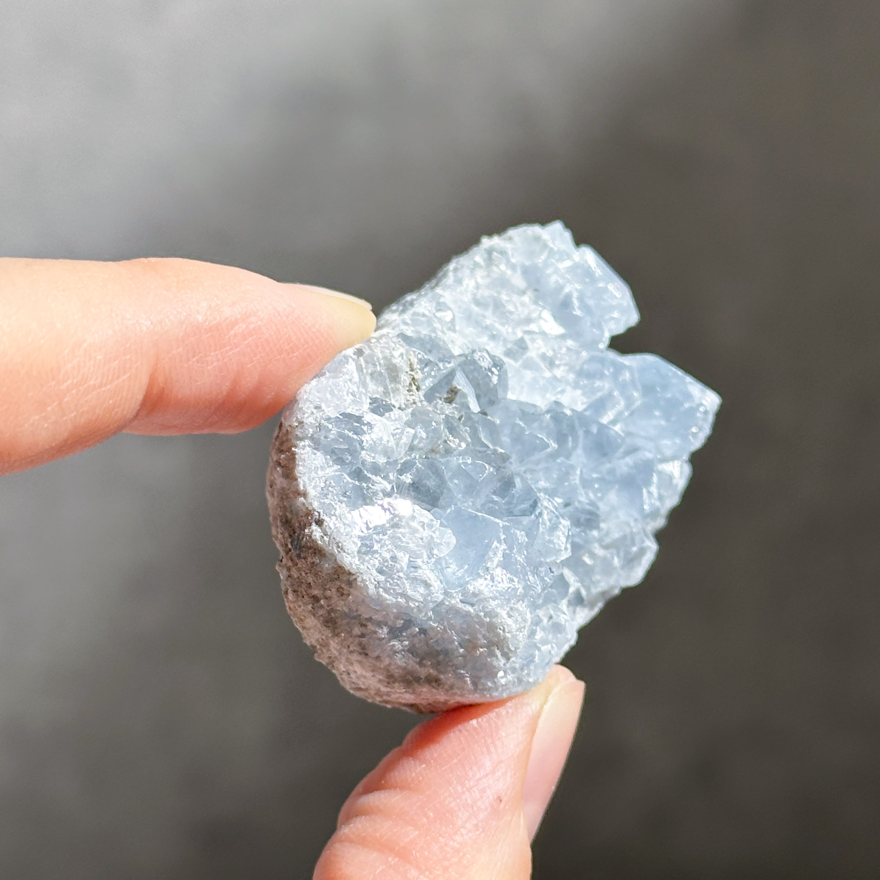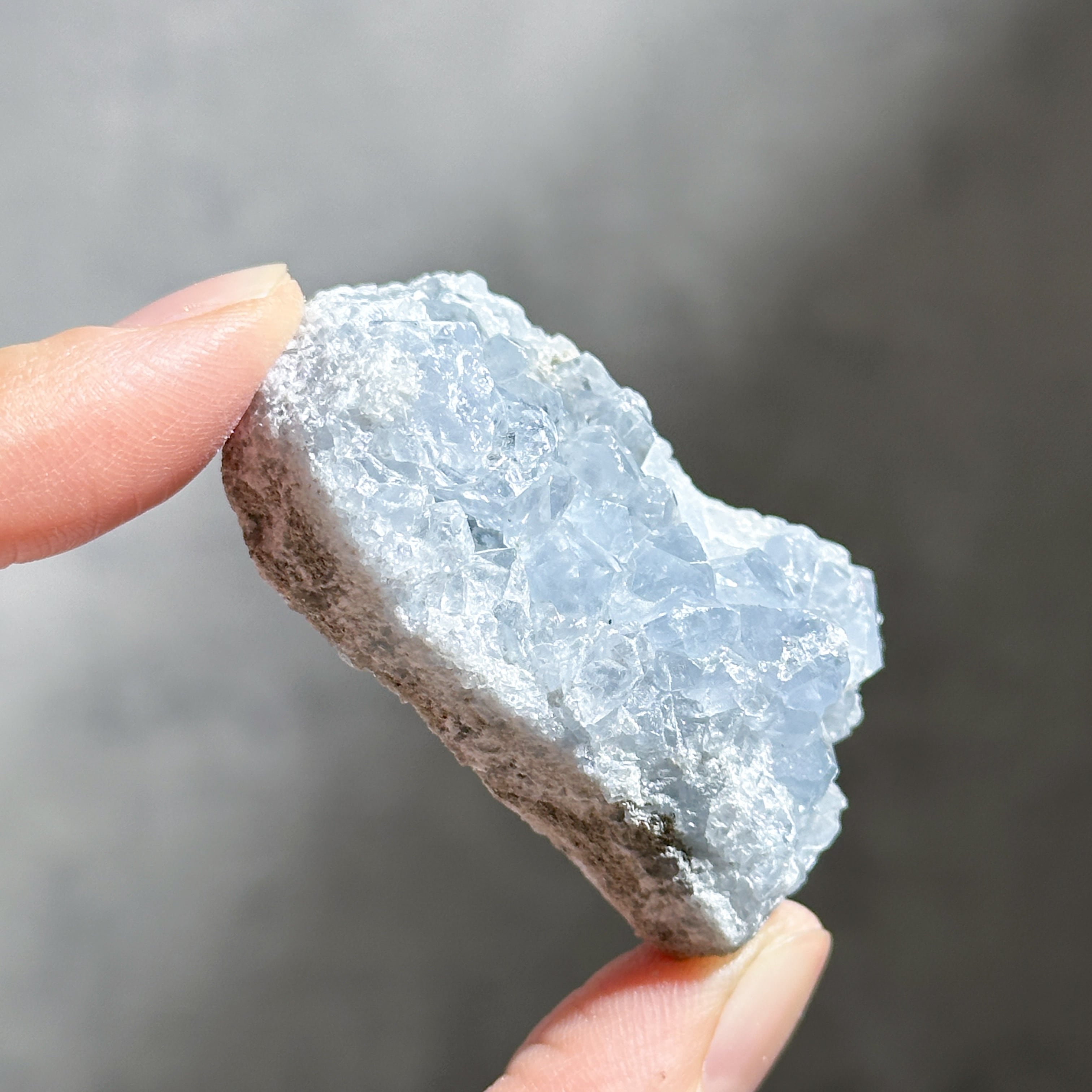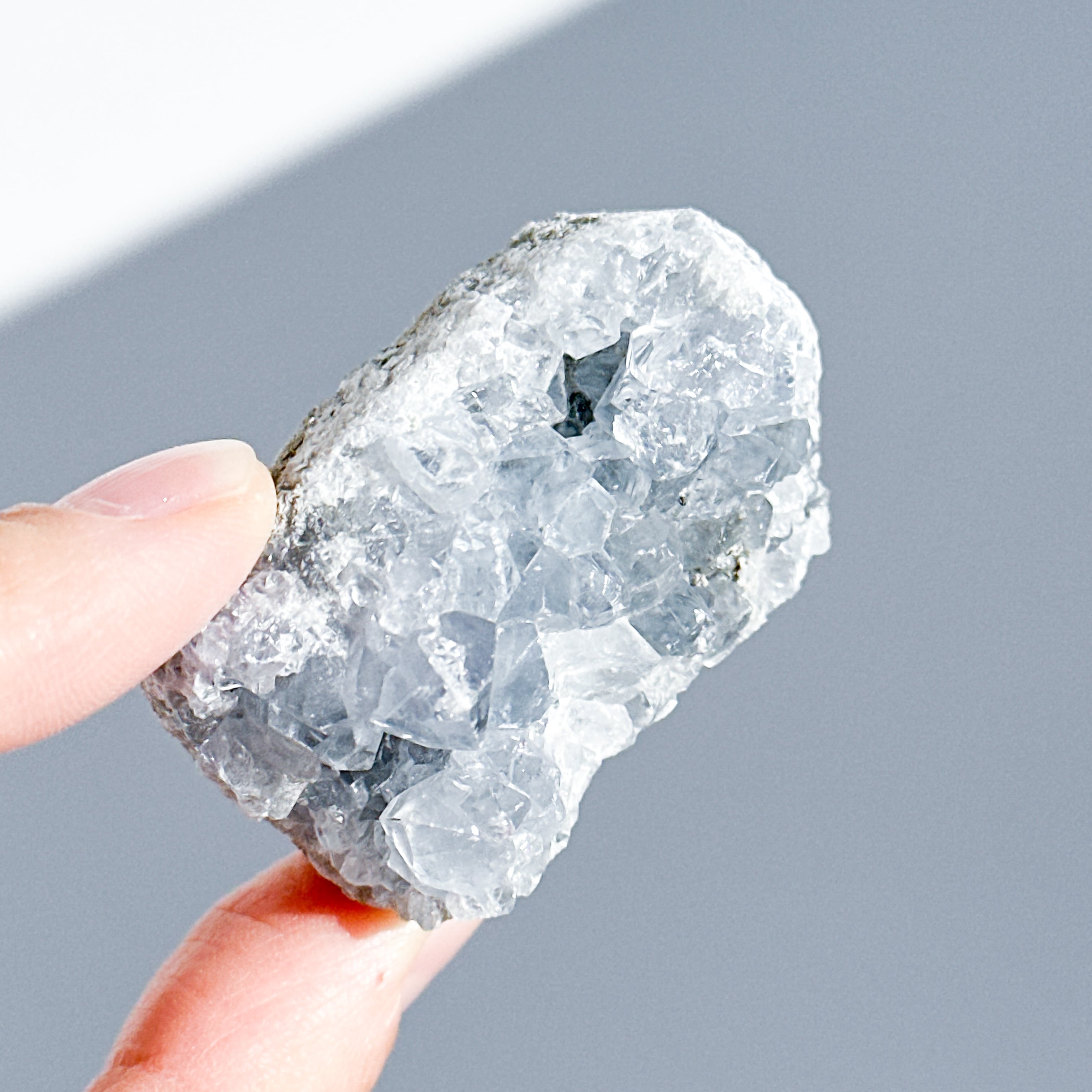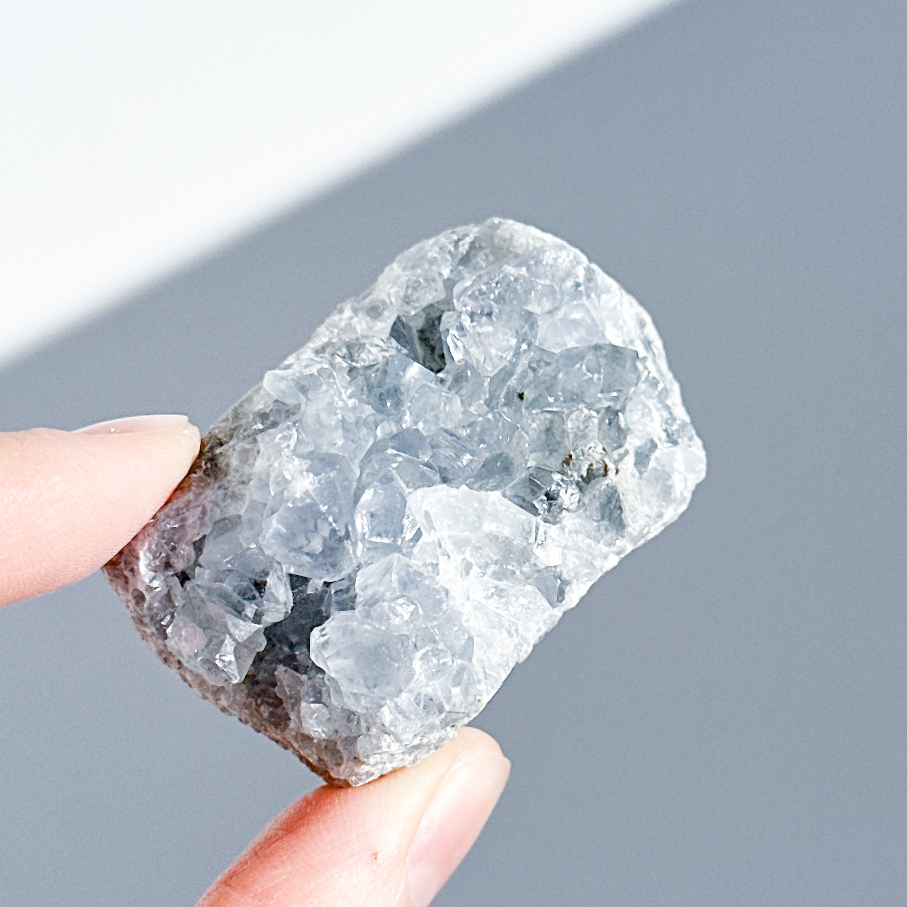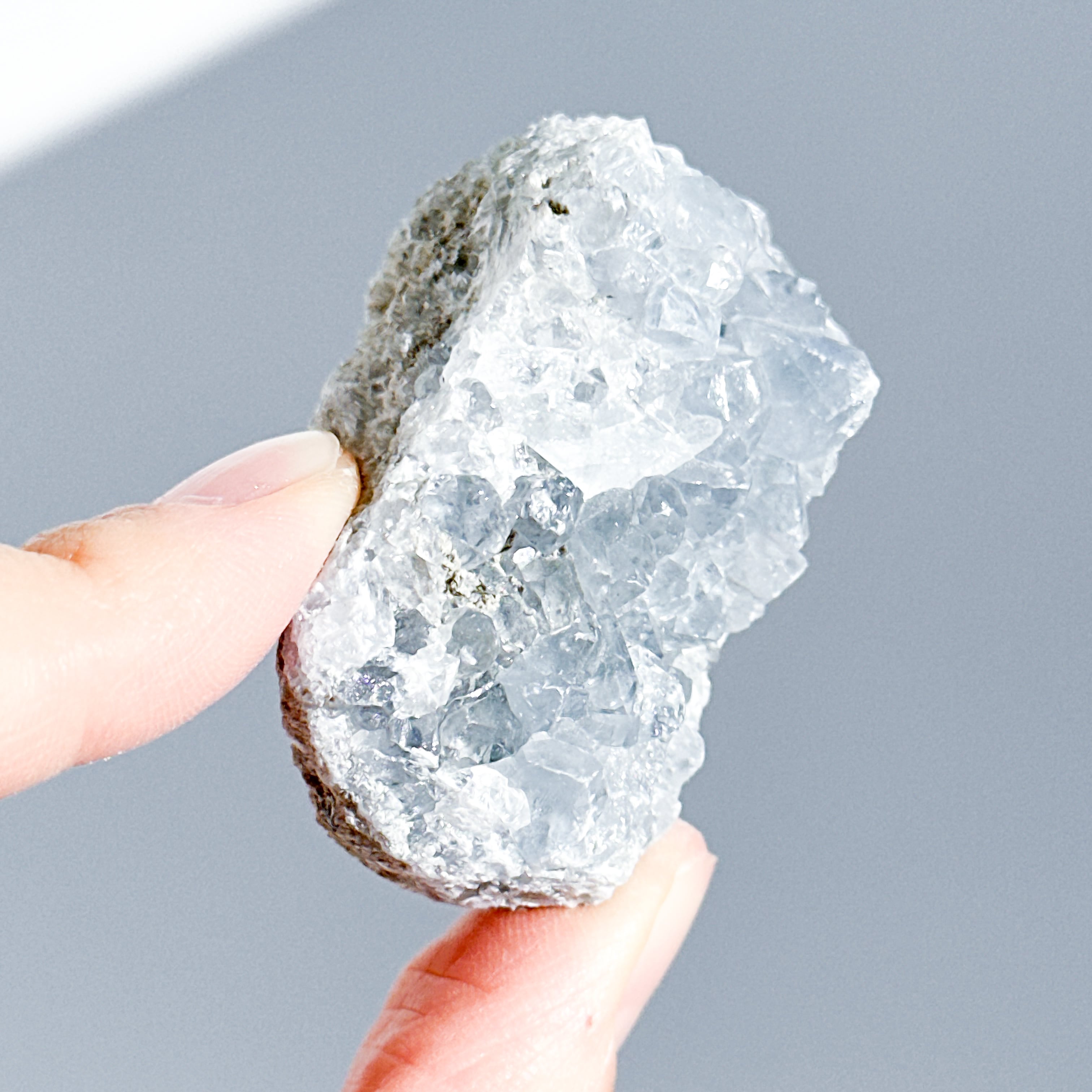 幾多あるブルーの天然石の中でも、晴れた空の穏やかさに最も近い印象があるのがセレスタイト。柔らかい色味、優しい輝きから、エンジェルを連想する人も多いようです。