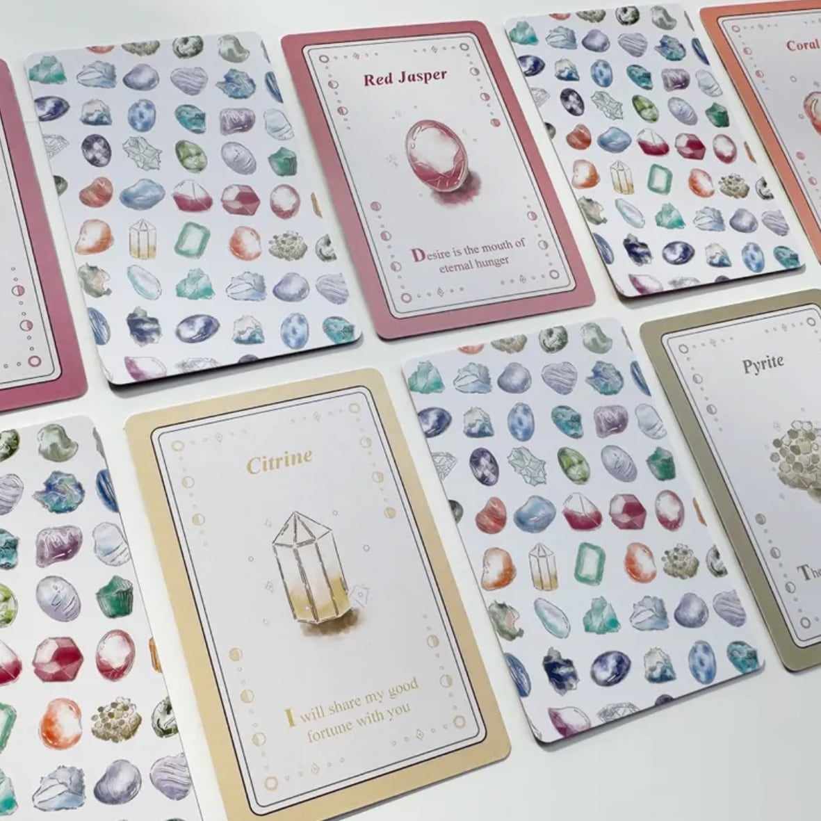 ウォーリーストーンだけでなく、48枚のカードに48種類の石をデザインし、解説書には石の特徴やエネルギーを説明し、活用方法も詳しく載せています。