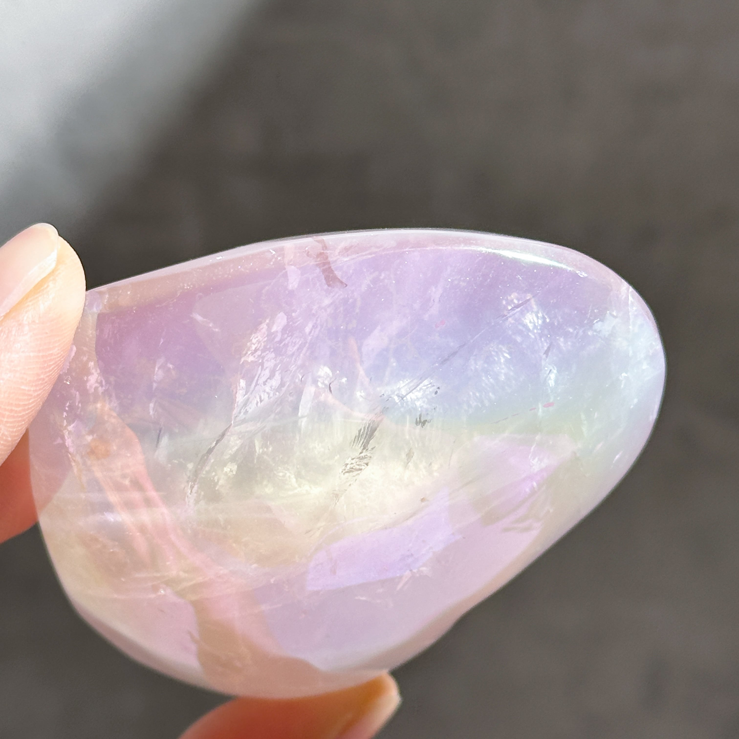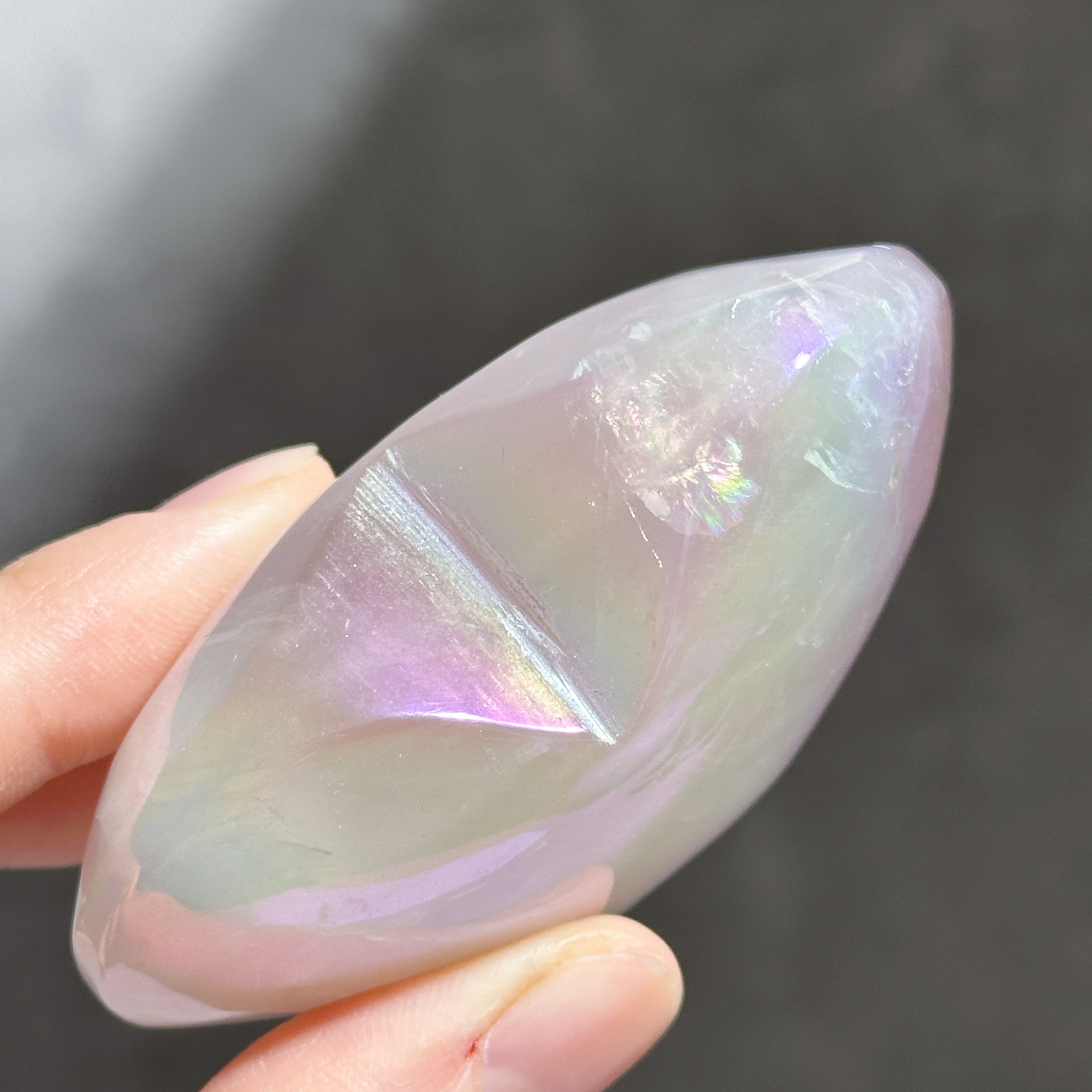 オーラクォーツは天然の水晶に真空状態で金属を癒着コーティングさせた、新時代のクリスタルです。