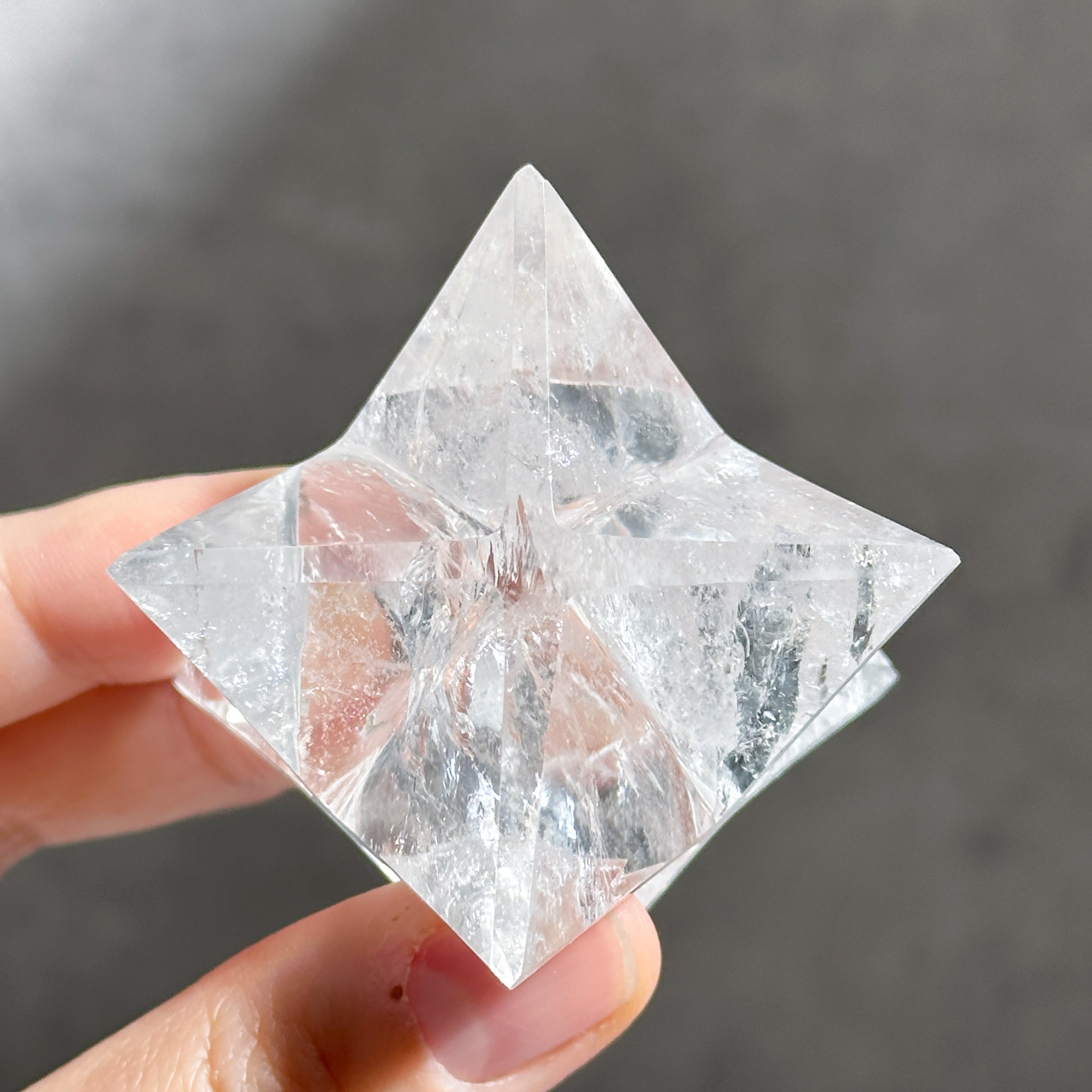 ブラジル・ミナスジェライス産のクリアクォーツを、マカバ型に研磨したものです。