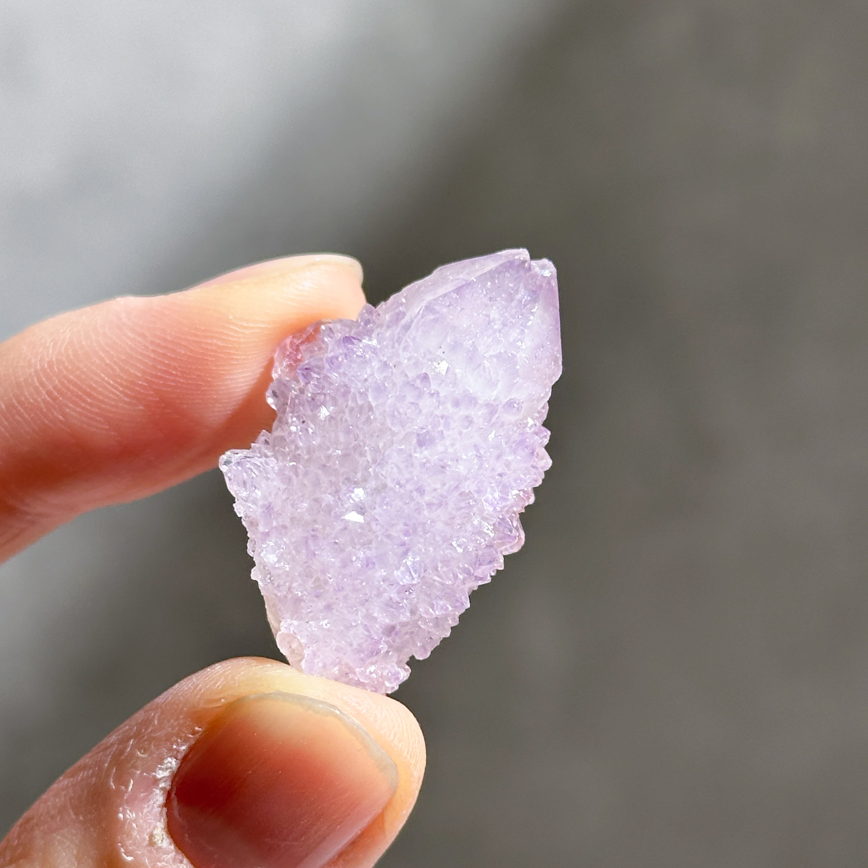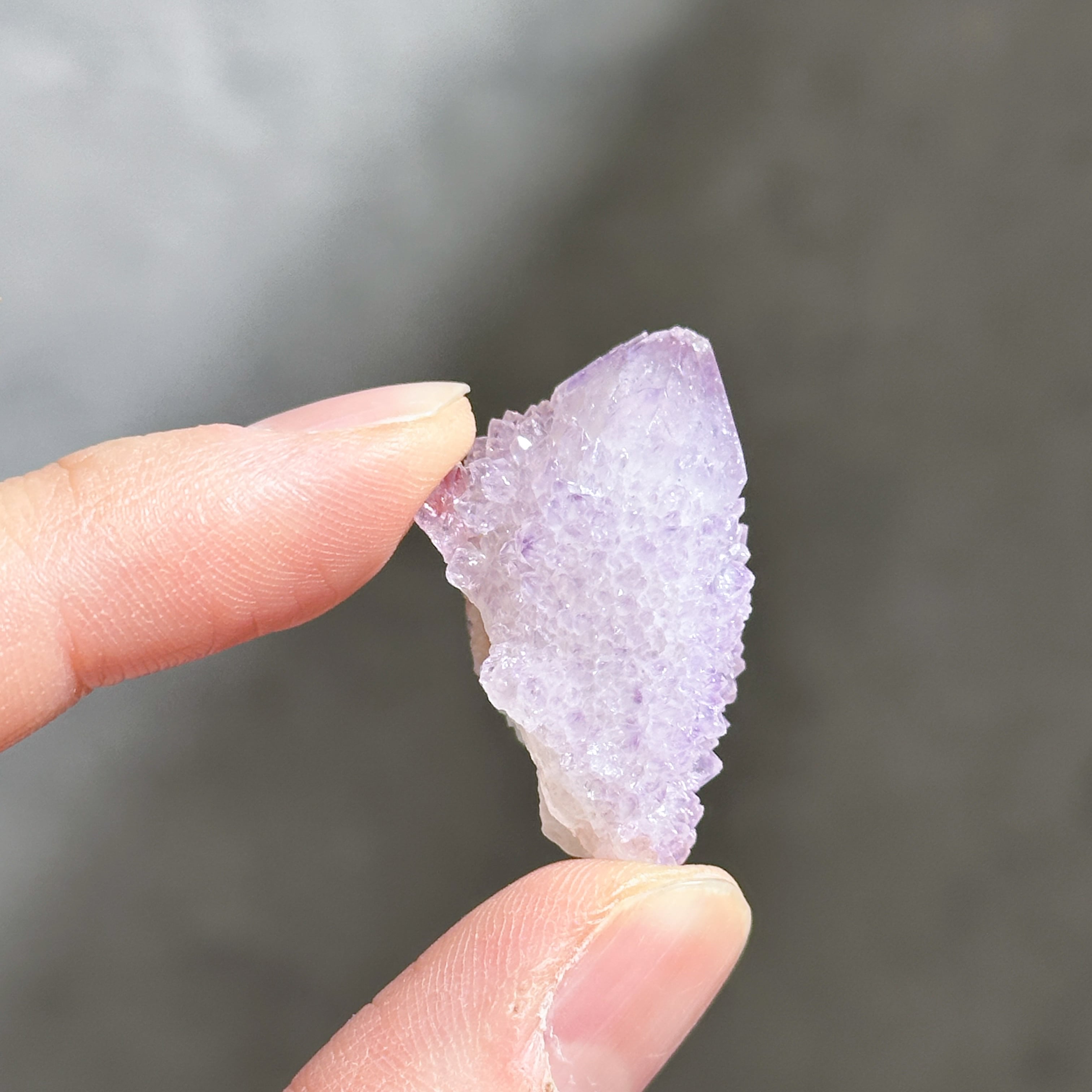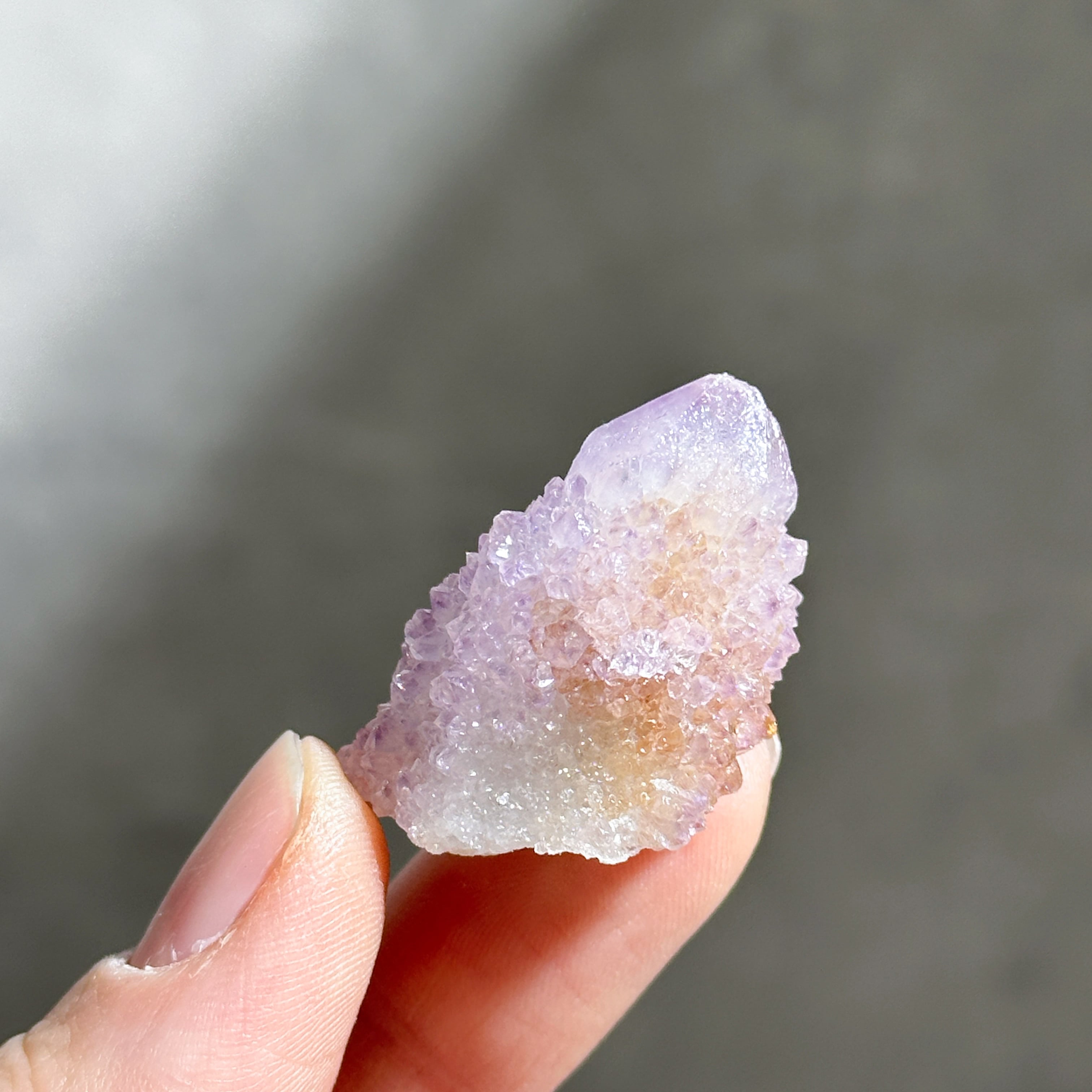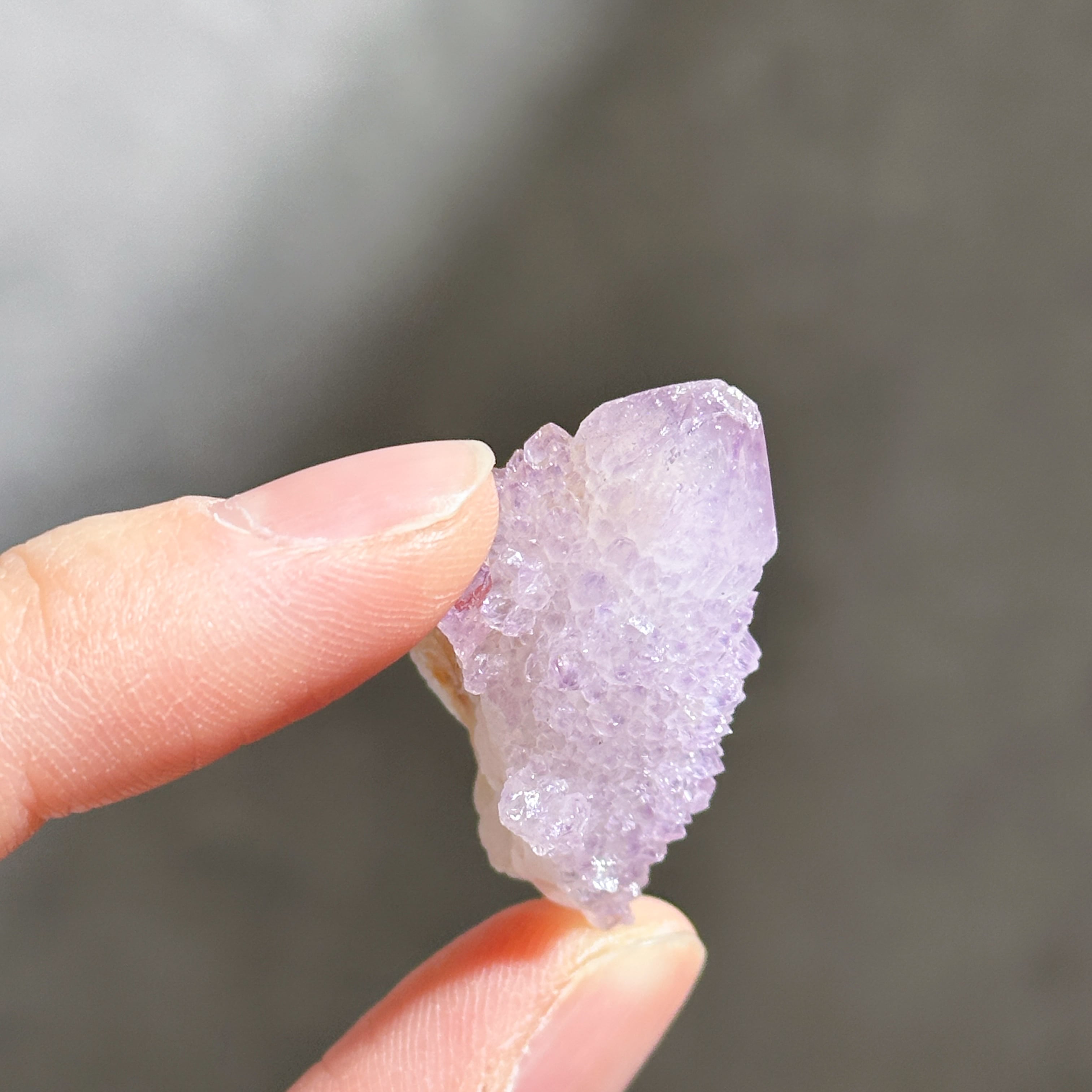 砂糖菓子のように美しい、ライラック色(淡い紫色)のスピリットクォーツのクラスターを、