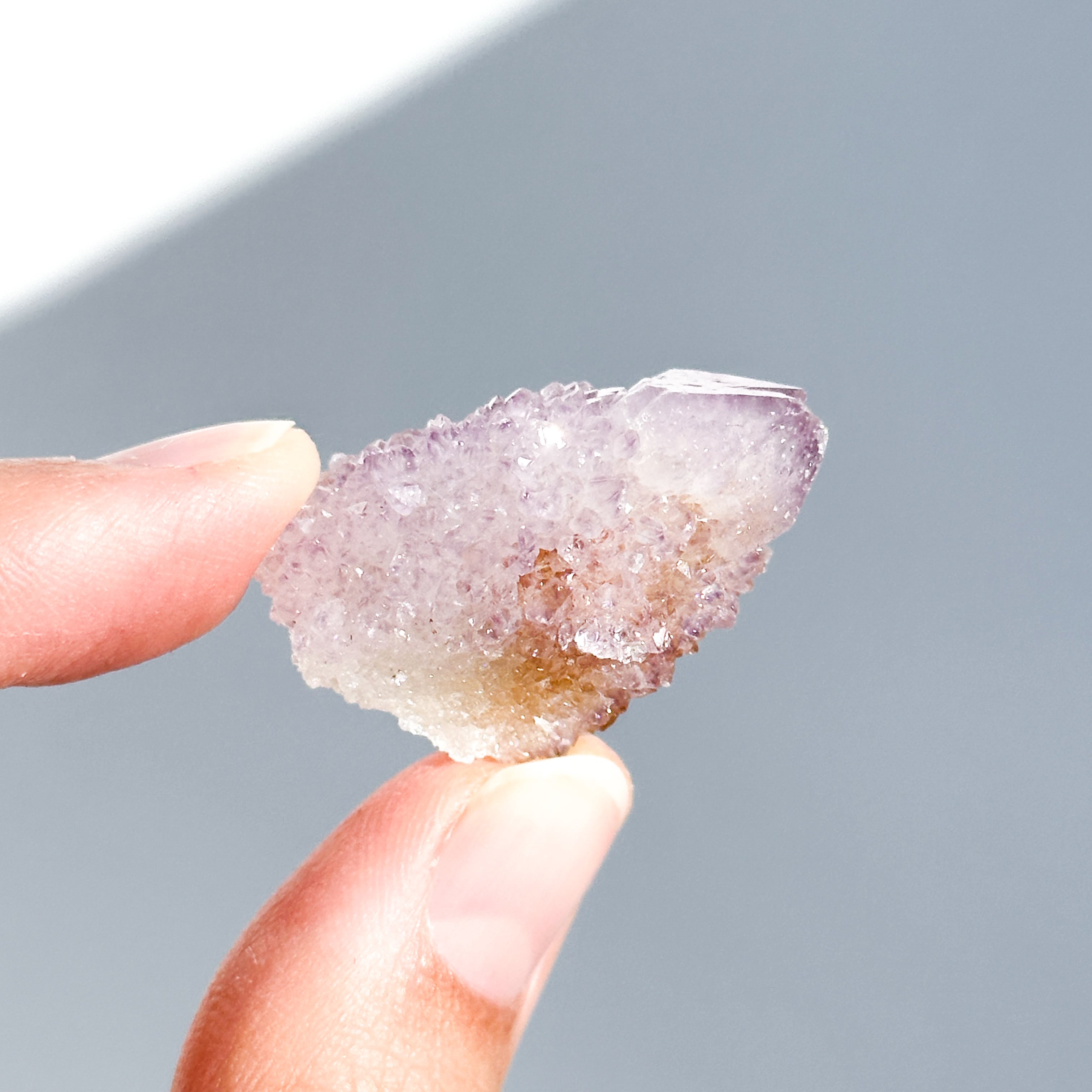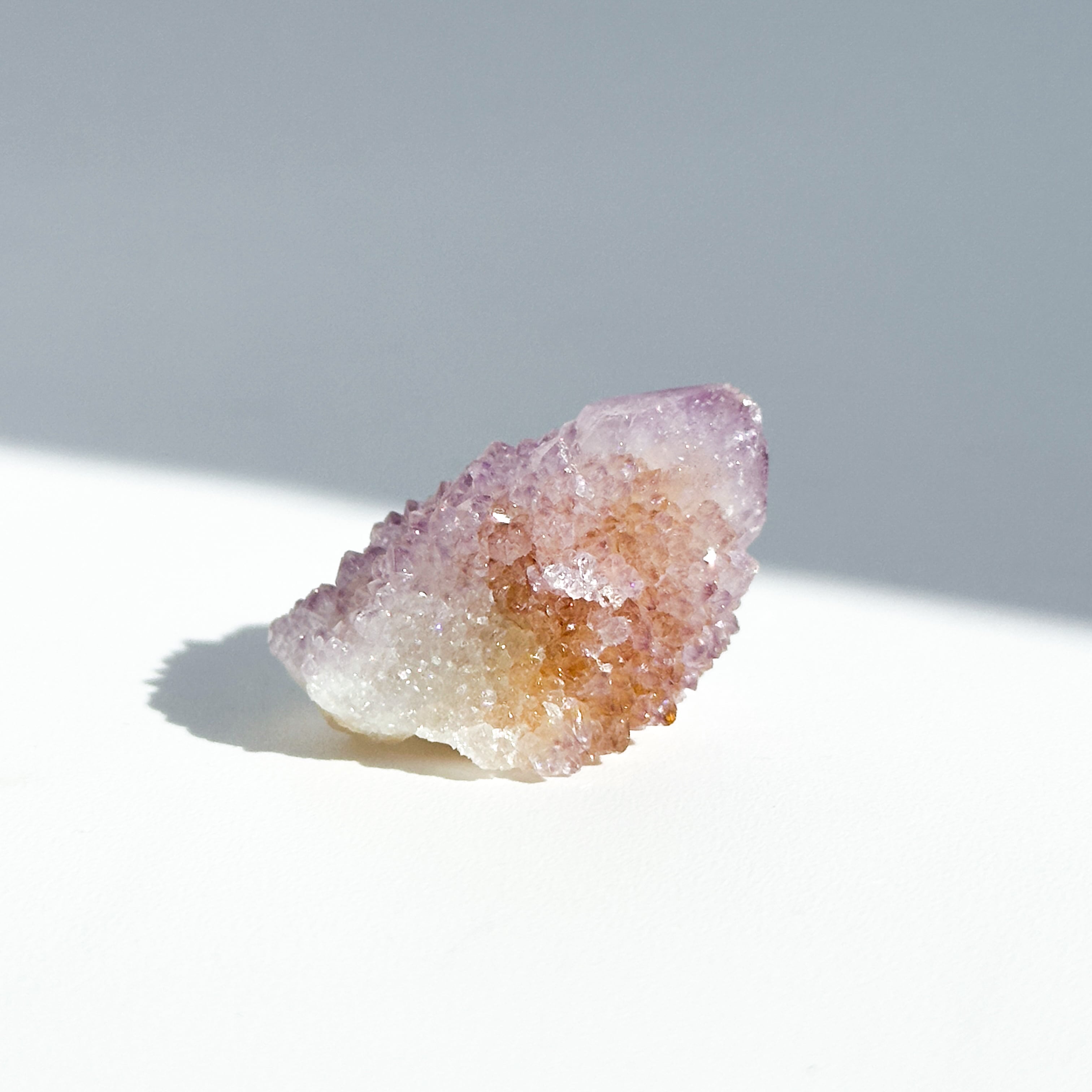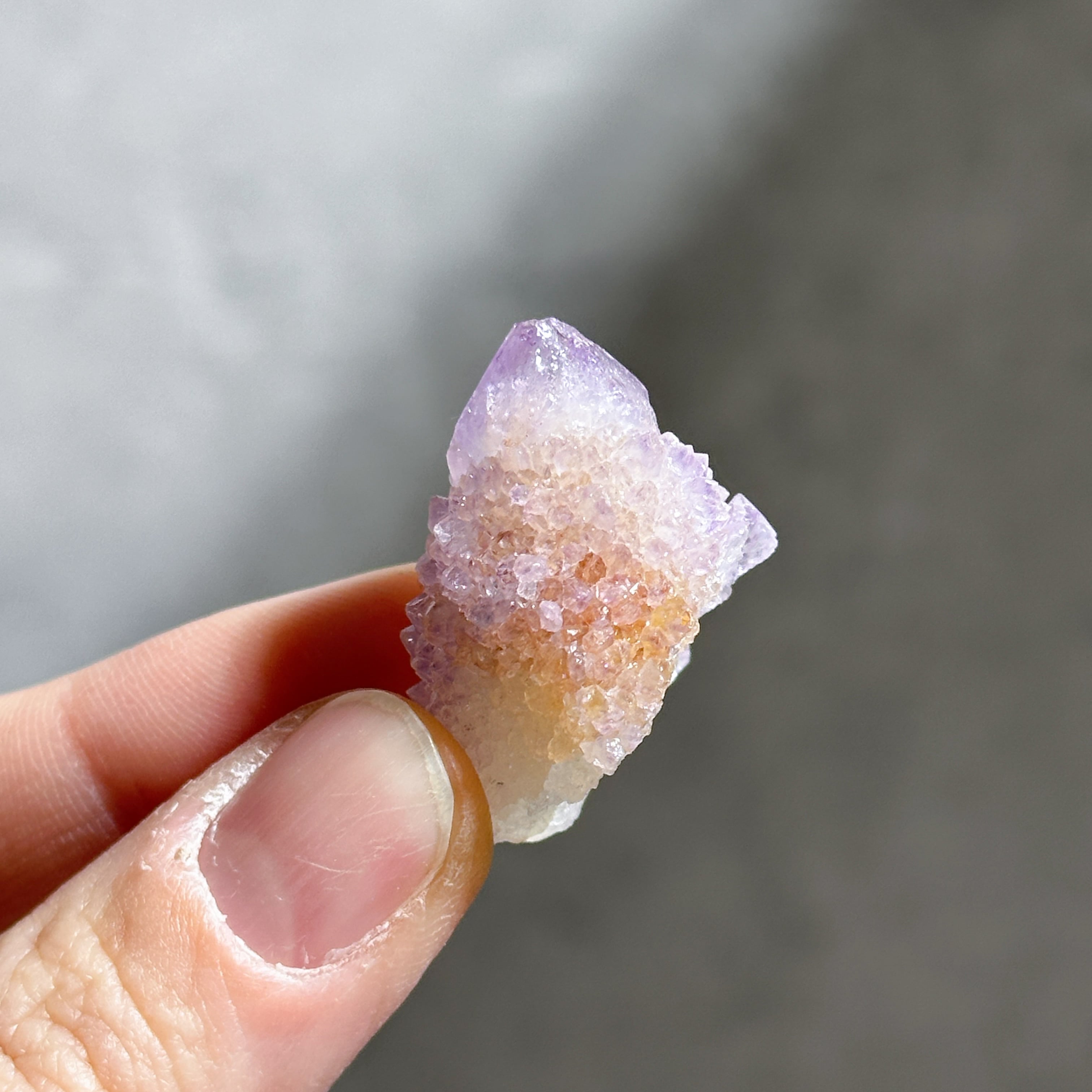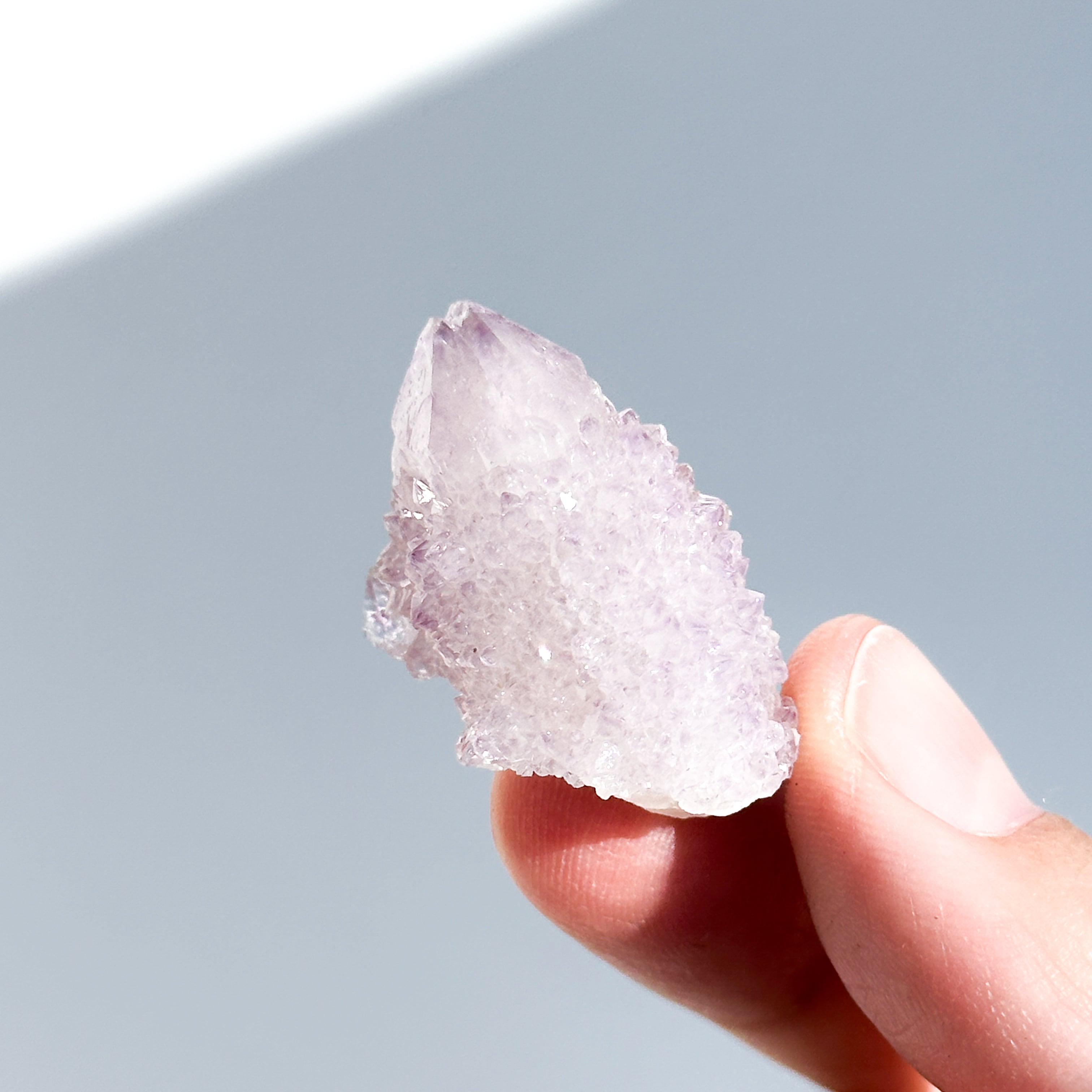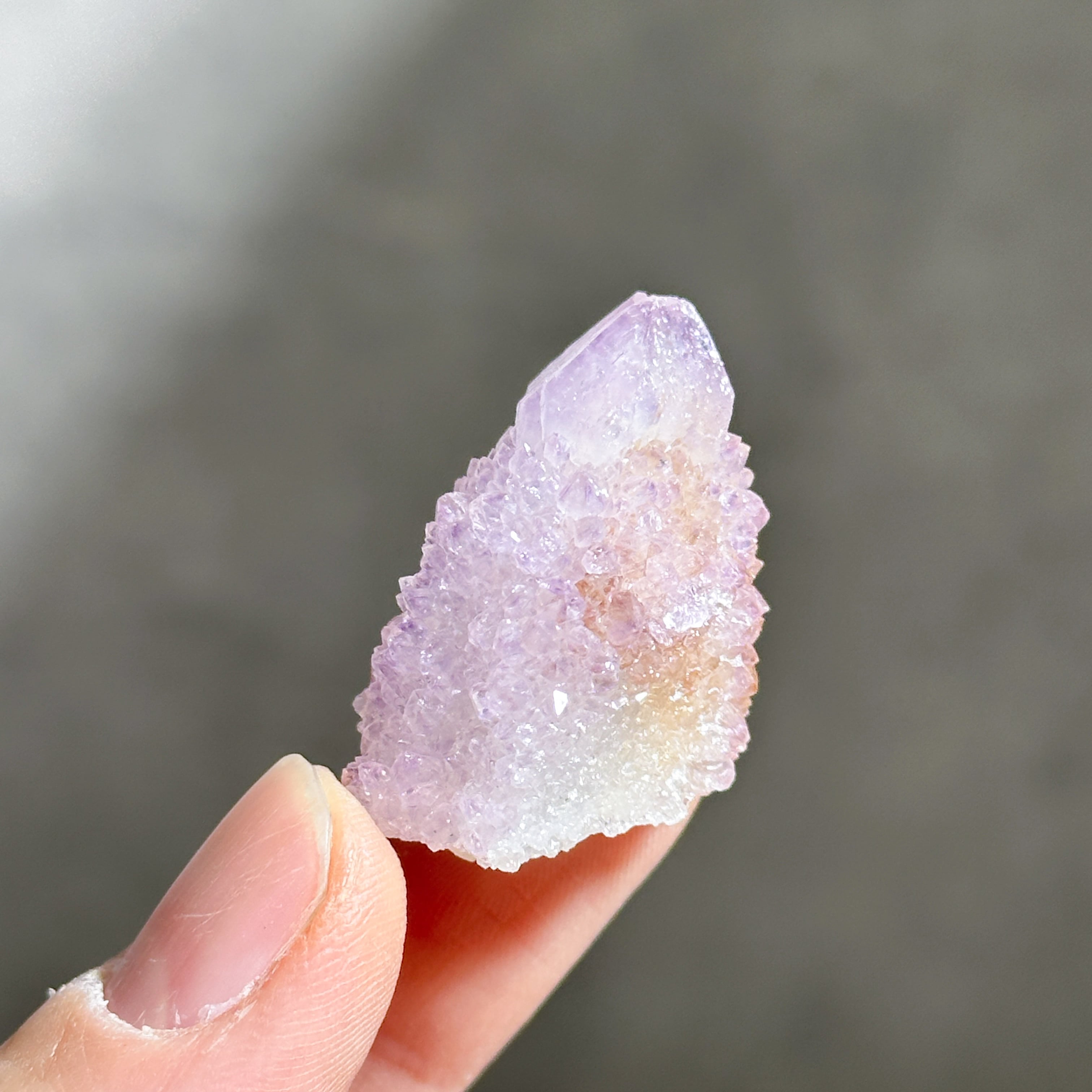 砂糖菓子のように美しい、ライラック色(淡い紫色)のスピリットクォーツのクラスターを、