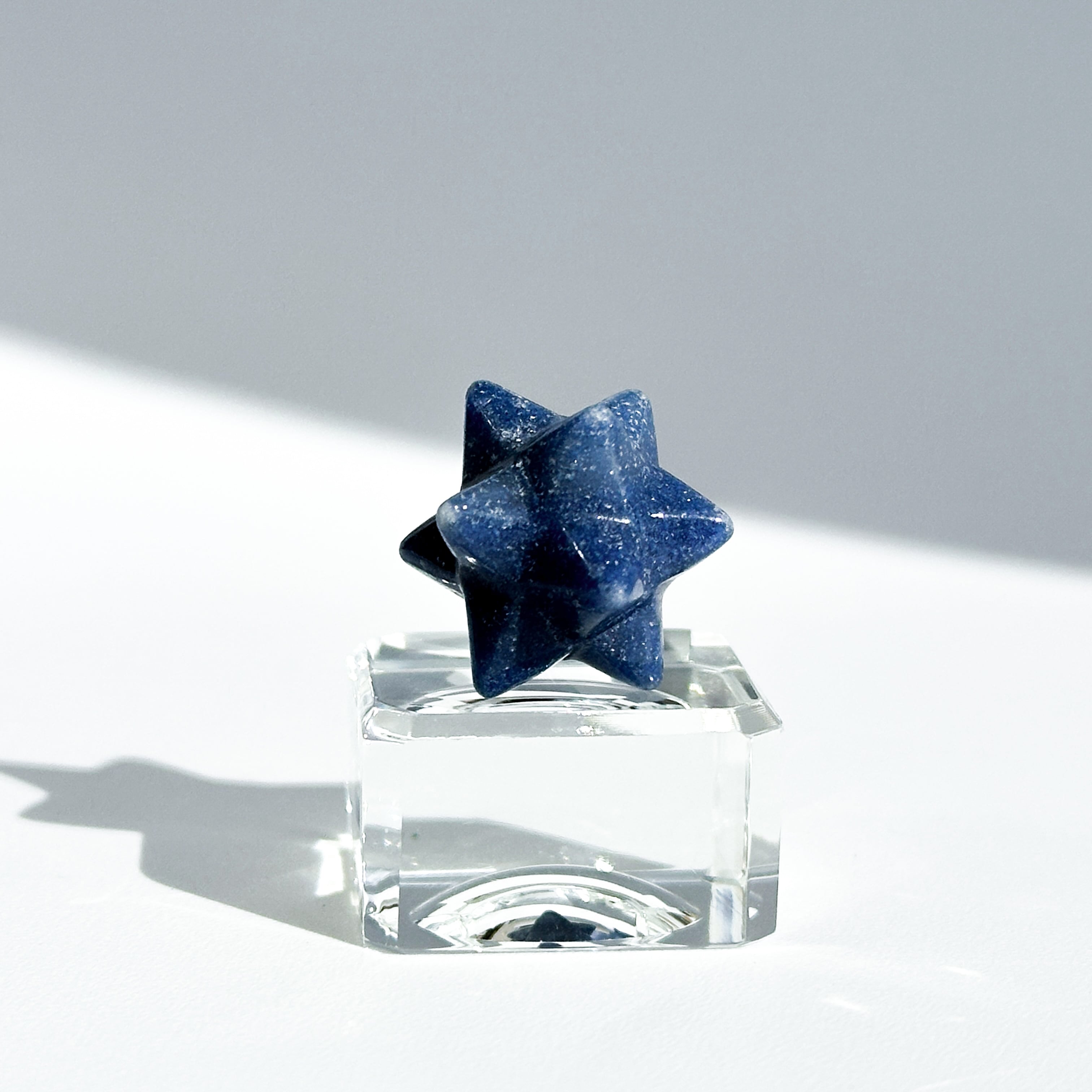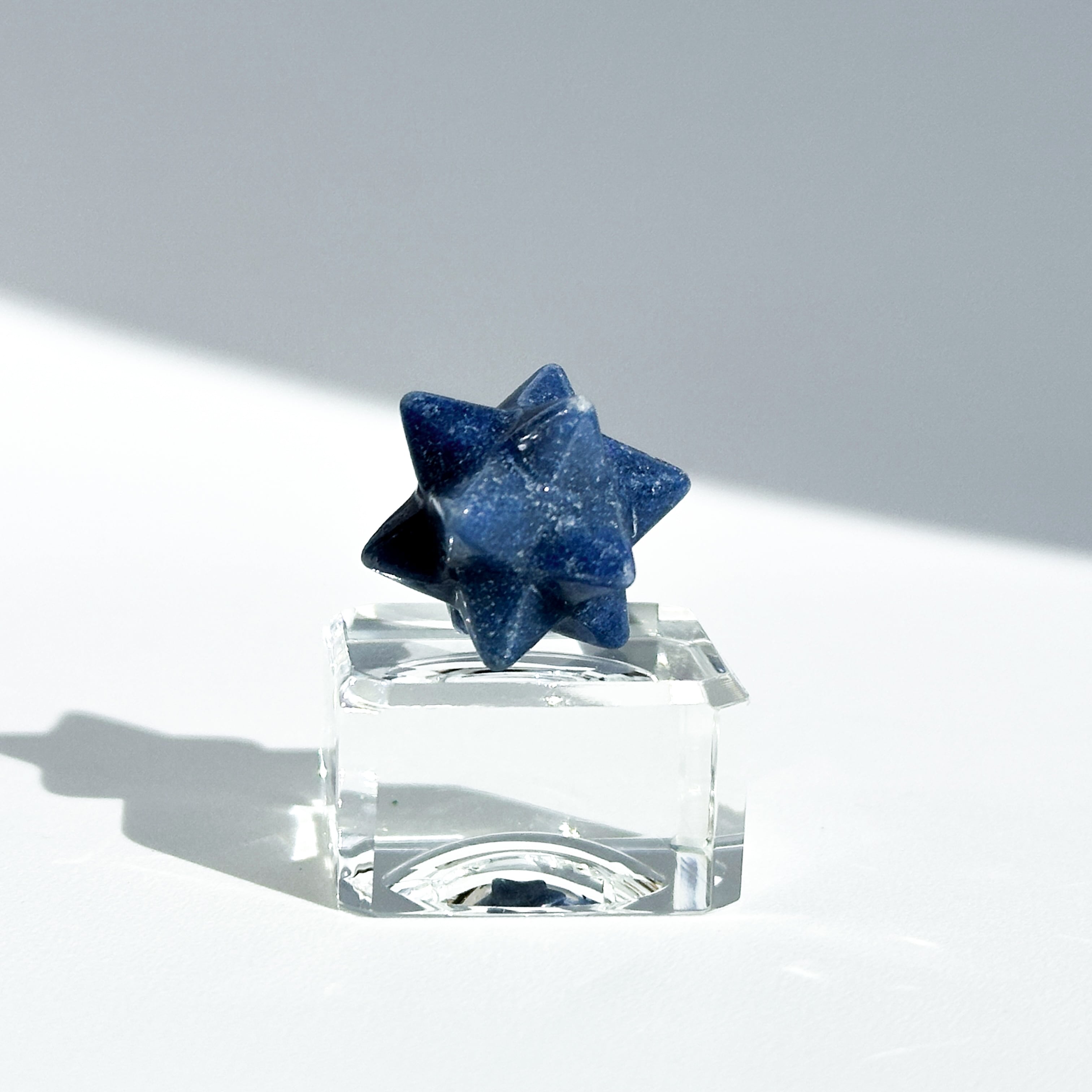 ここでは「トロレアイト」と呼びますが、トロレアイト(青)・クォーツ(白)・ラズライト(濃い青)が混じったもののようで、曲線を描くグラデーションと引き込まれるような色合いを持つ鉱物です。面によって異なる表情を見せる、世界に二つとないお品です。