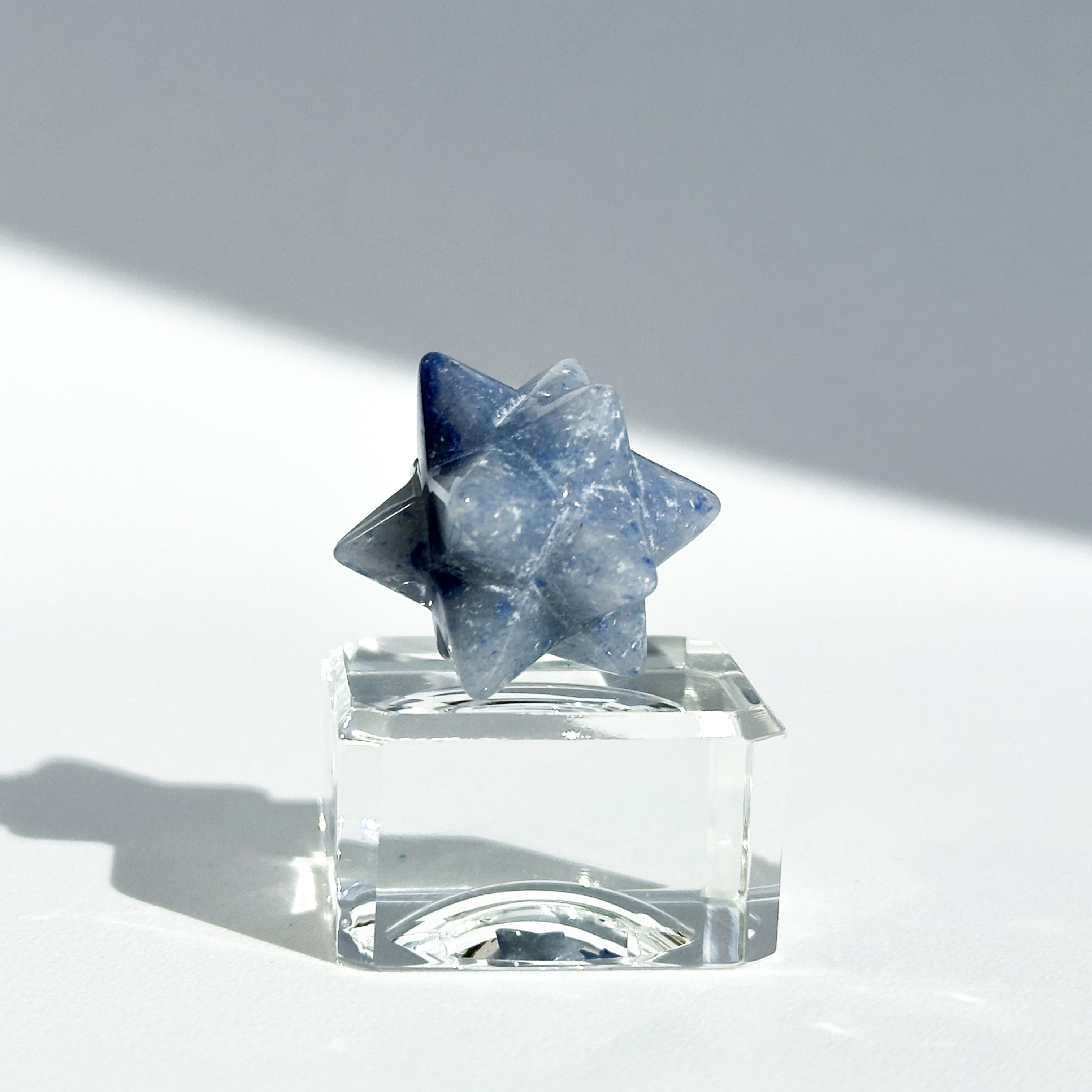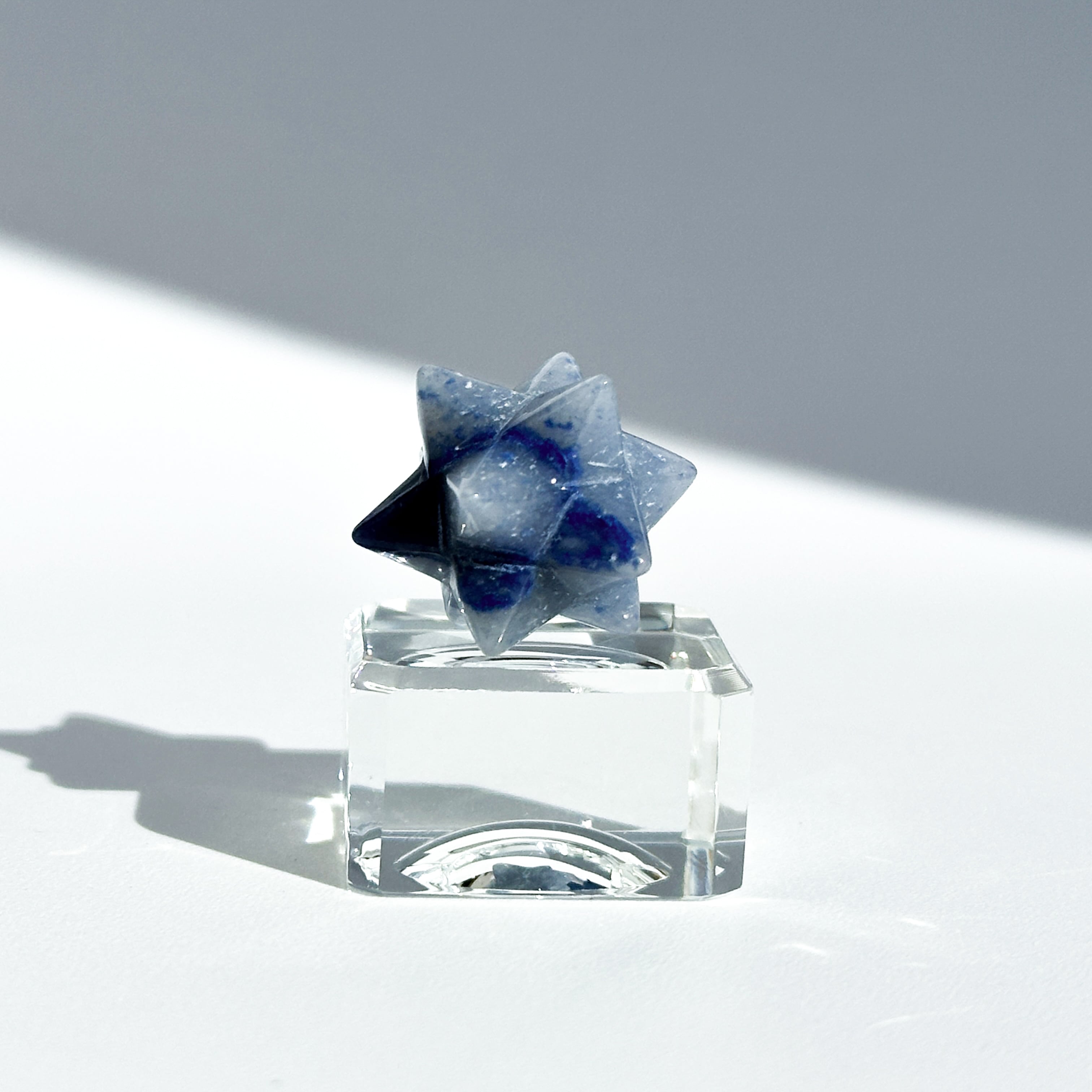 ここでは「トロレアイト」と呼びますが、トロレアイト(青)・クォーツ(白)・ラズライト(濃い青)が混じったもののようで、曲線を描くグラデーションと引き込まれるような色合いを持つ鉱物です。面によって異なる表情を見せる、世界に二つとないお品です。