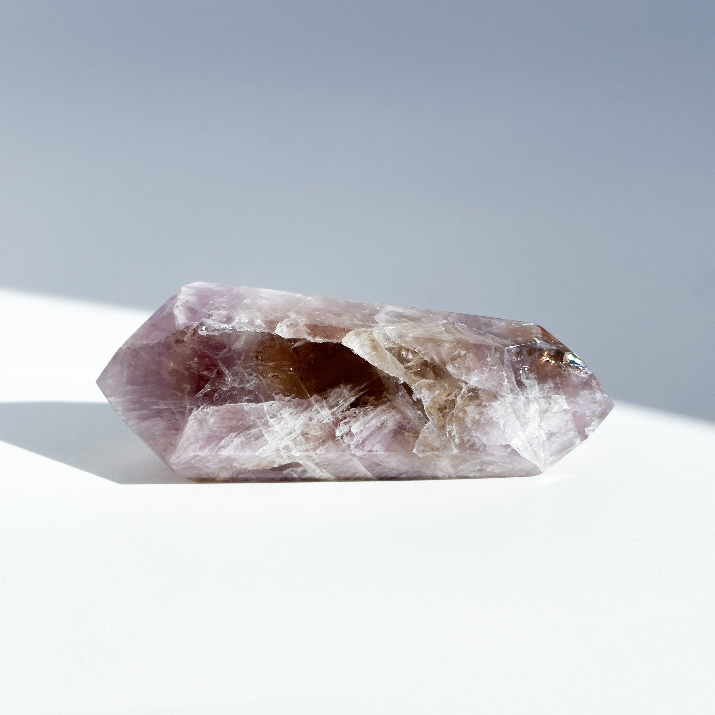 一つの石の中に、水晶(クリアクオーツ)、アメジスト、カコクセナイト、ゲーサイト、レピドクロサイト、スモーキークォーツ、ルチルなど、複数の種類の鉱物が含まれているものを「スーパーセブン(もしくはセイクリットセブン)」と呼びます。