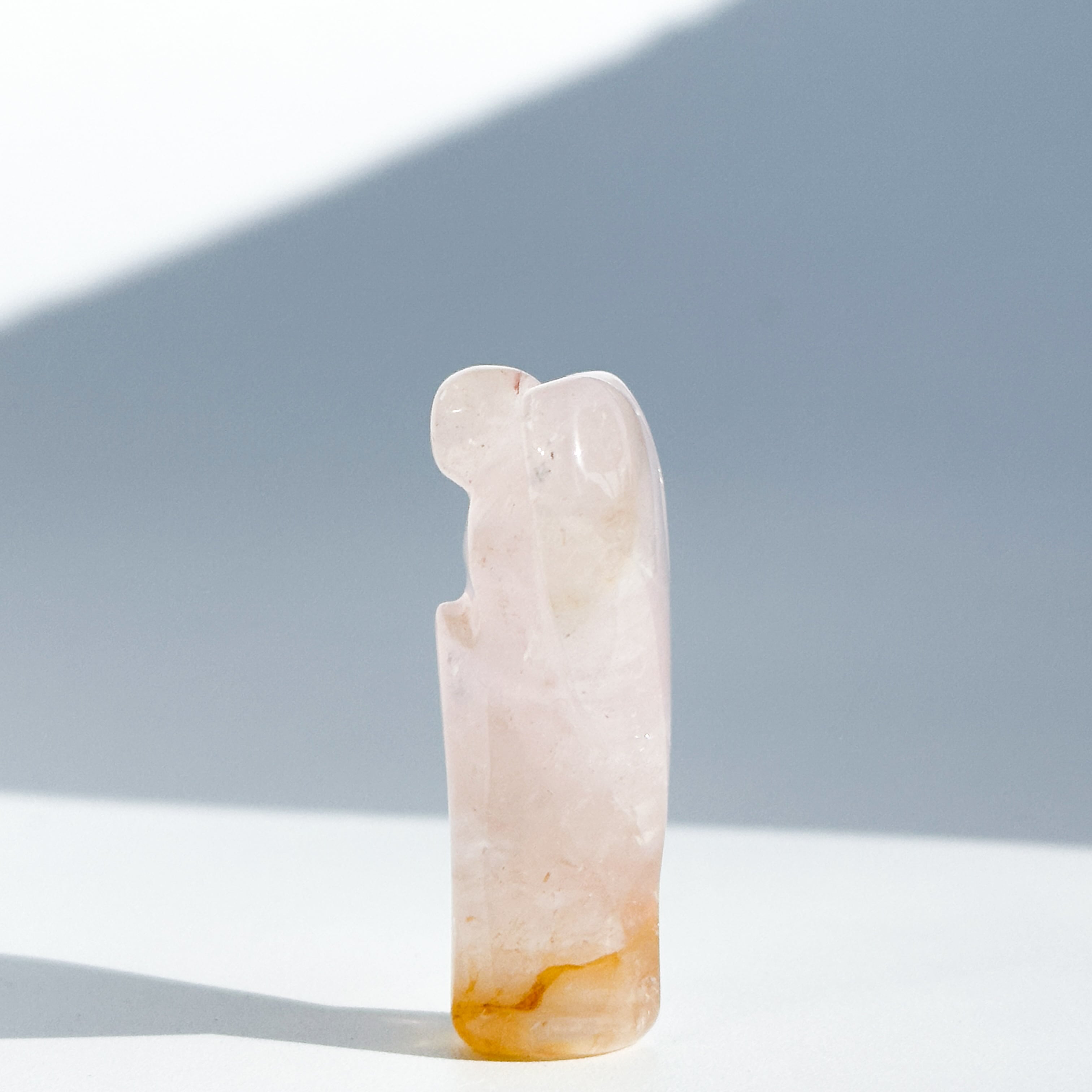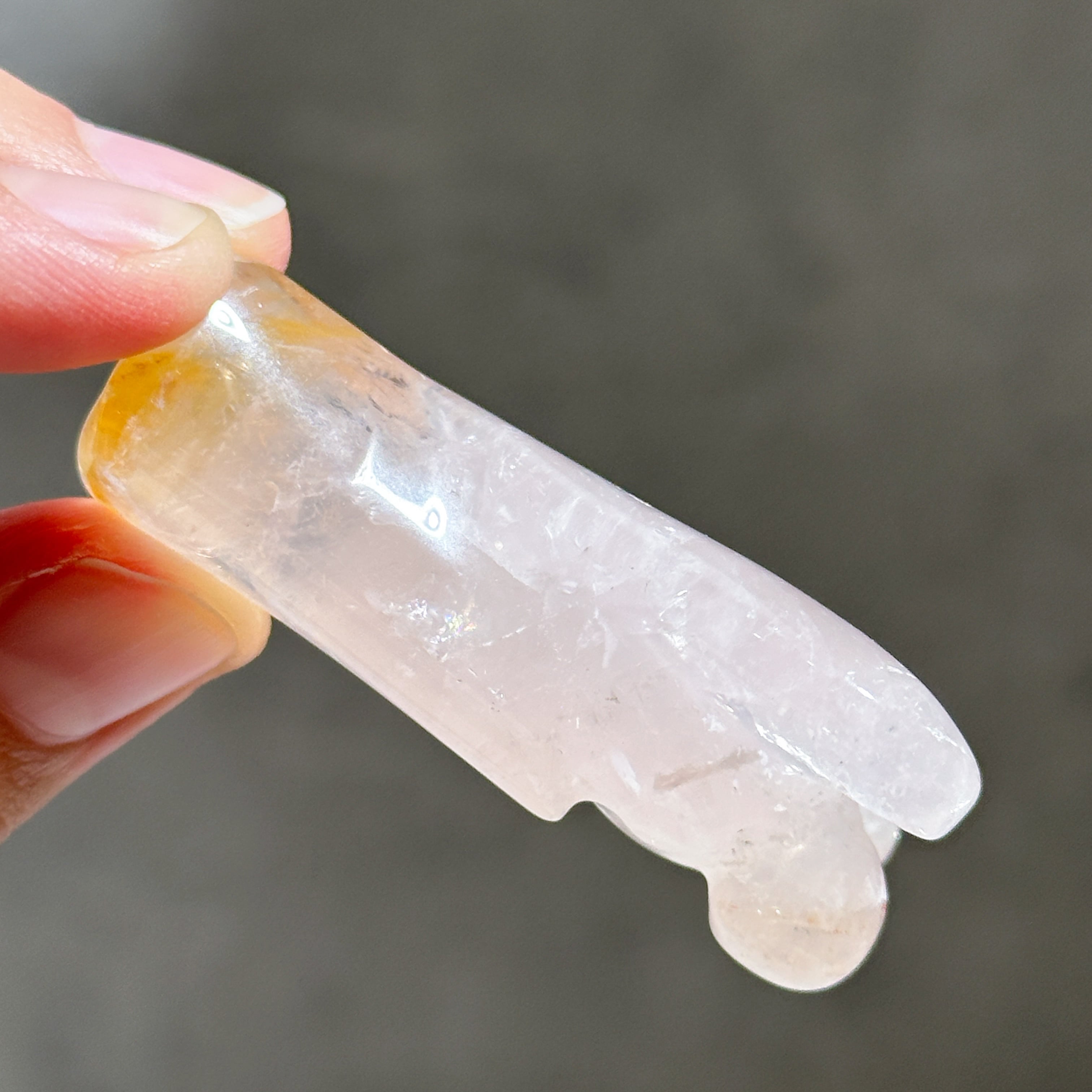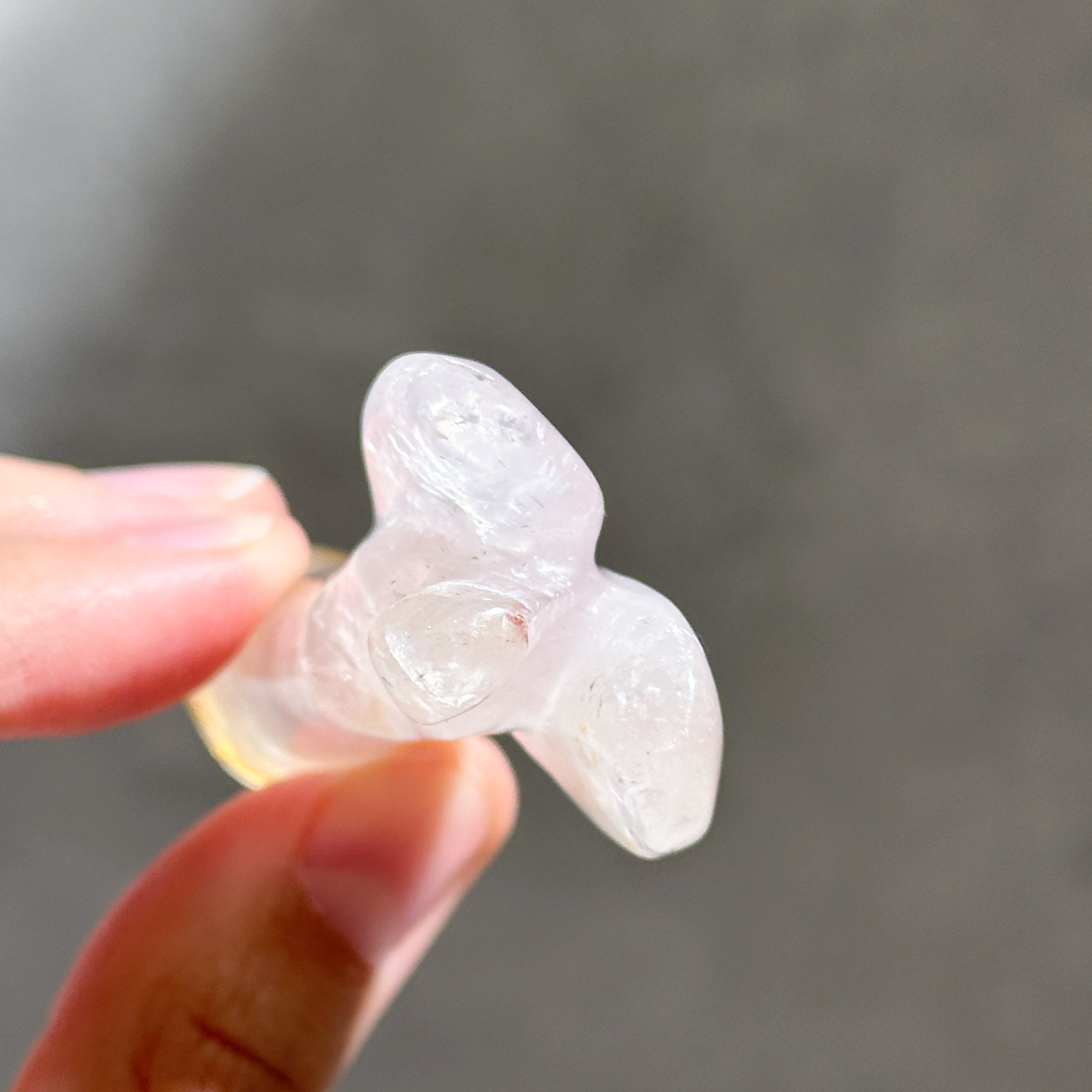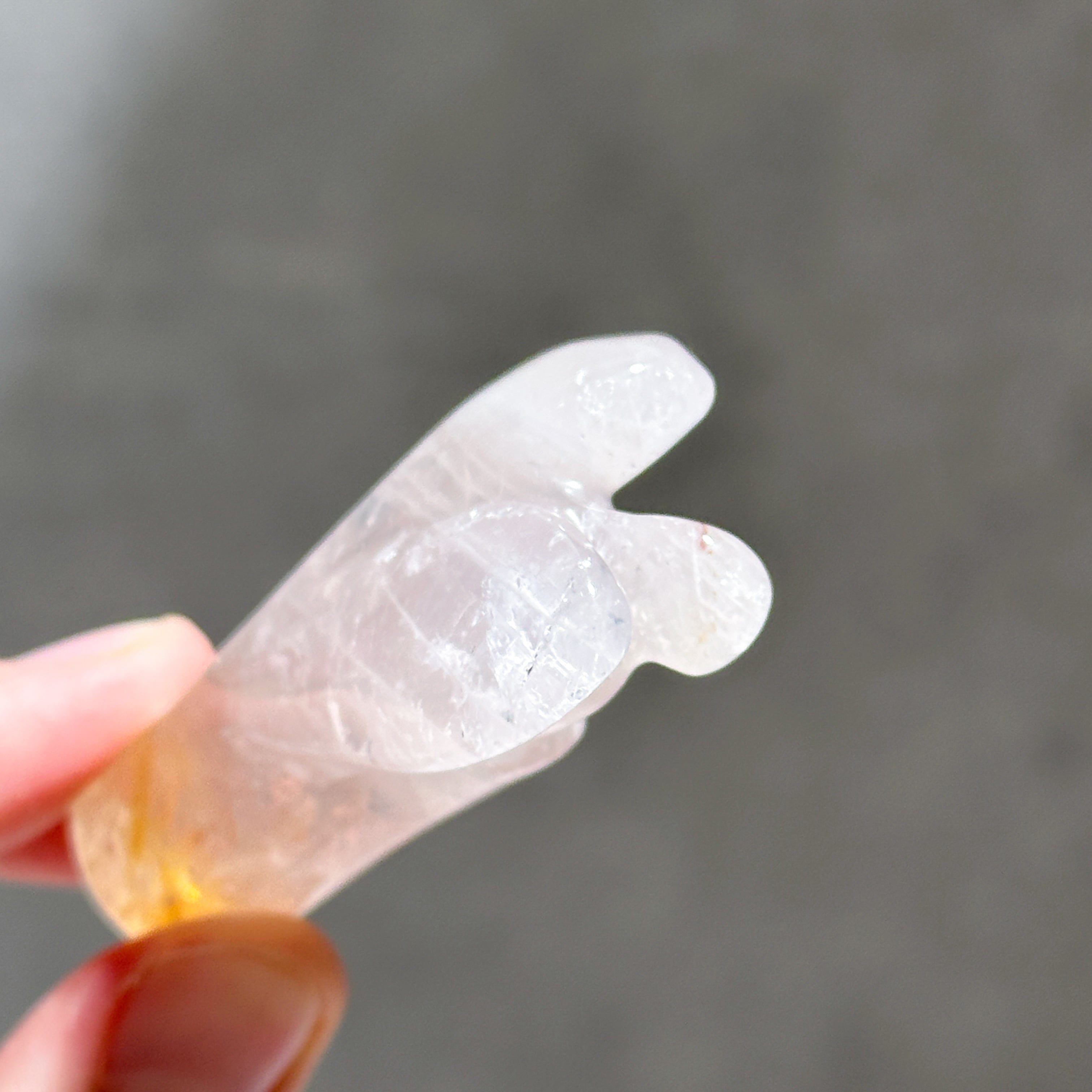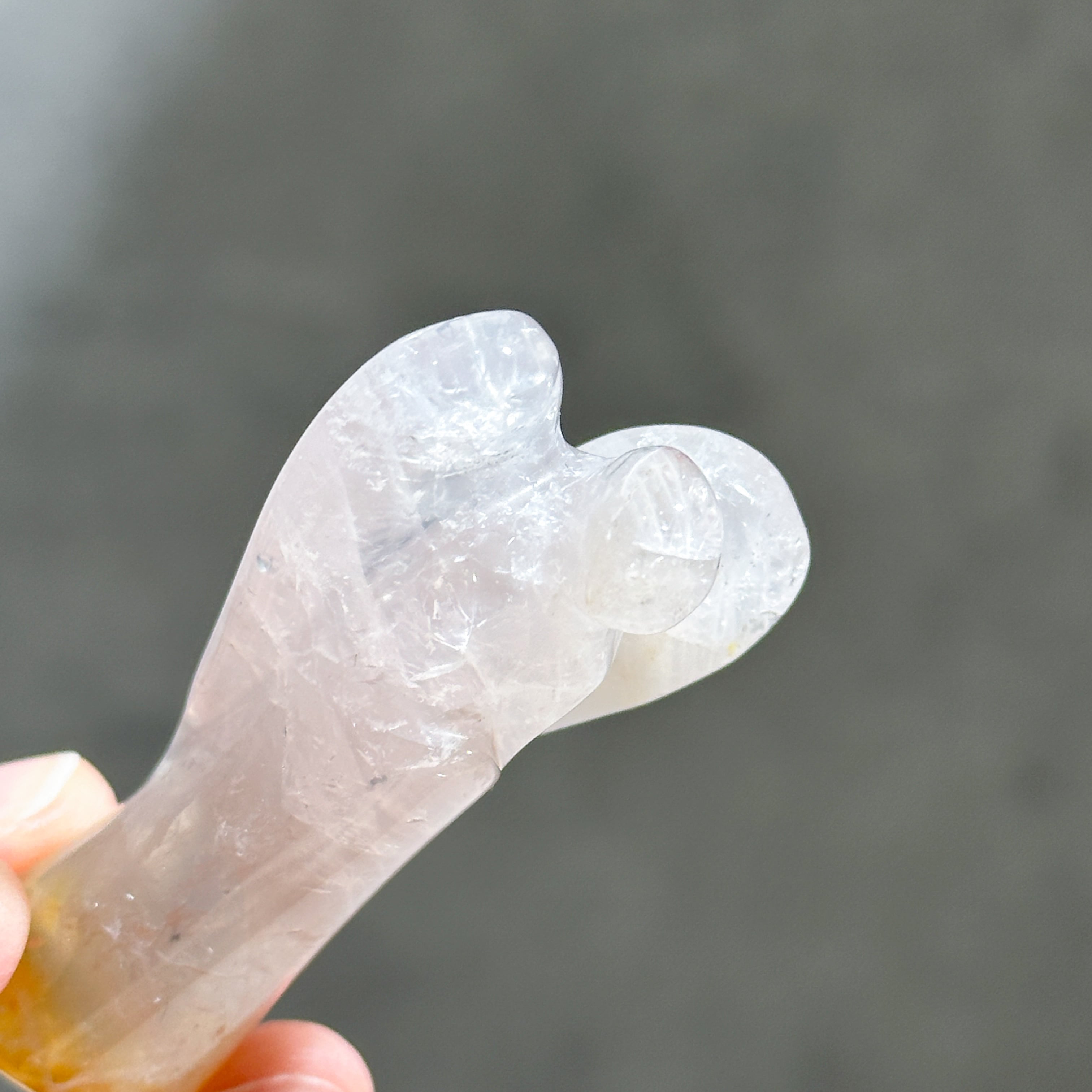 ゴールデンヒーラー×ローズクォーツを、小さなエンジェルの形に彫刻いたしました。