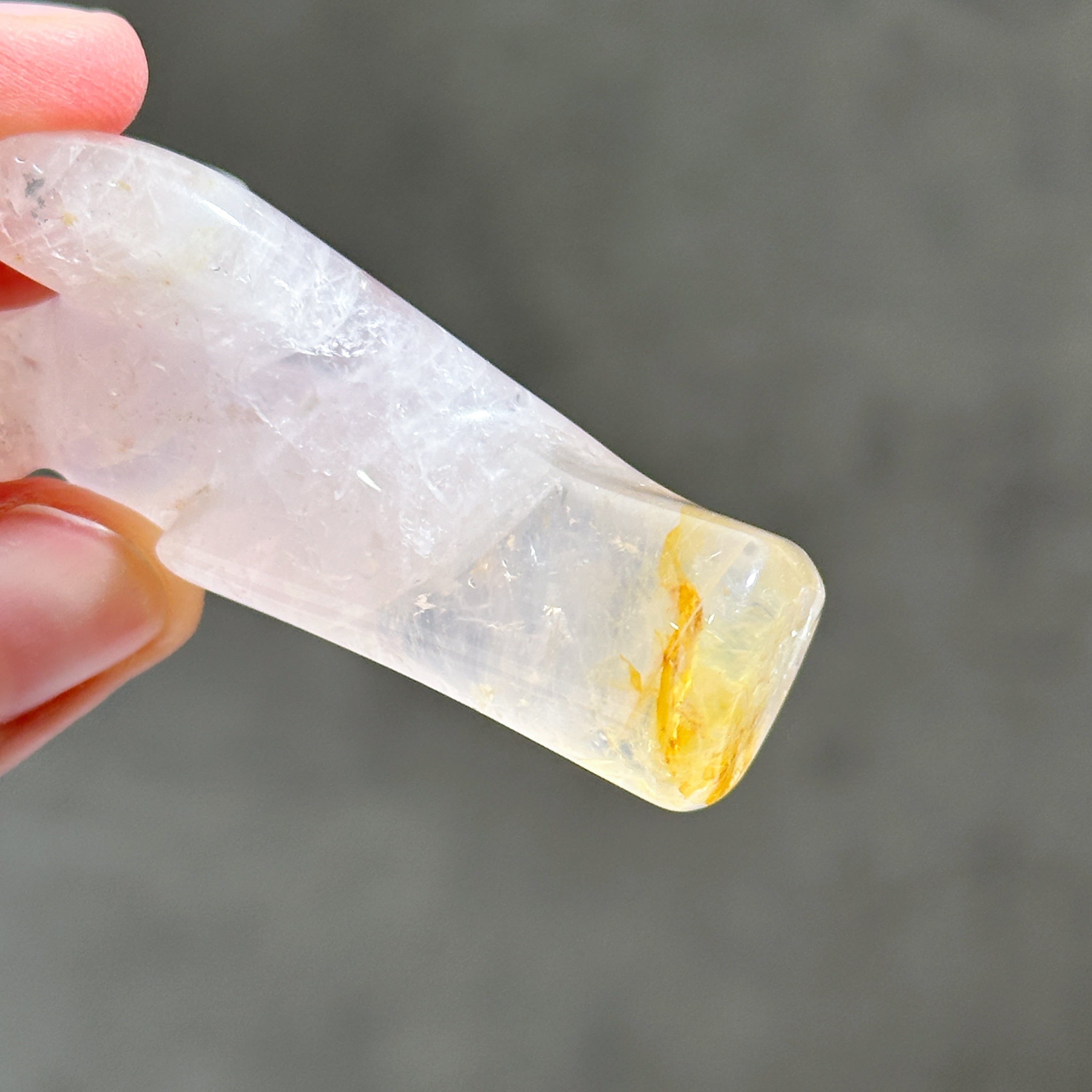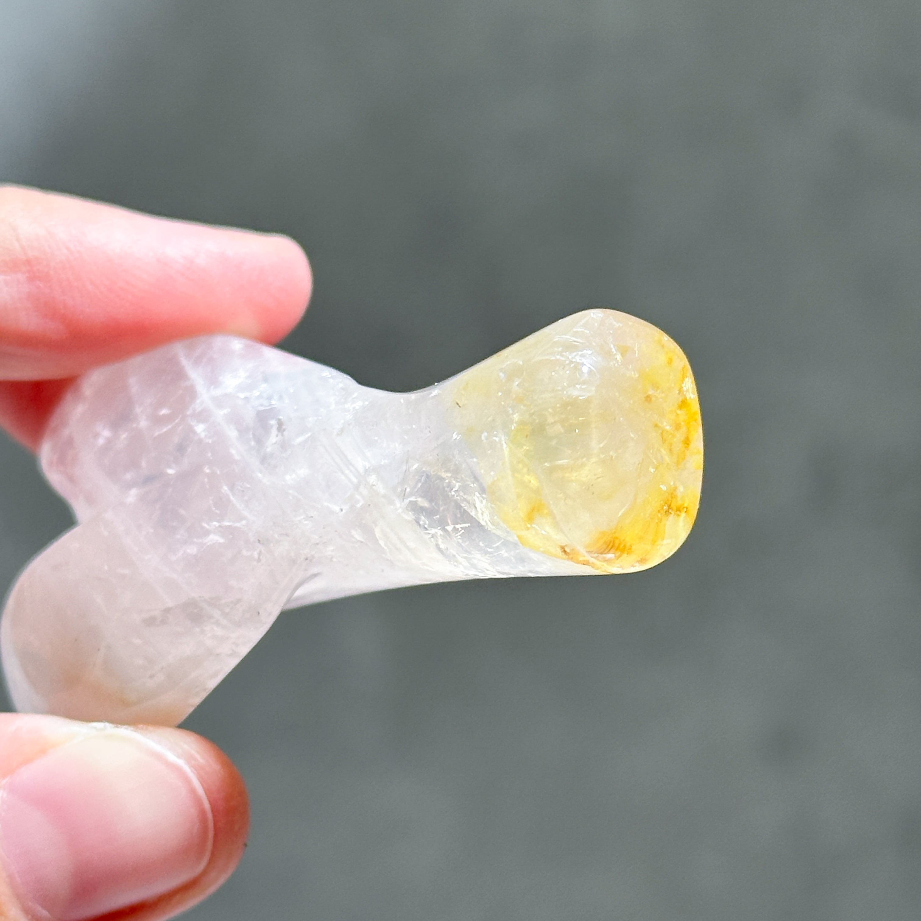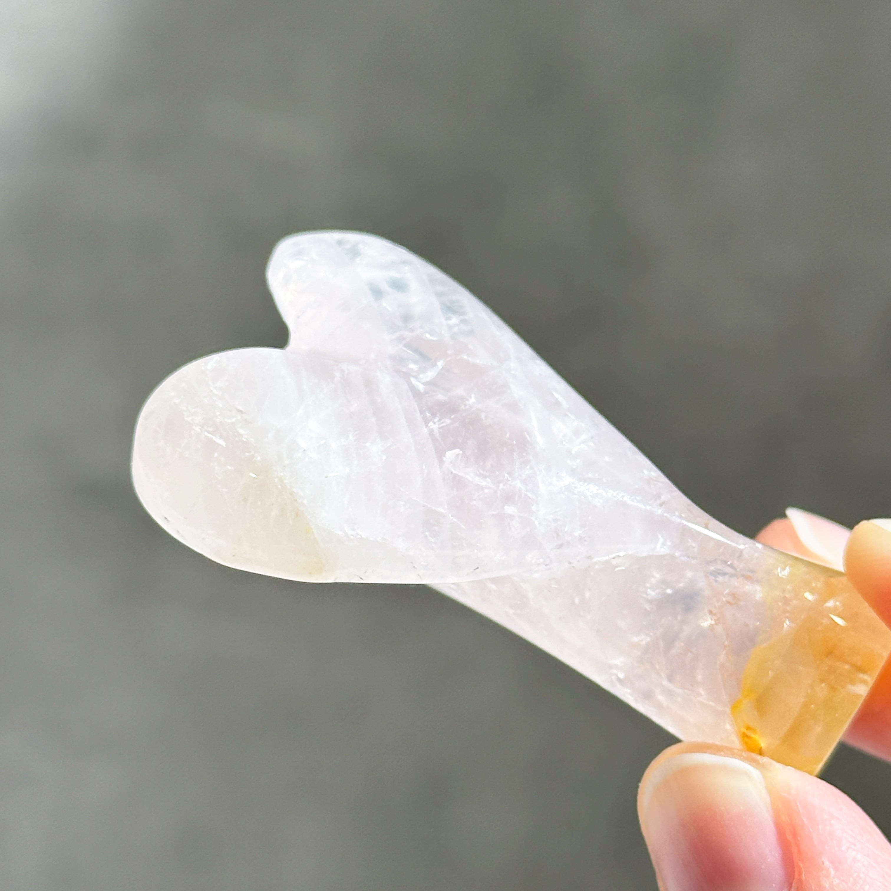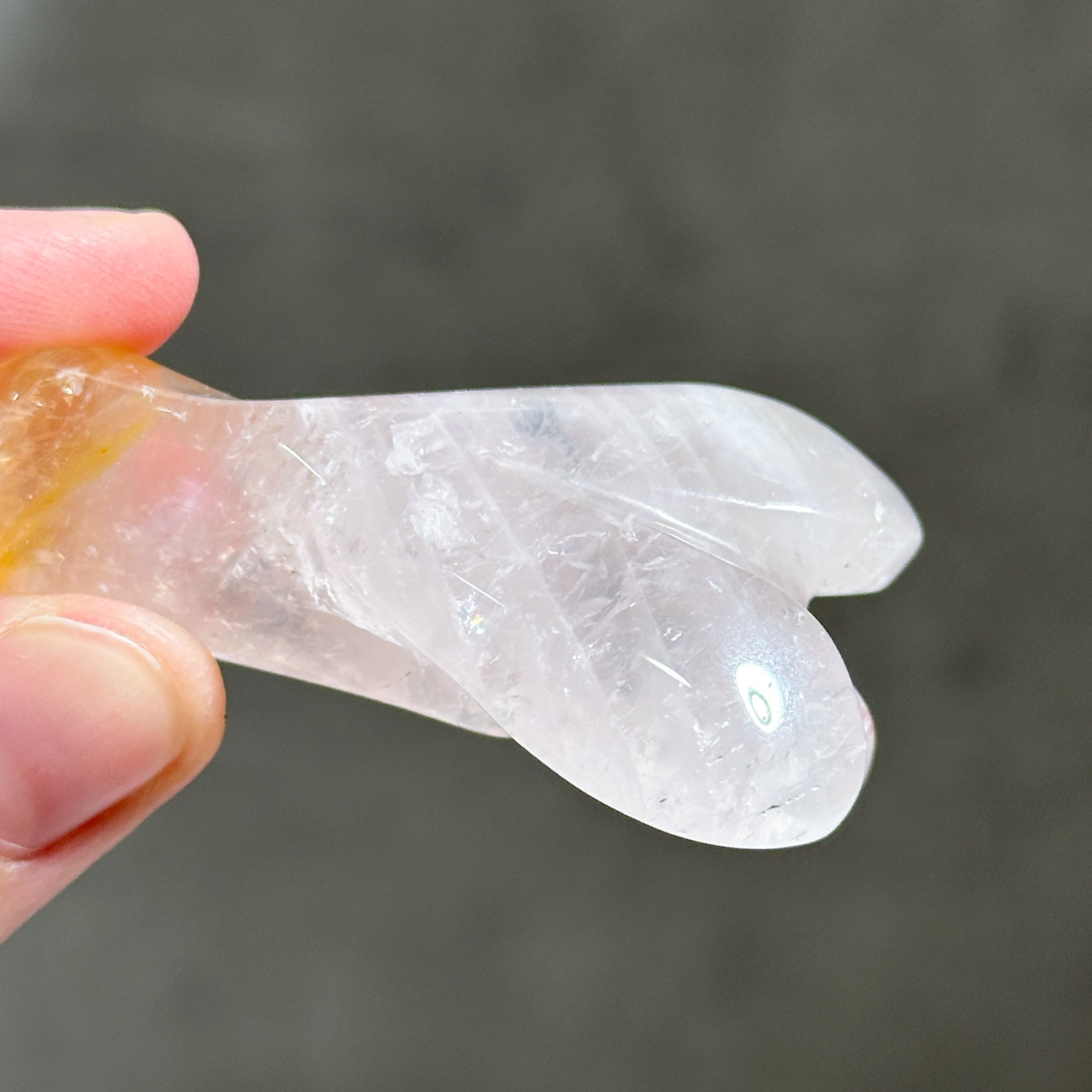 ゴールデンヒーラー×ローズクォーツを、小さなエンジェルの形に彫刻いたしました。