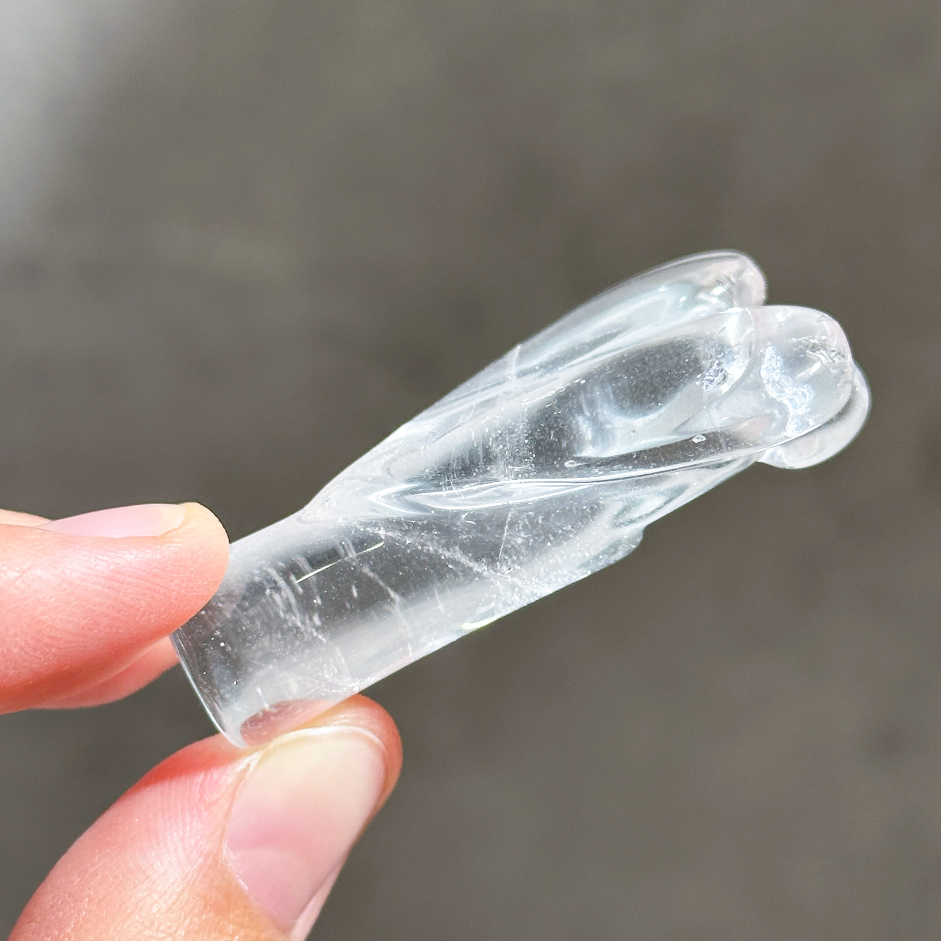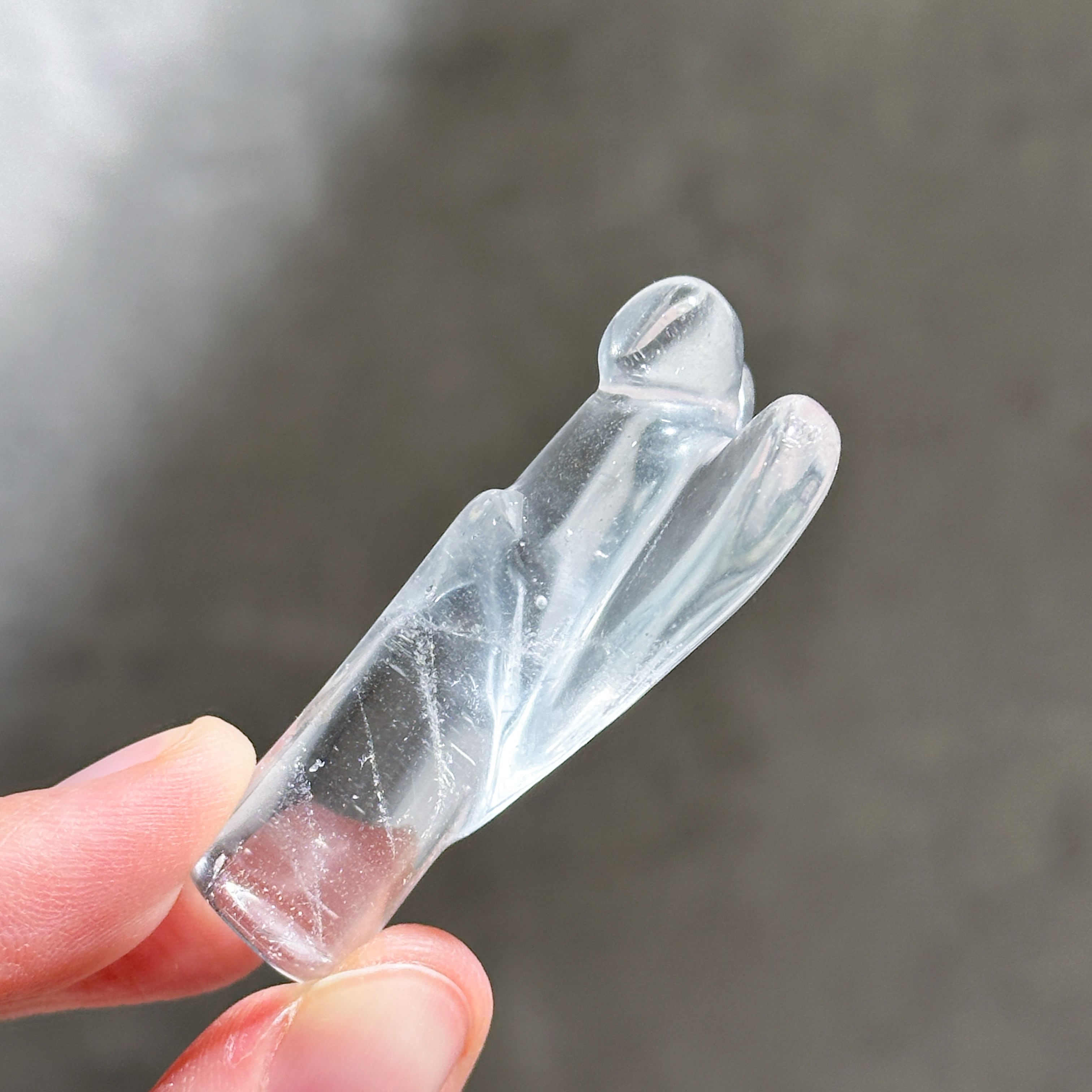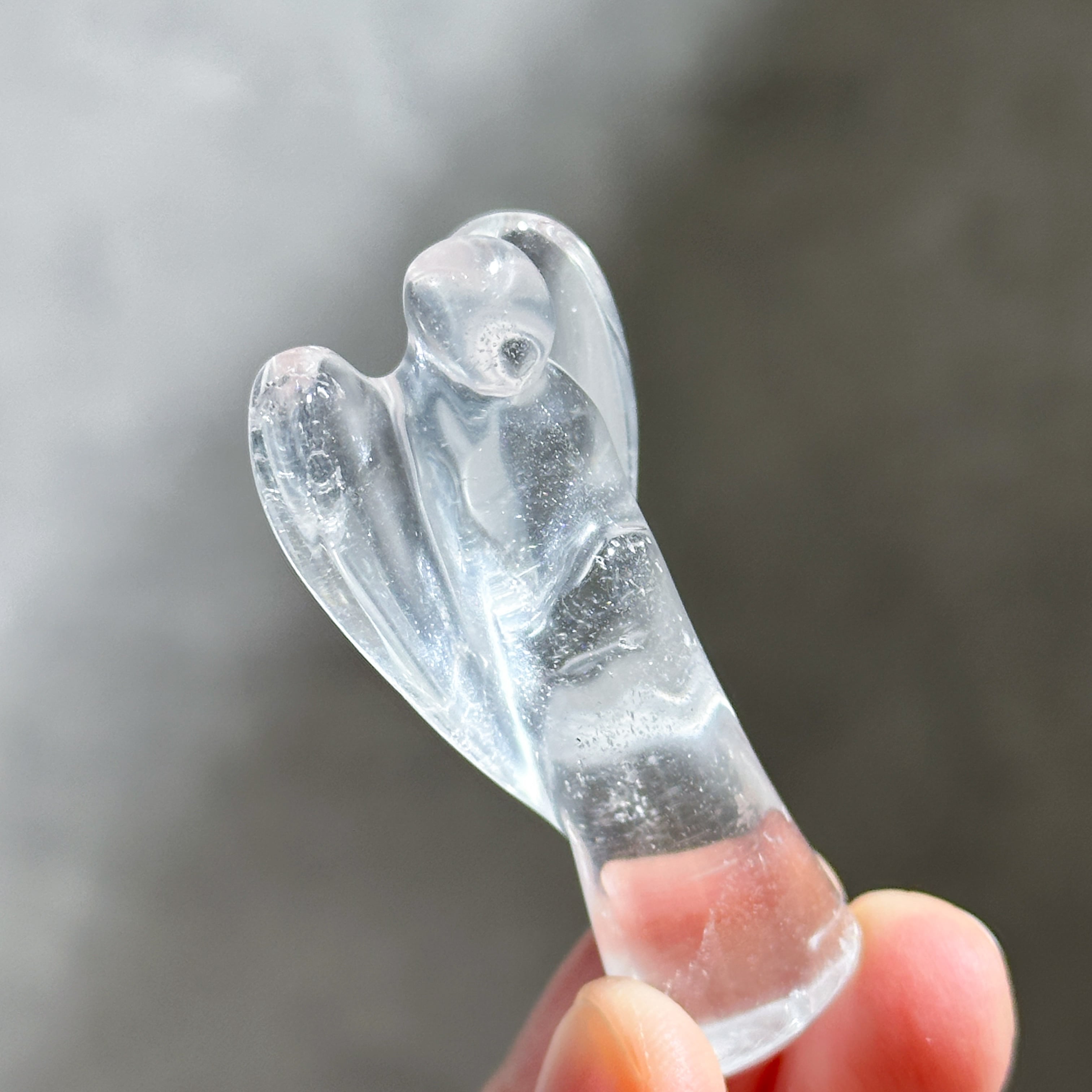 クリアクォーツを、小さなエンジェルの形に彫刻いたしました。