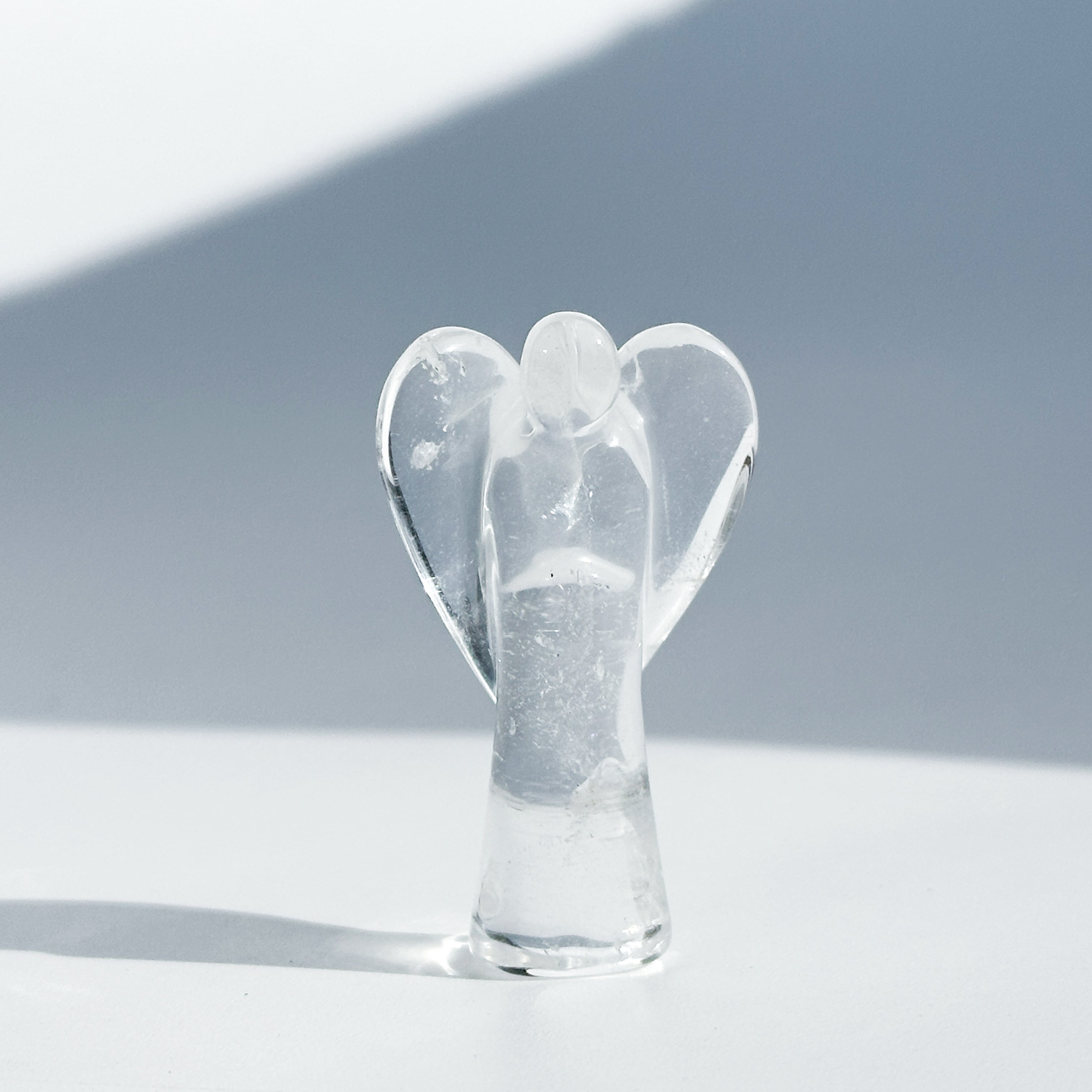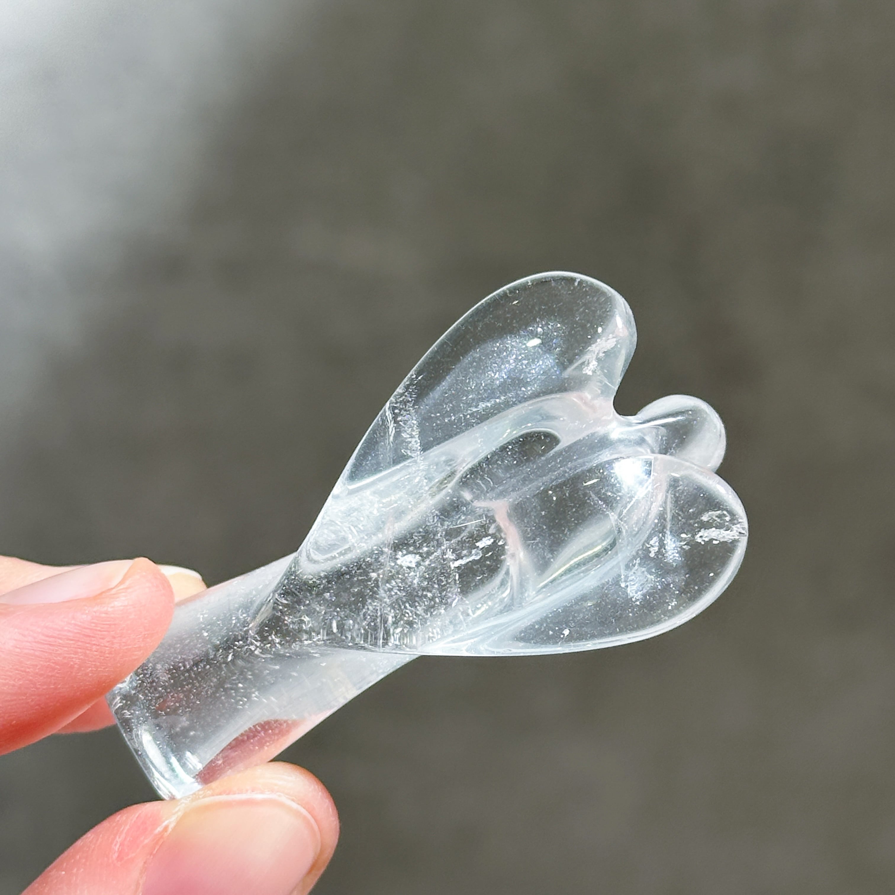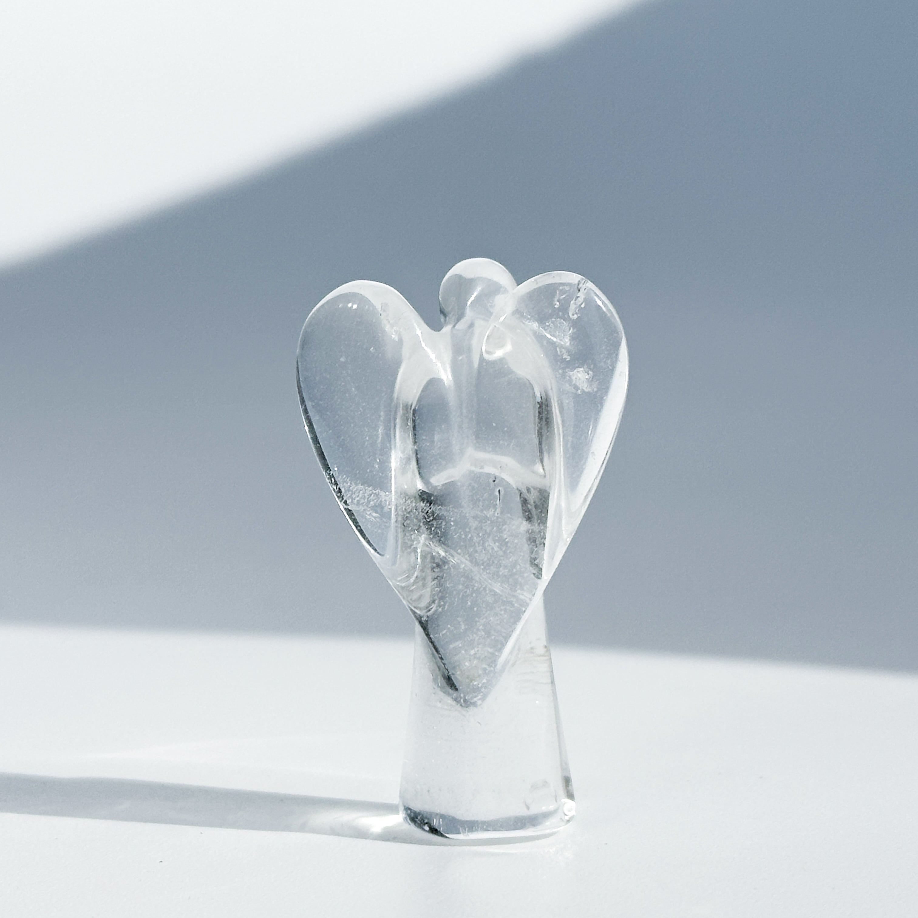 クリアクォーツを、小さなエンジェルの形に彫刻いたしました。