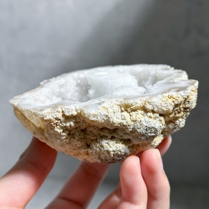 こちらの水晶のジオードは無数の細かな結晶が煌めき、水晶らしい清らかで優しい光を放っています。