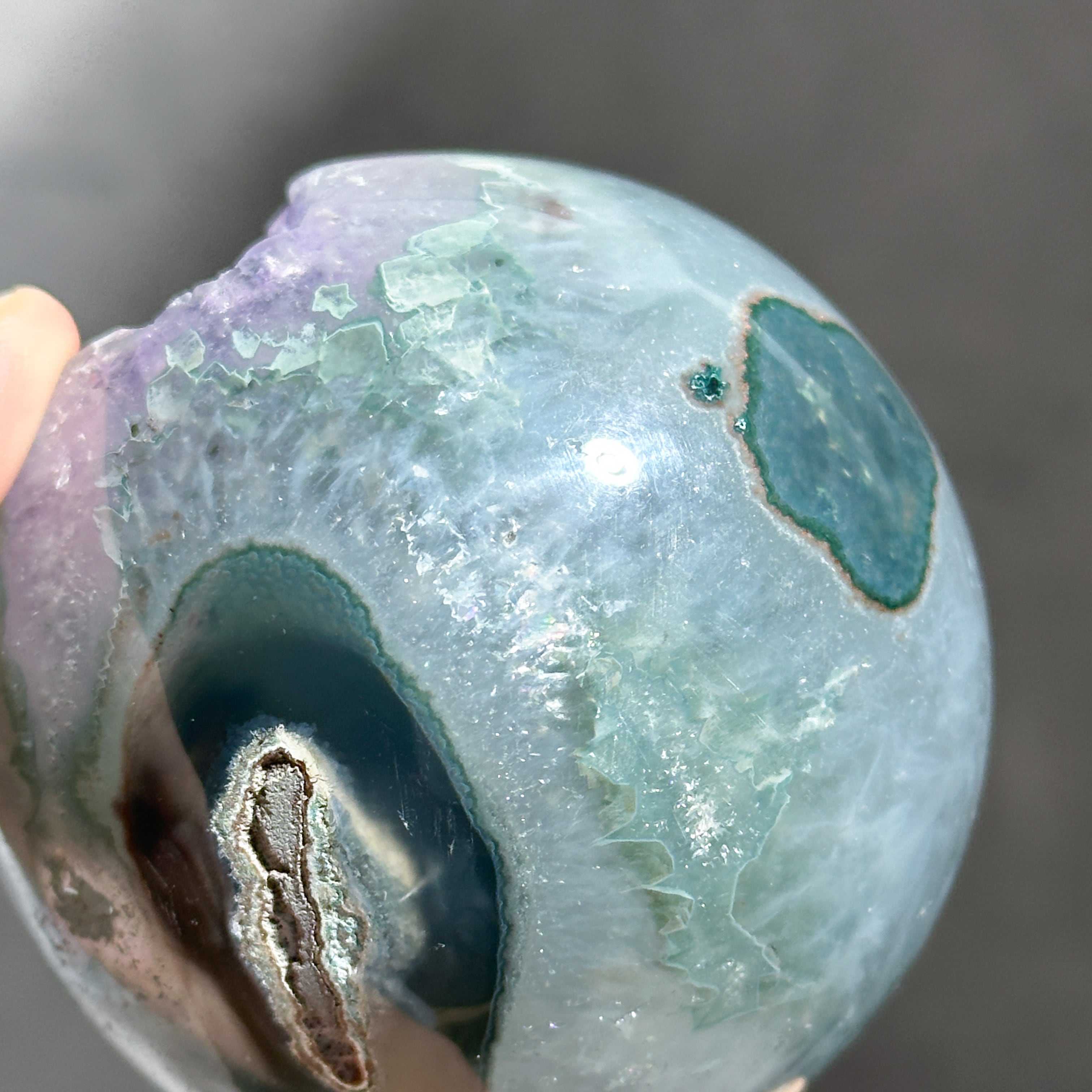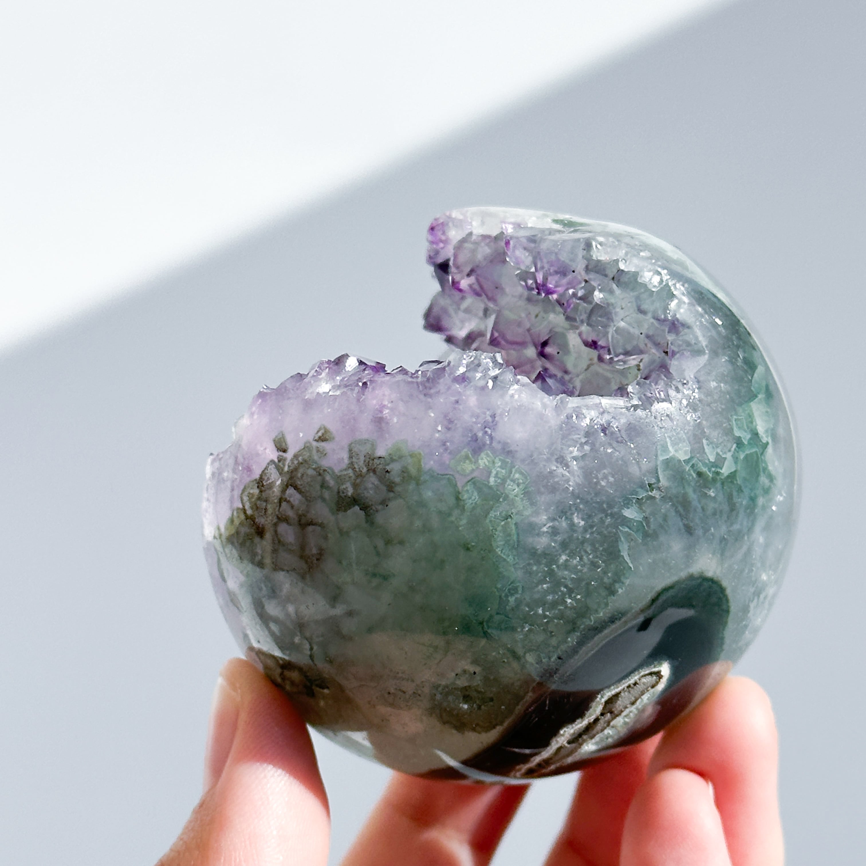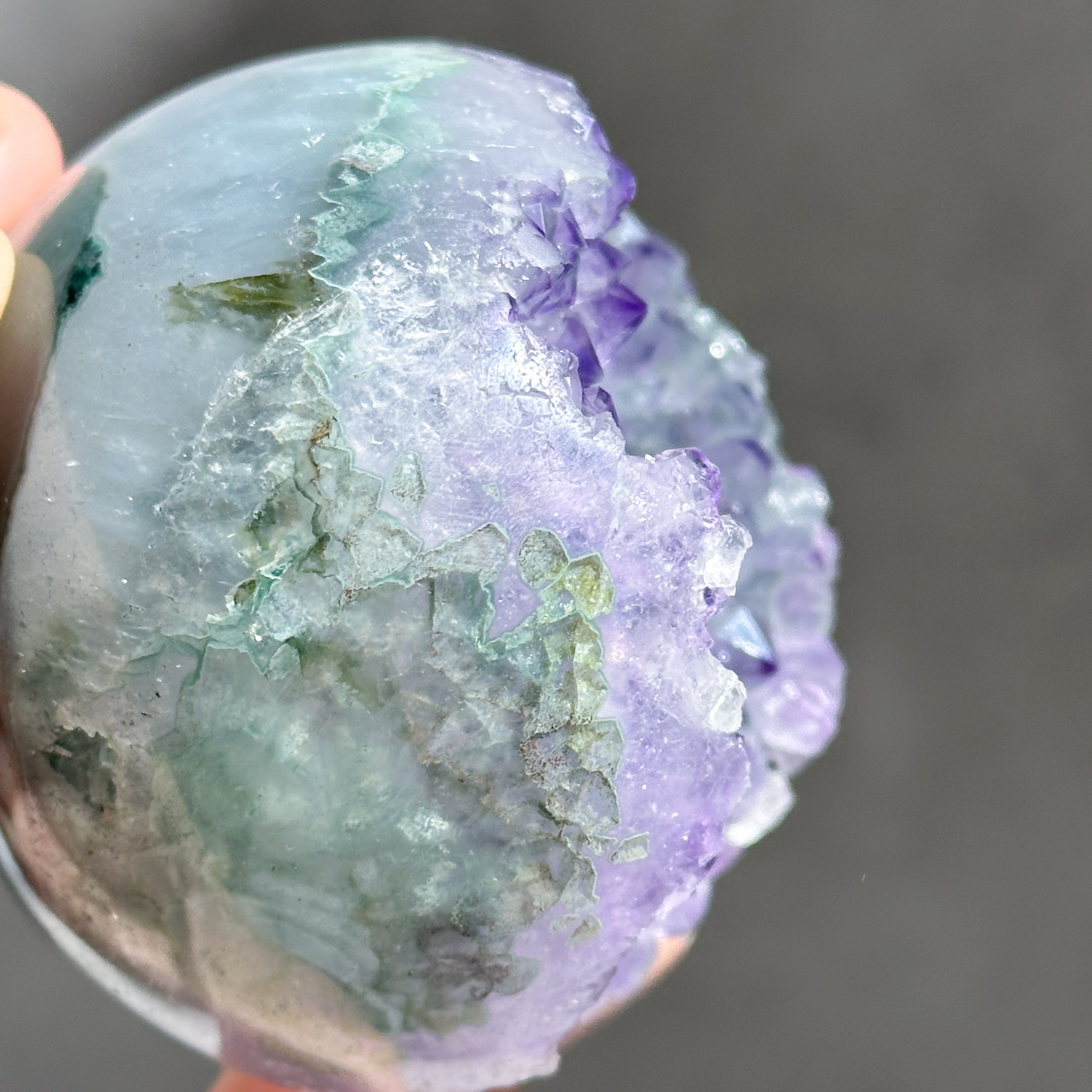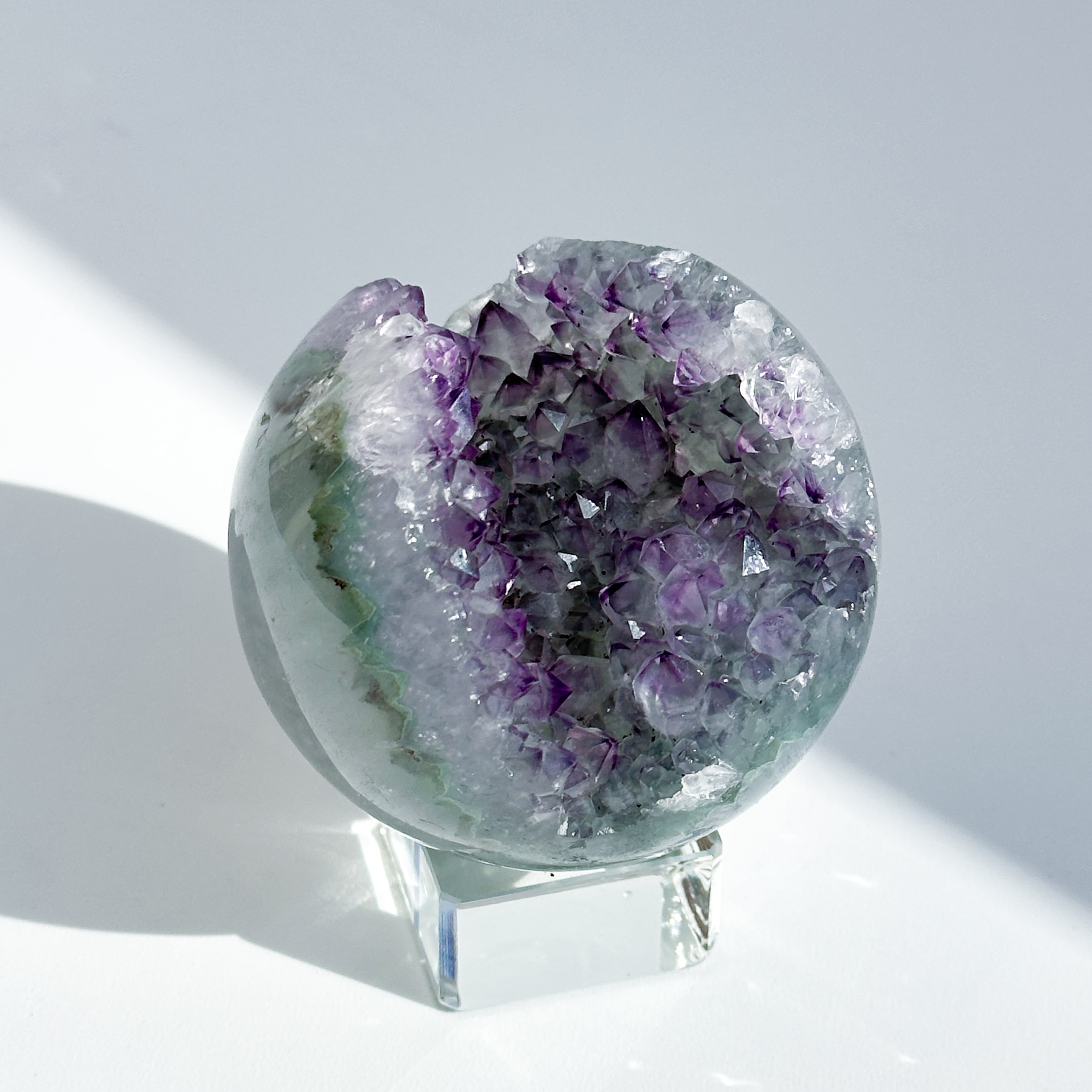 ウルグアイ産アメジストのジオードをスフィア(丸玉)に加工しました。