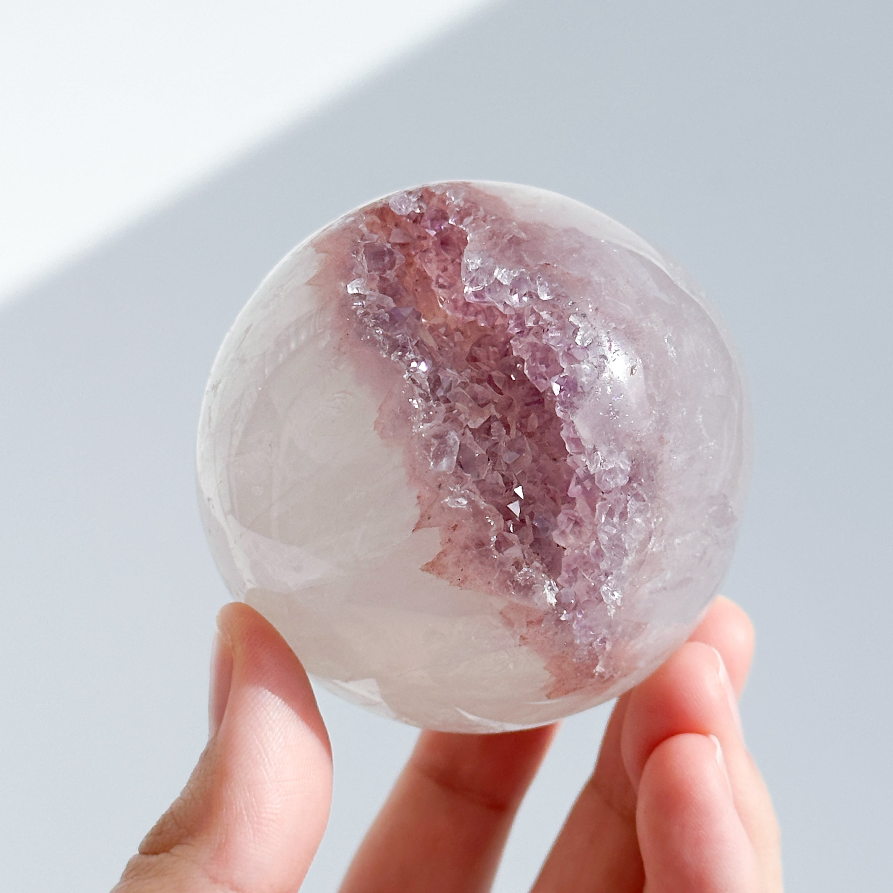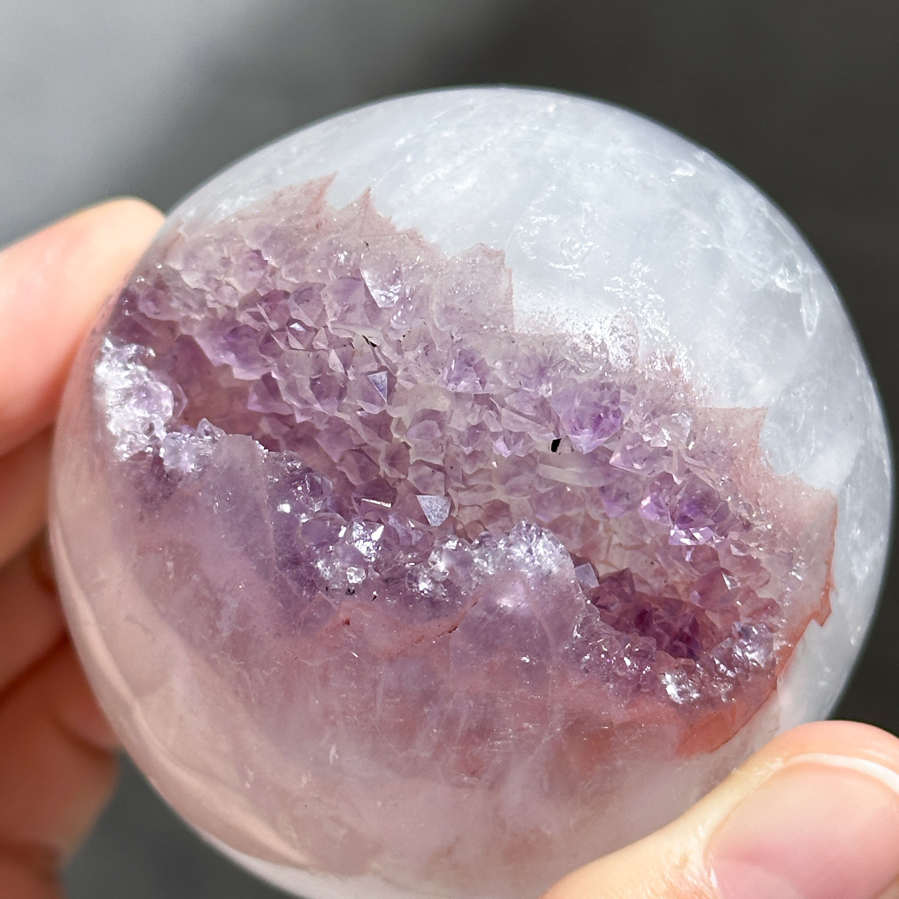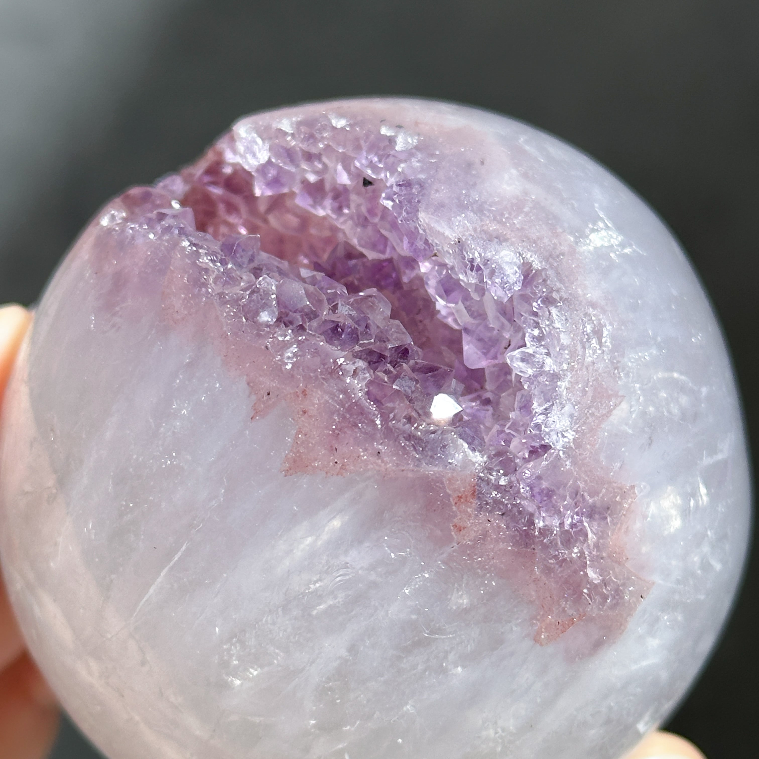 ウルグアイ産アメジストのジオードをスフィア(丸玉)に加工しました。