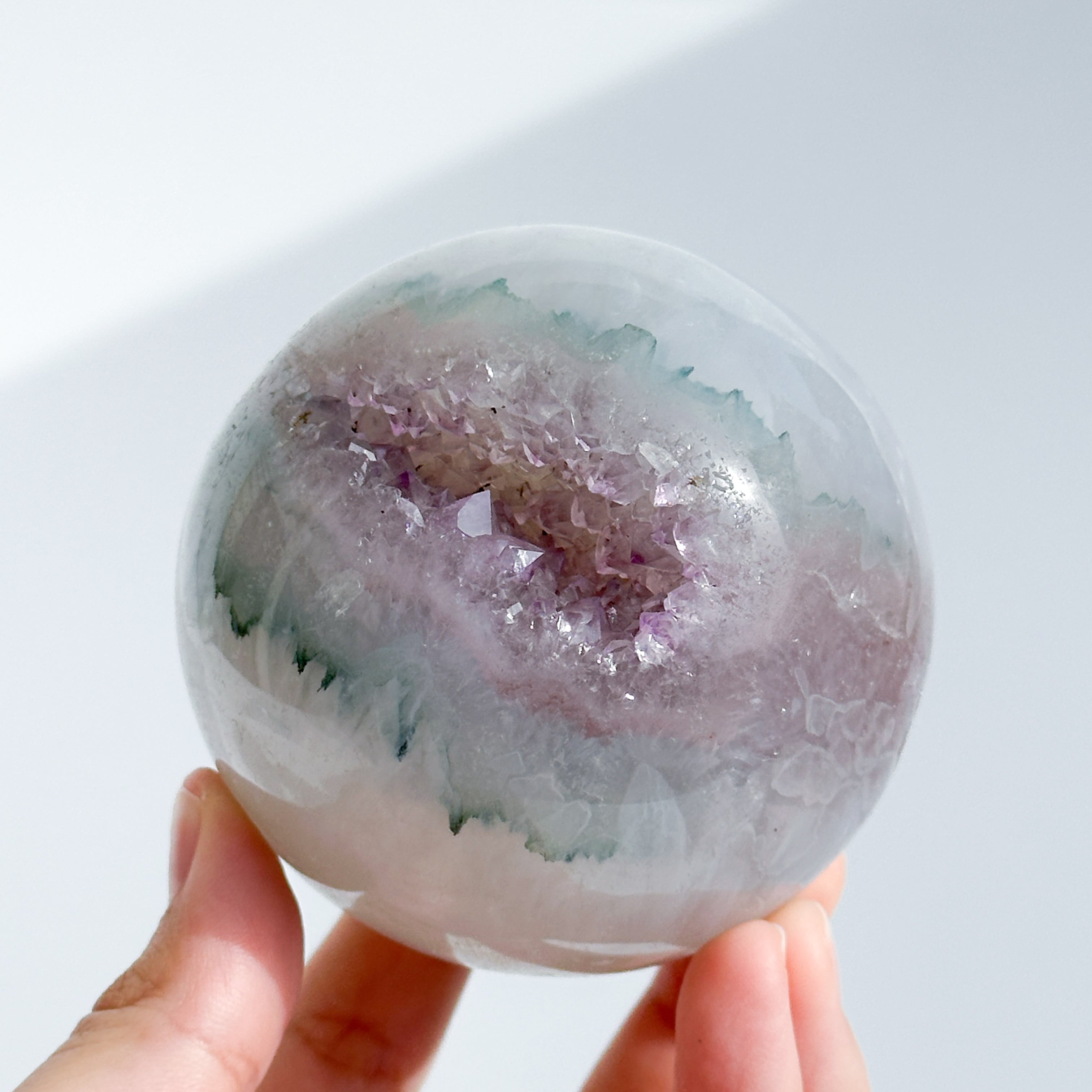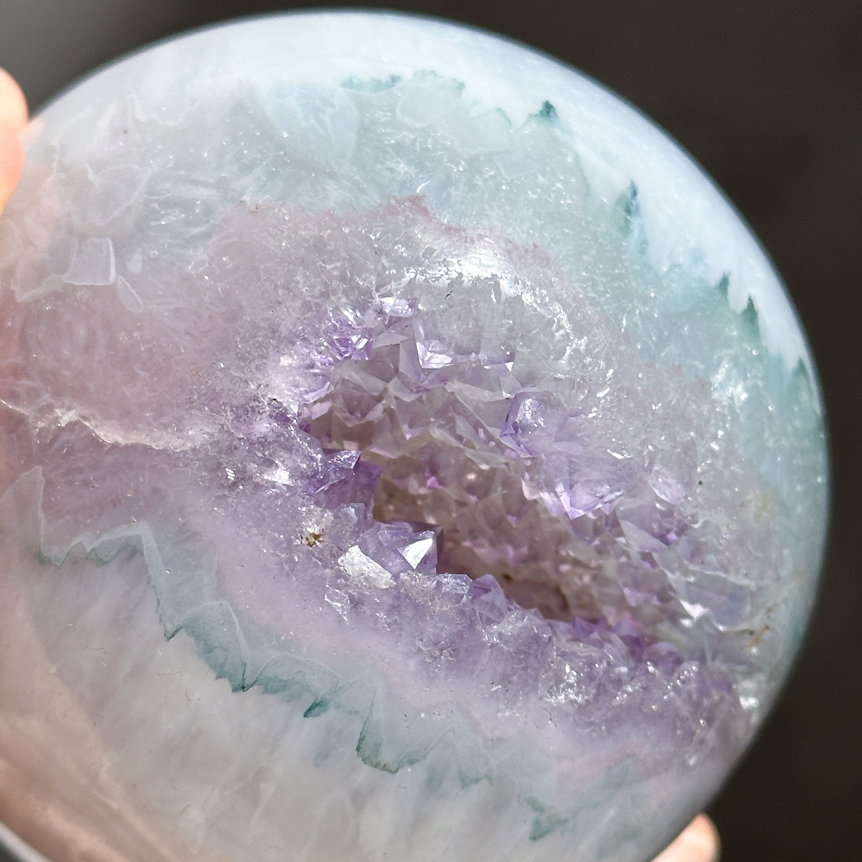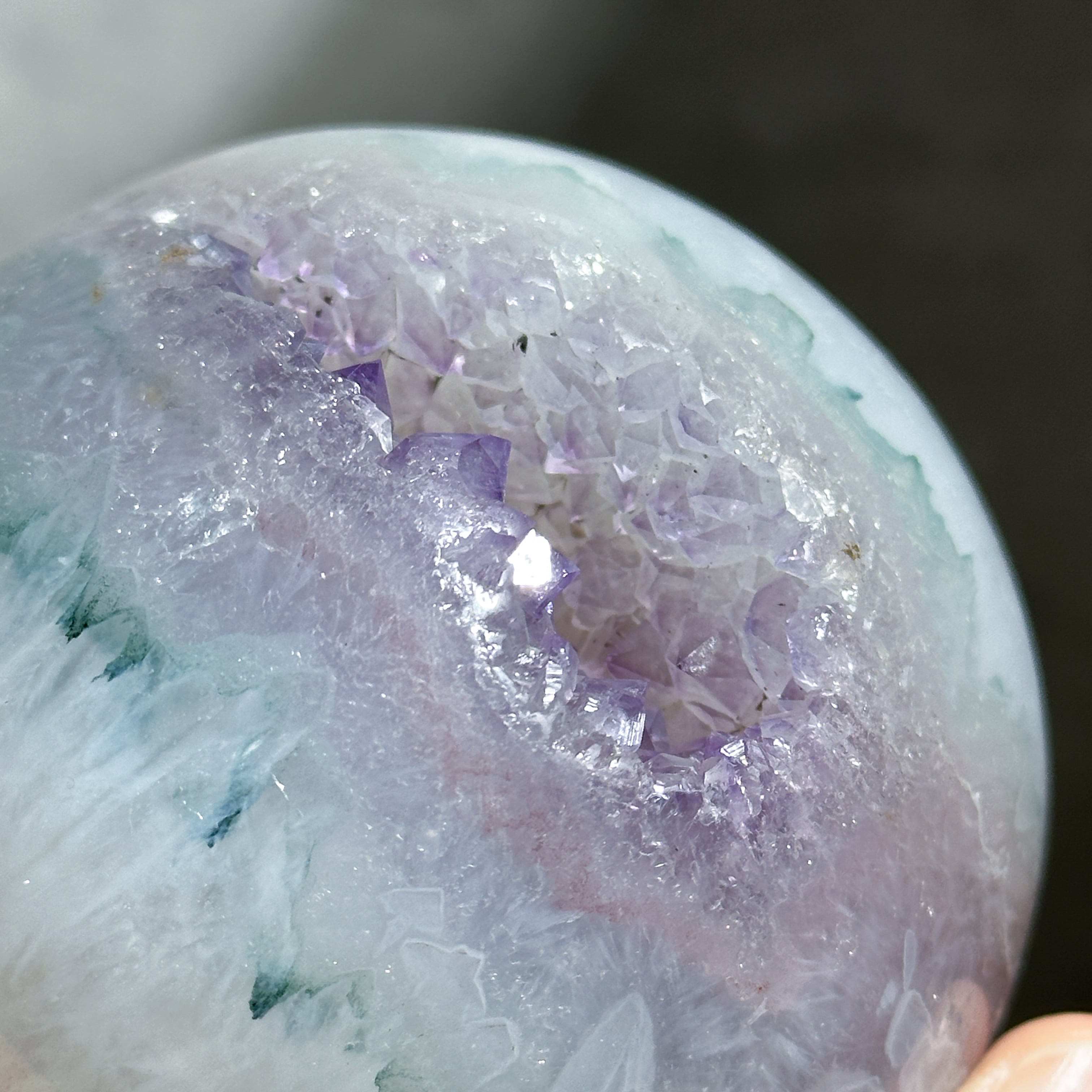 ウルグアイ産アメジストのジオードをスフィア(丸玉)に加工しました。