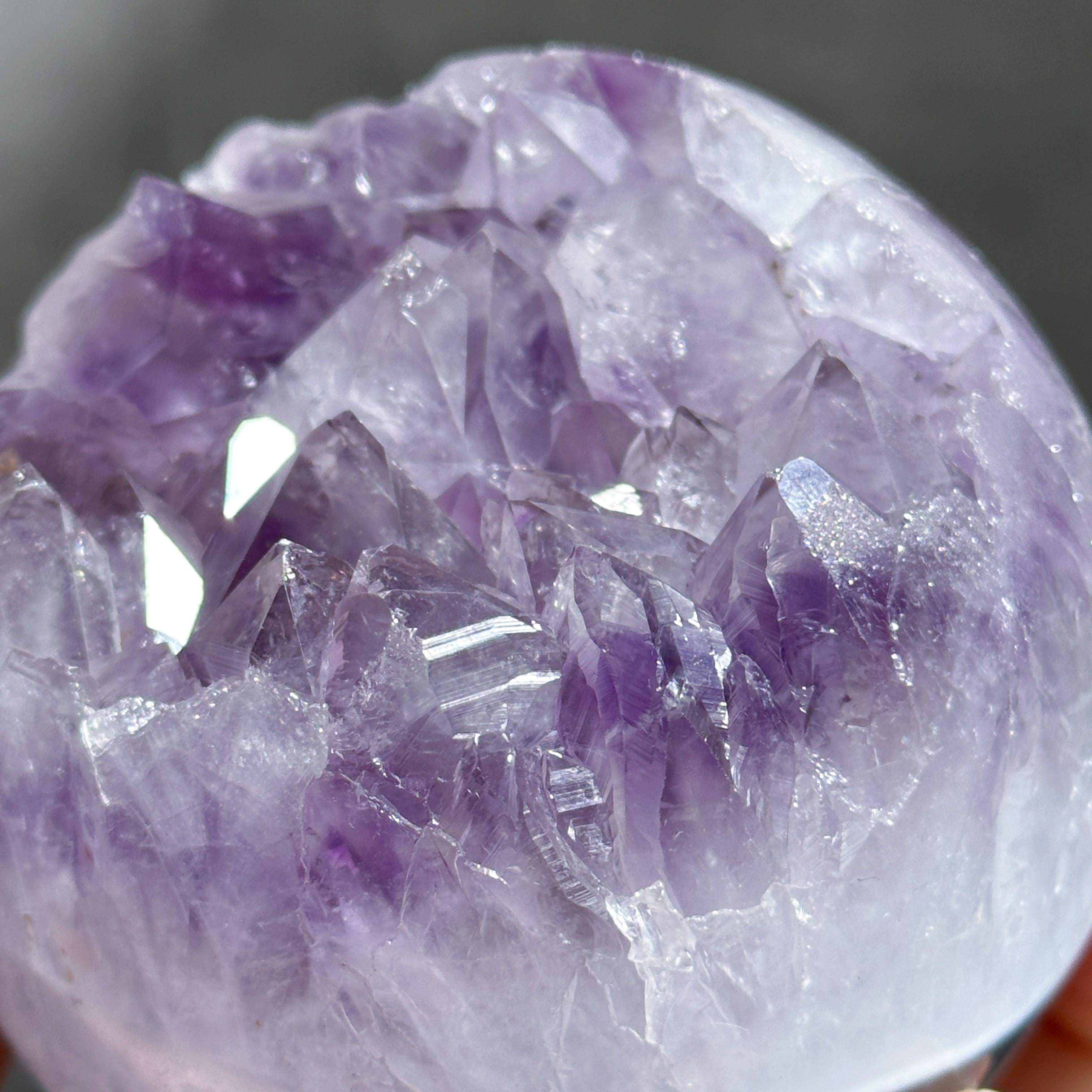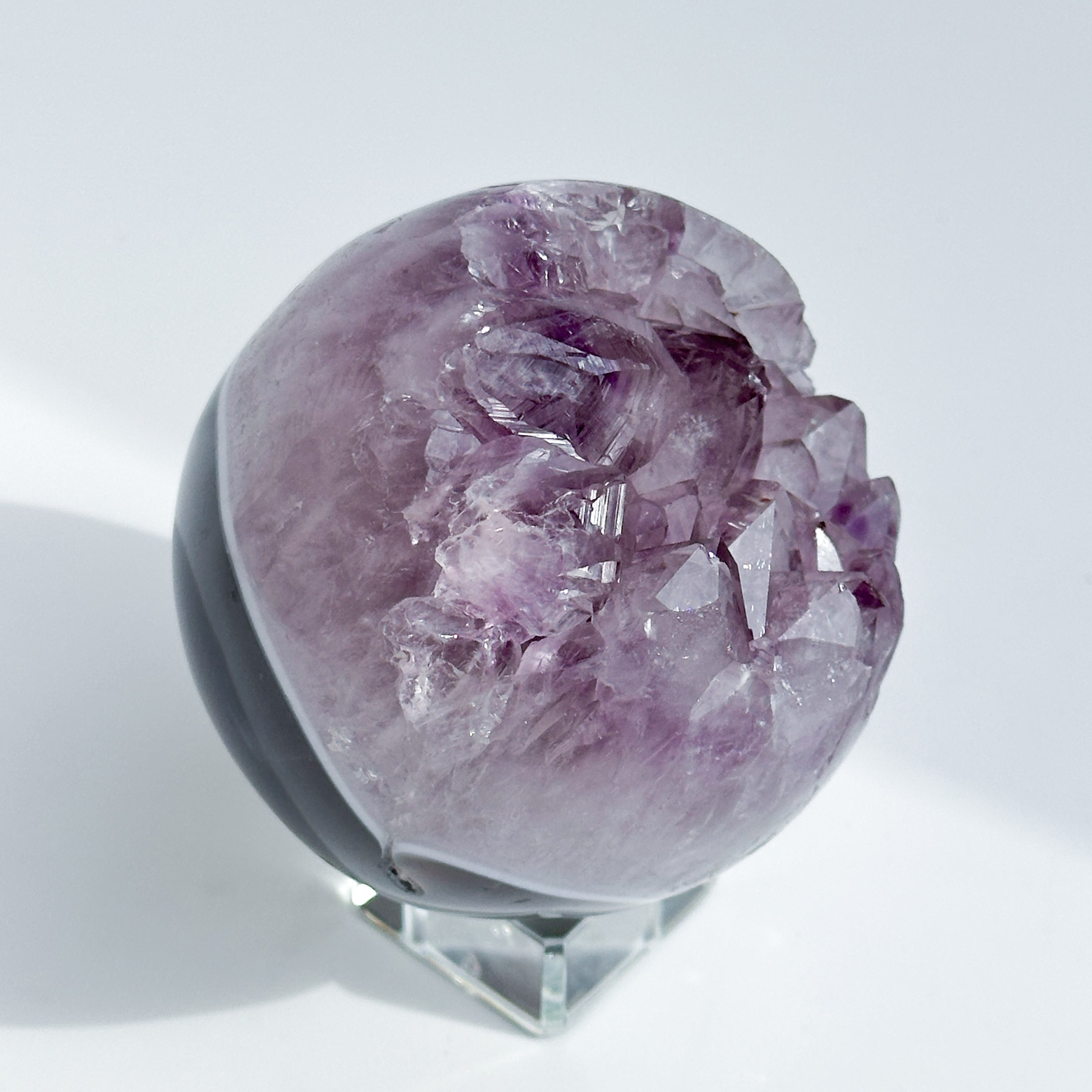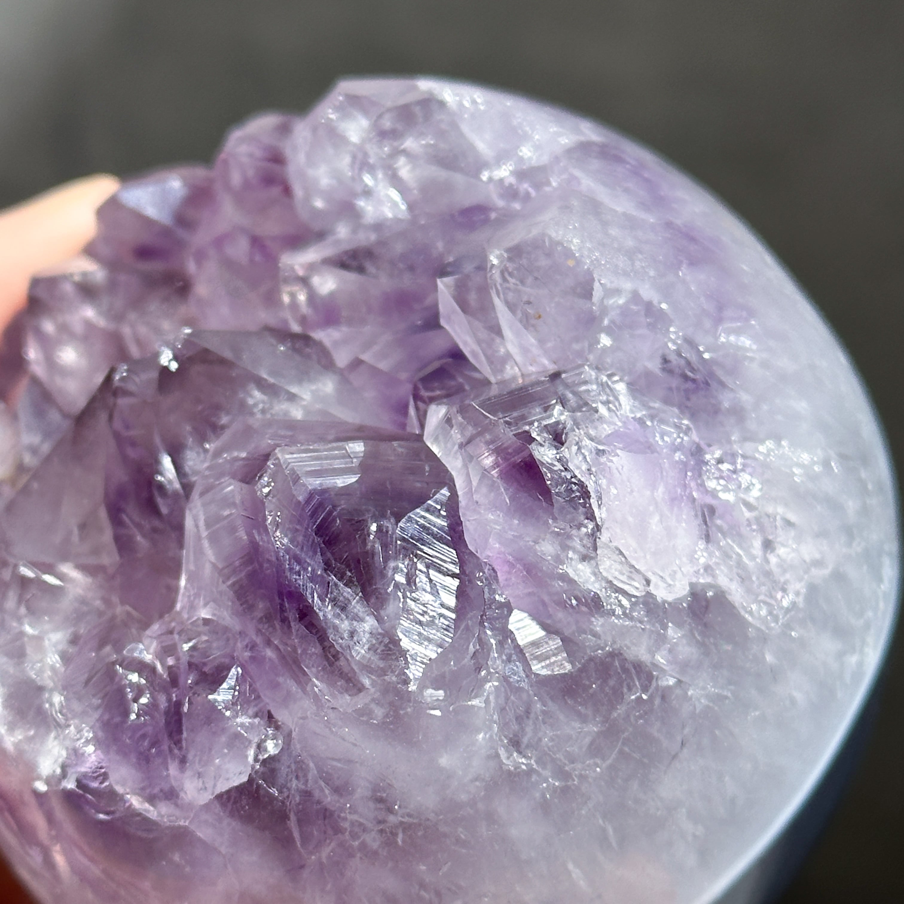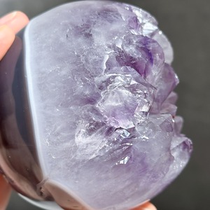 ウルグアイ産アメジストのジオードをスフィア(丸玉)に加工しました。
