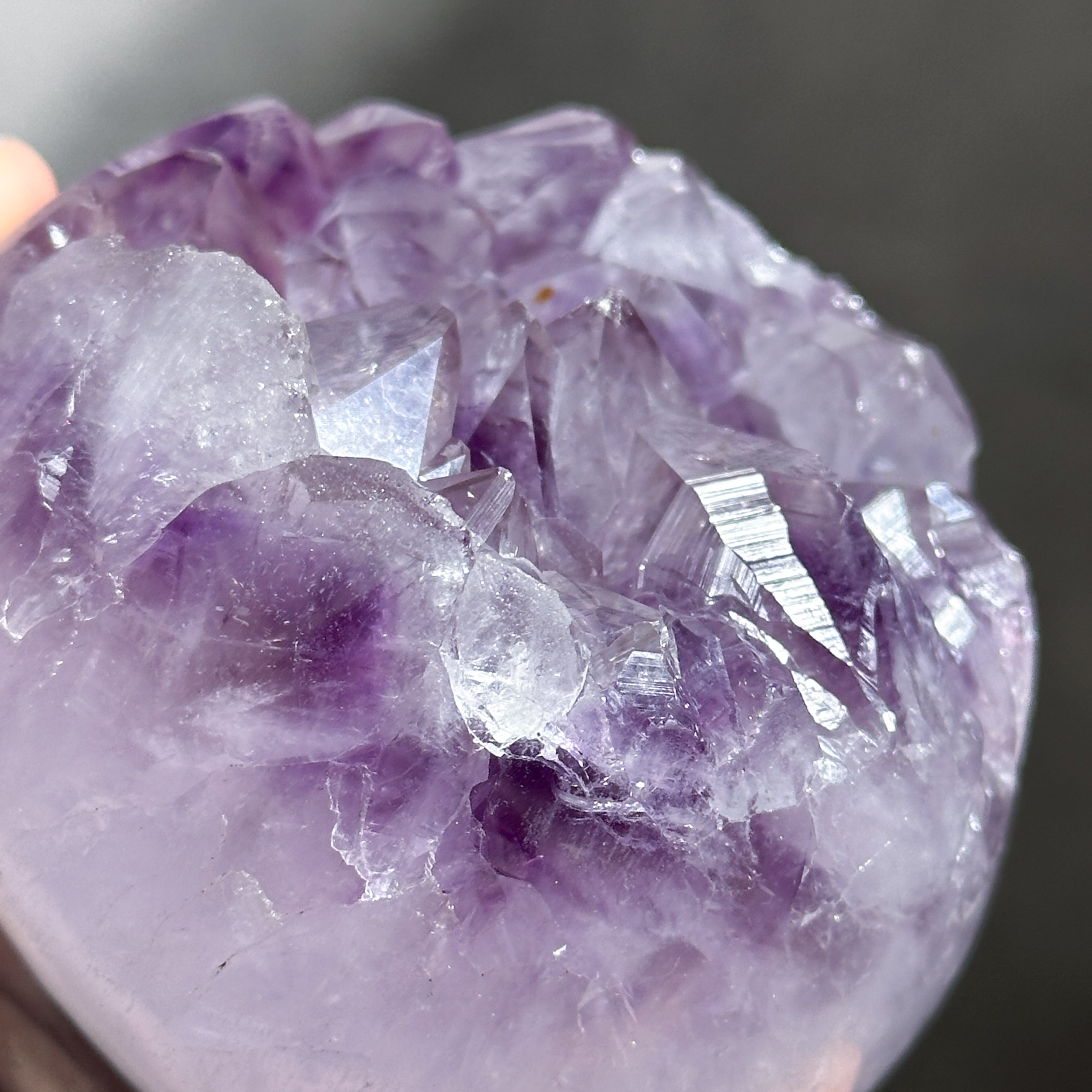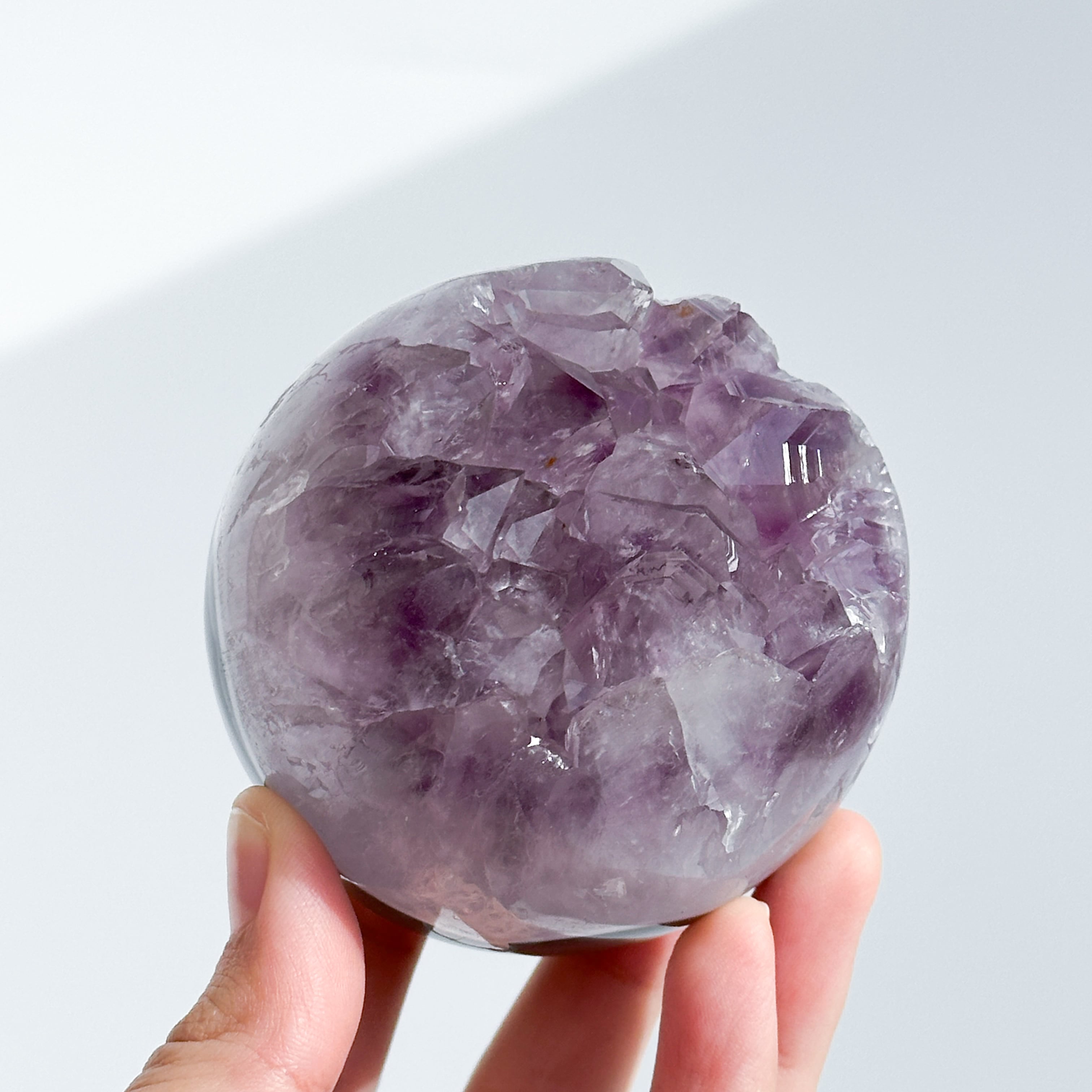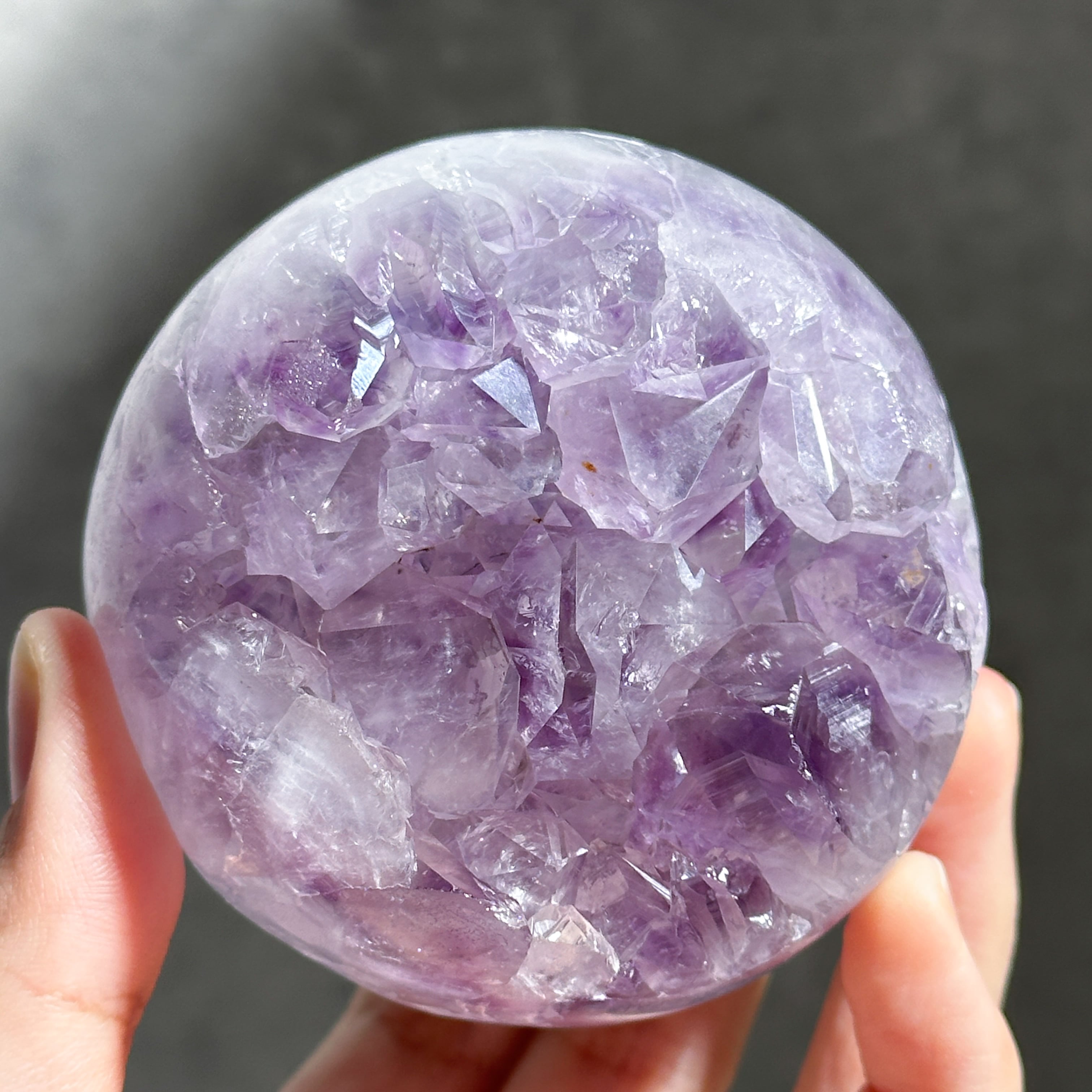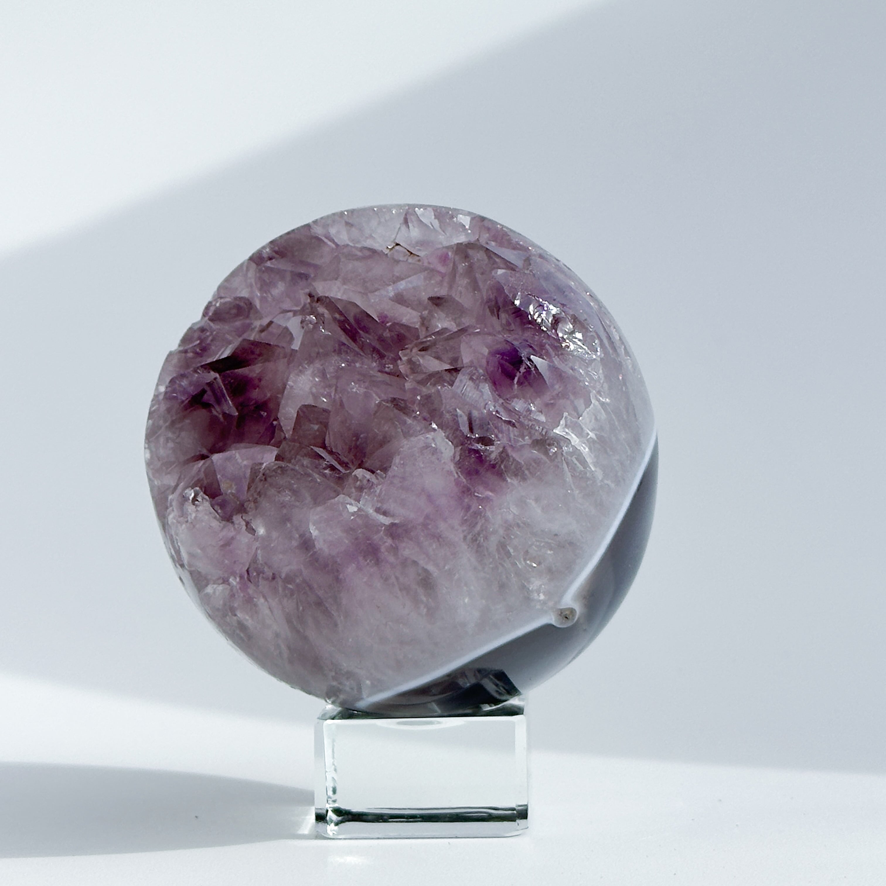 ウルグアイ産アメジストのジオードをスフィア(丸玉)に加工しました。