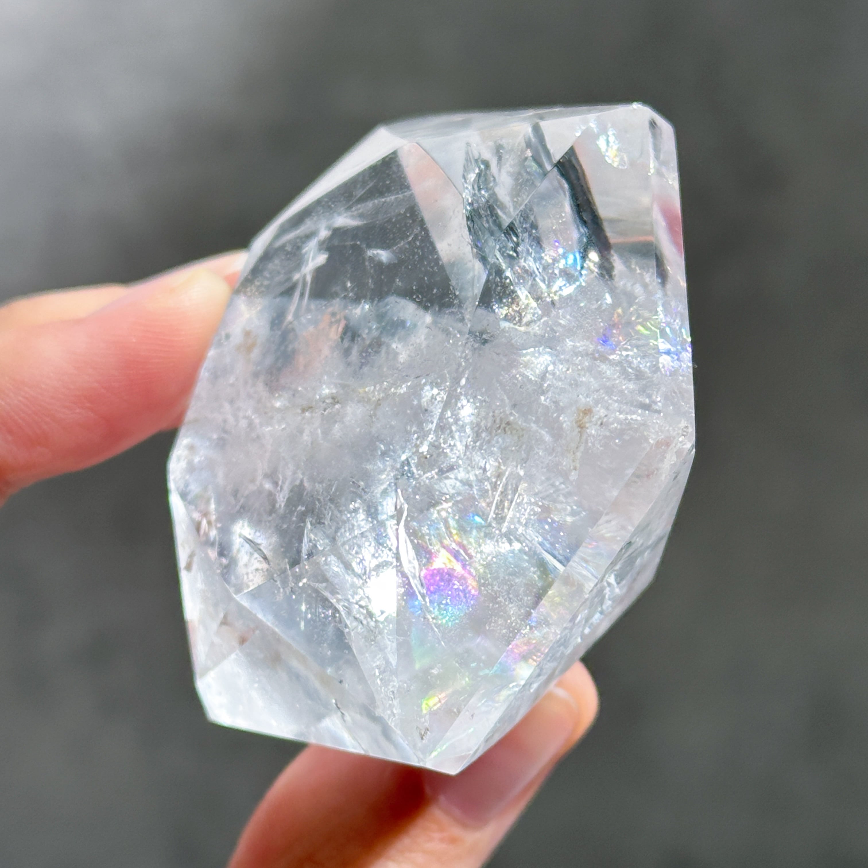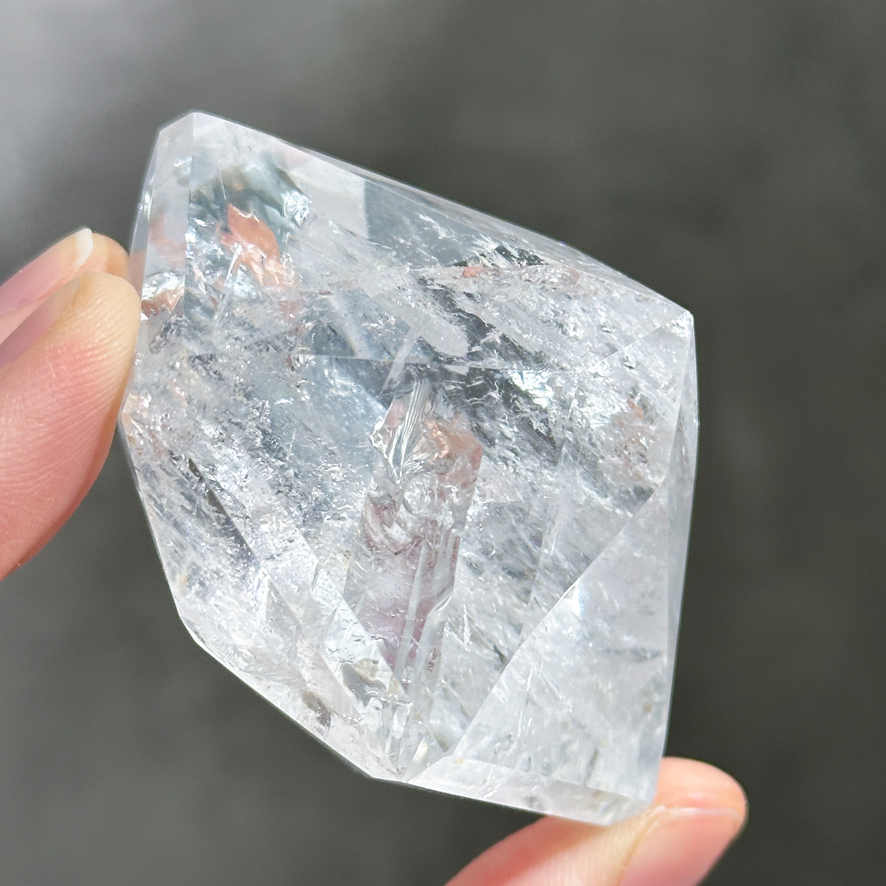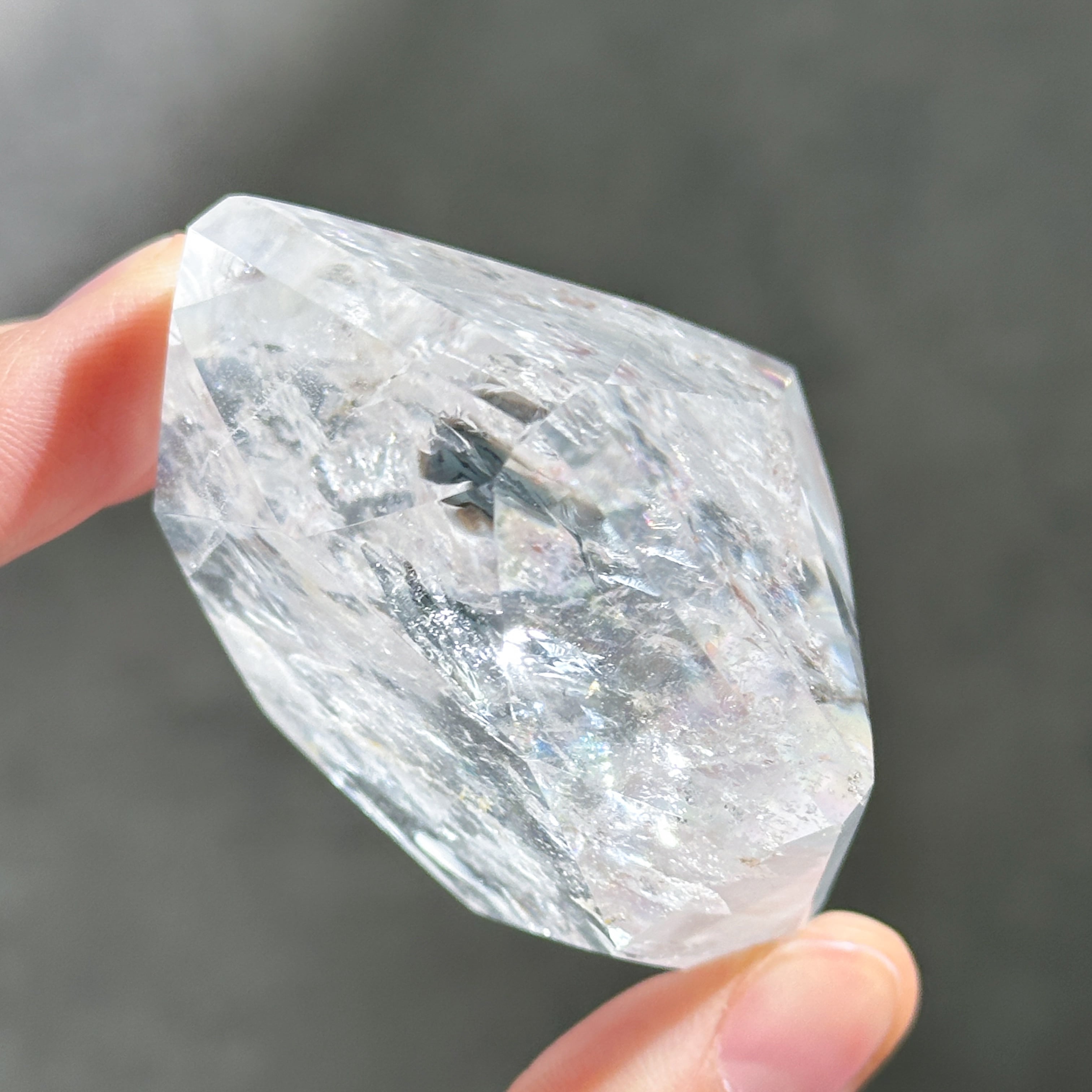 ブラジル・ミナスジェライス産のクリアクォーツを、ダイヤモンド型に研磨したものです。