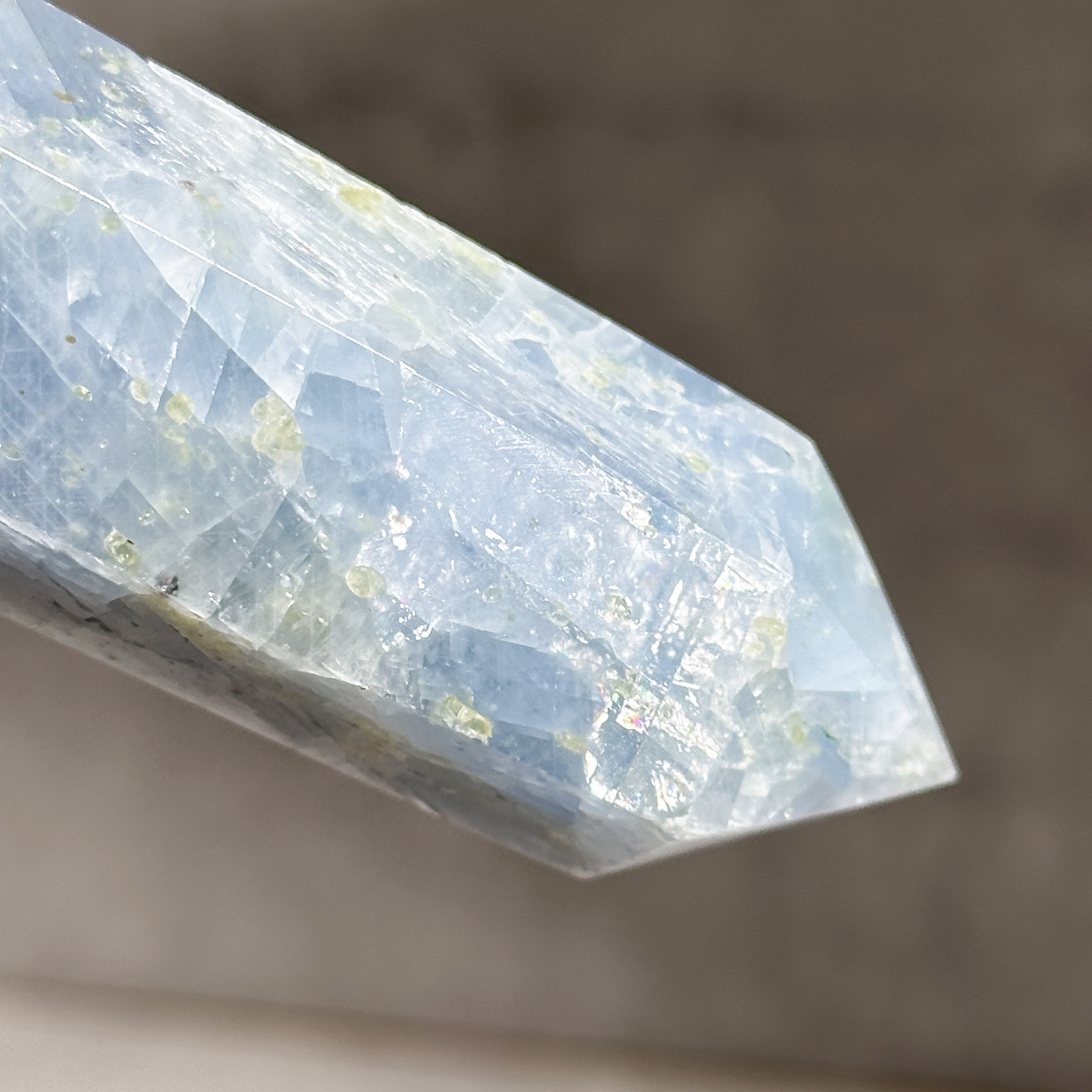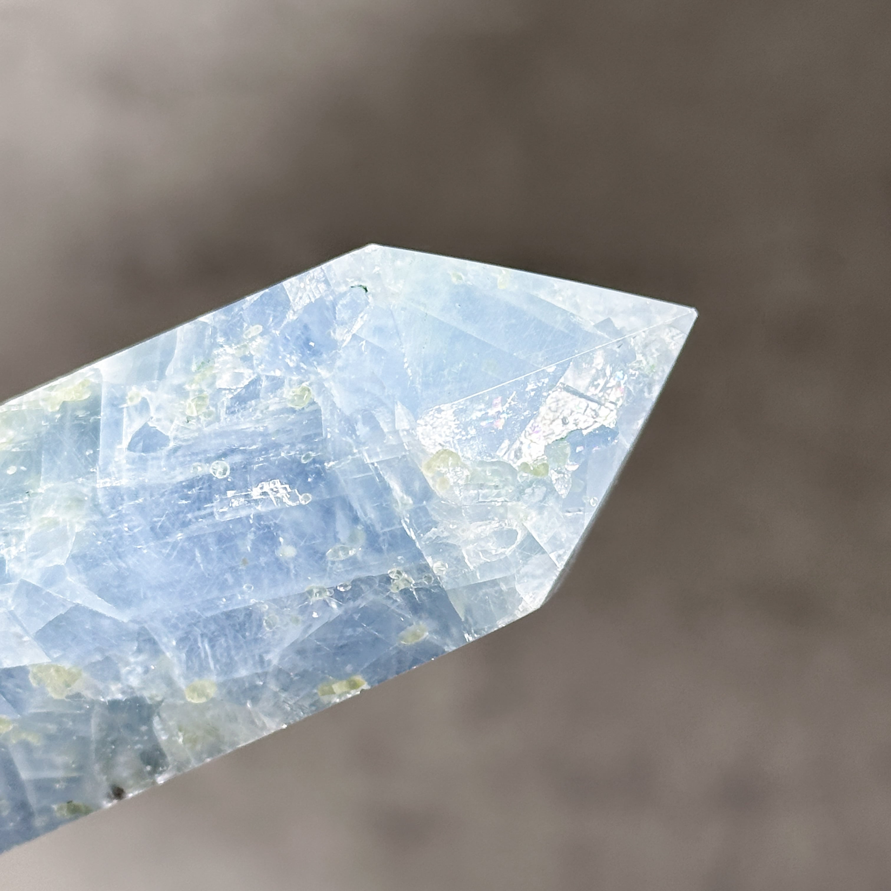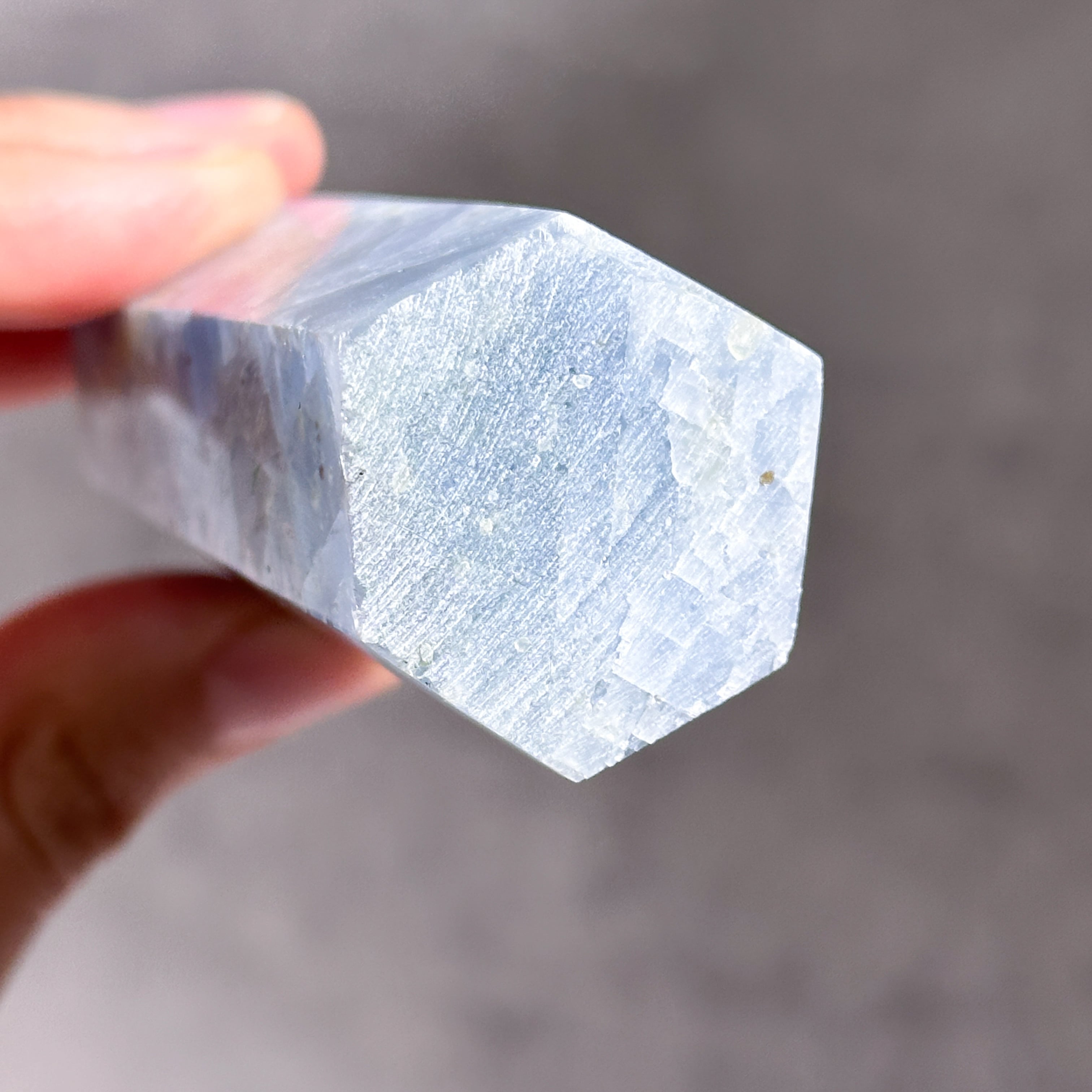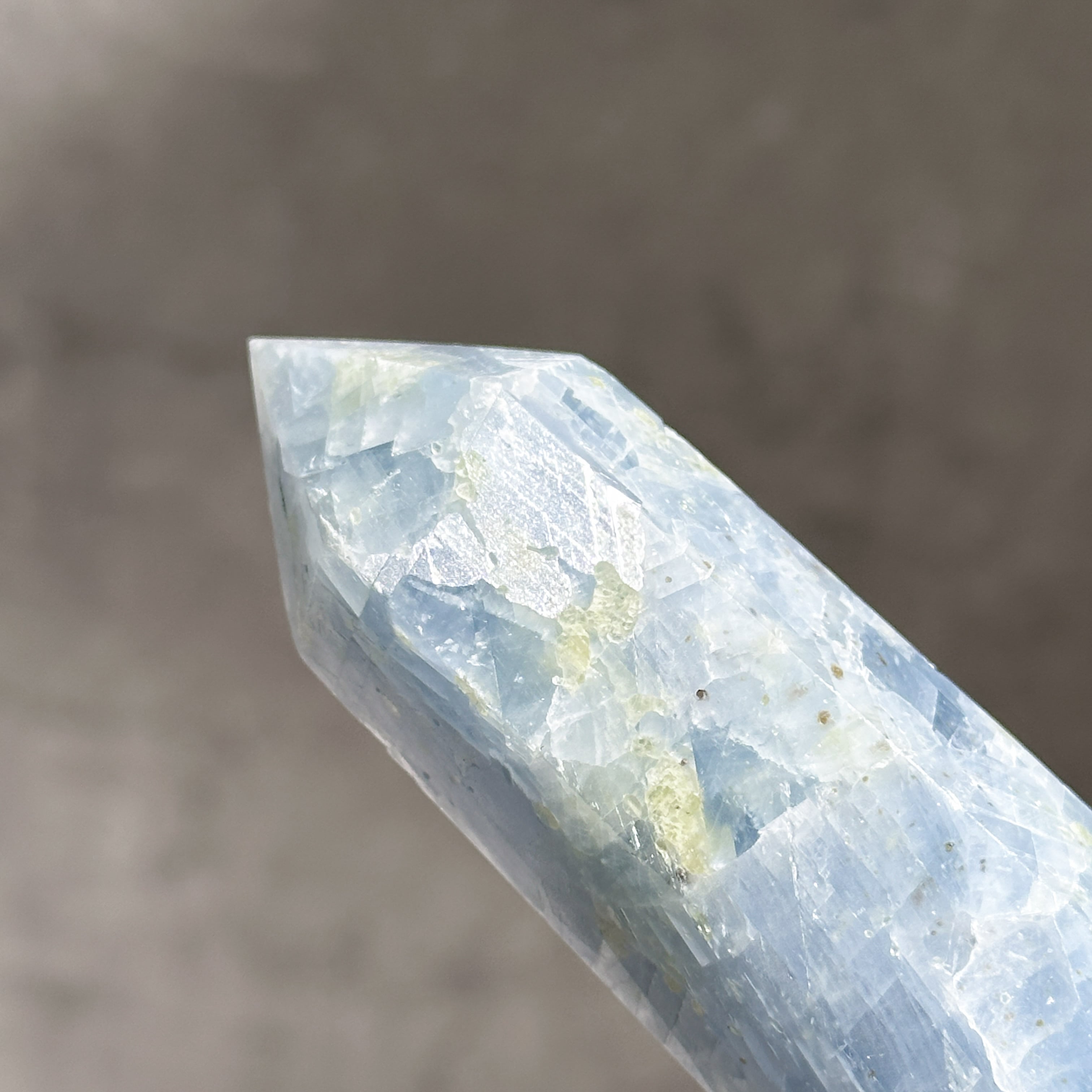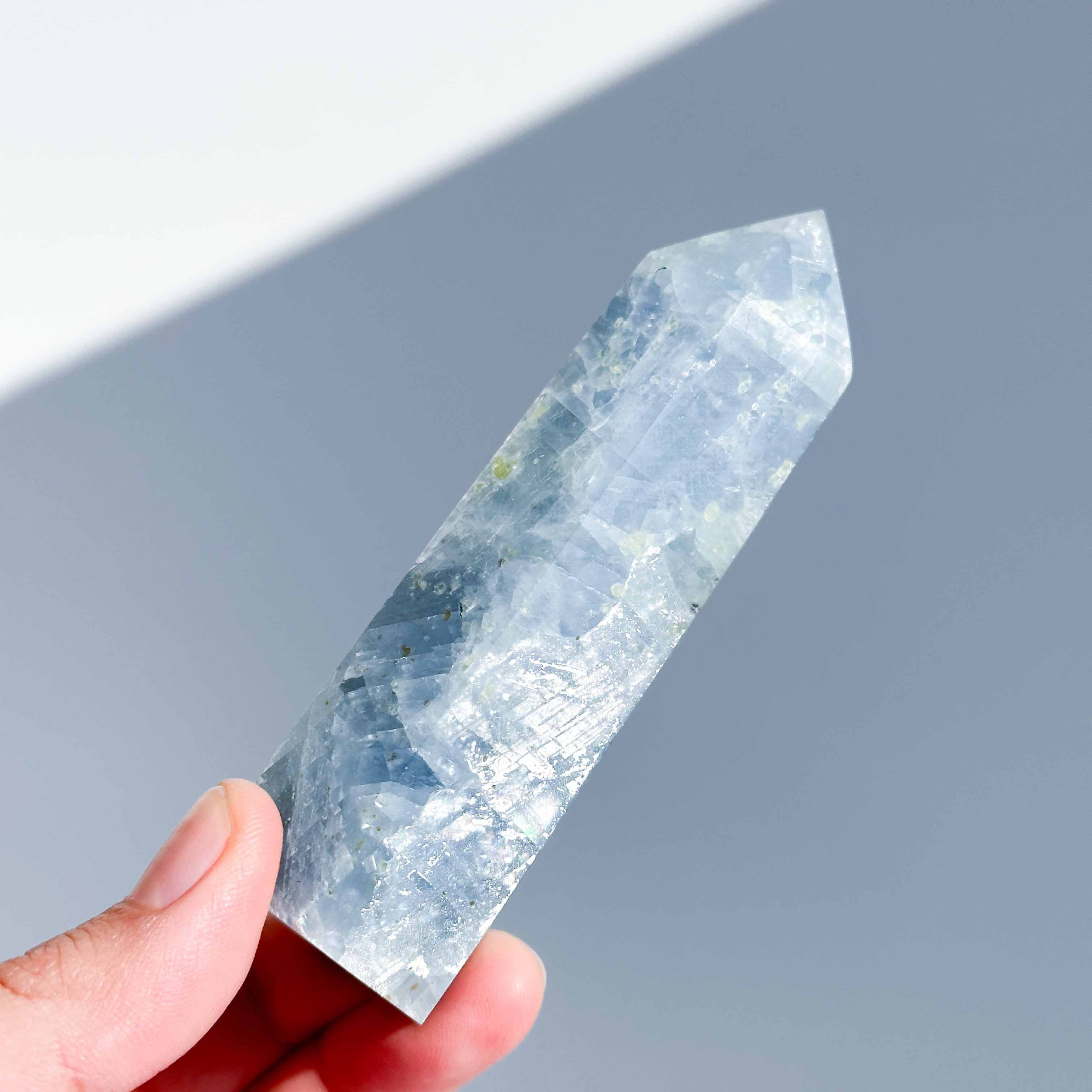 澄み渡るライトブルーの天然石、セレスタイトをタワー型に研磨しました。