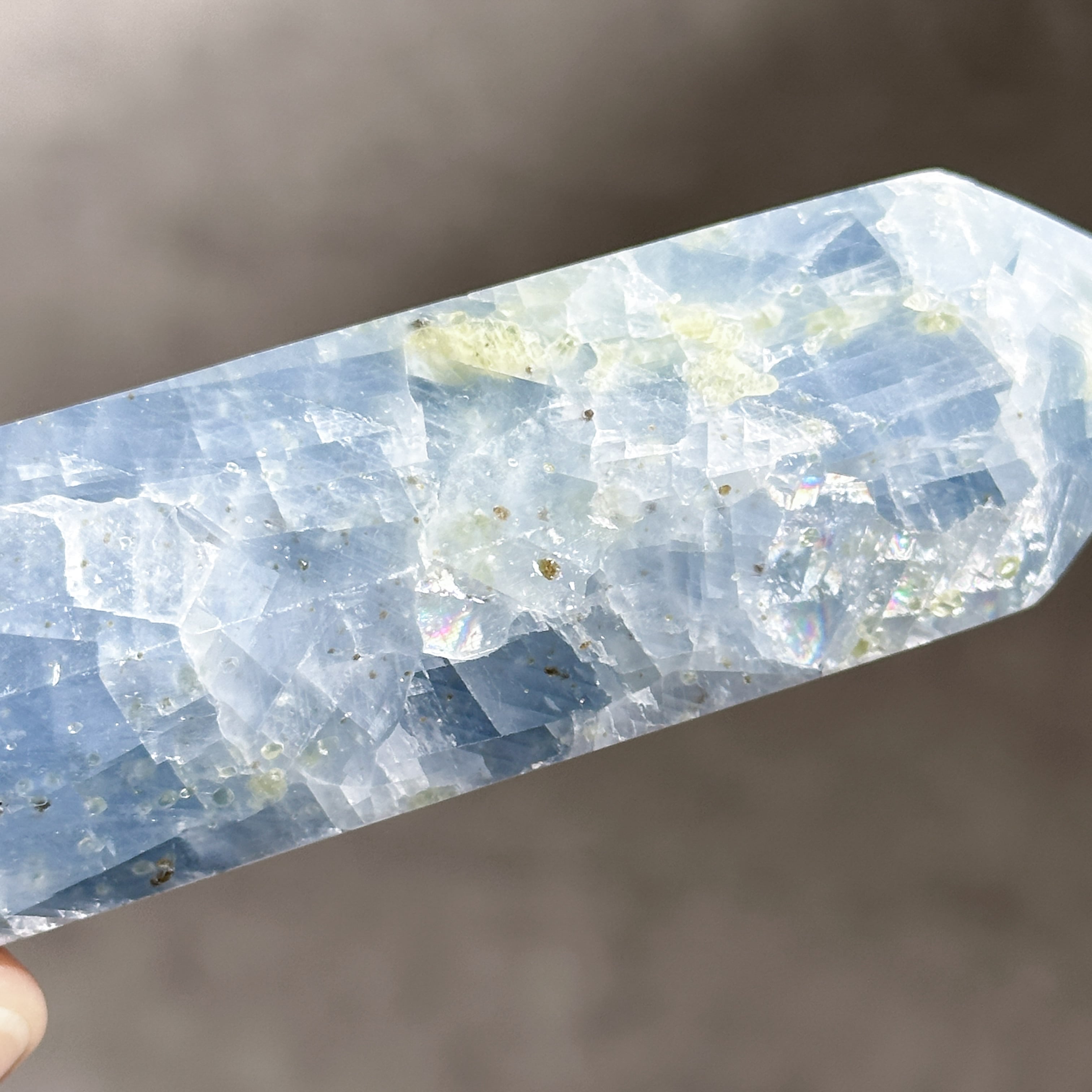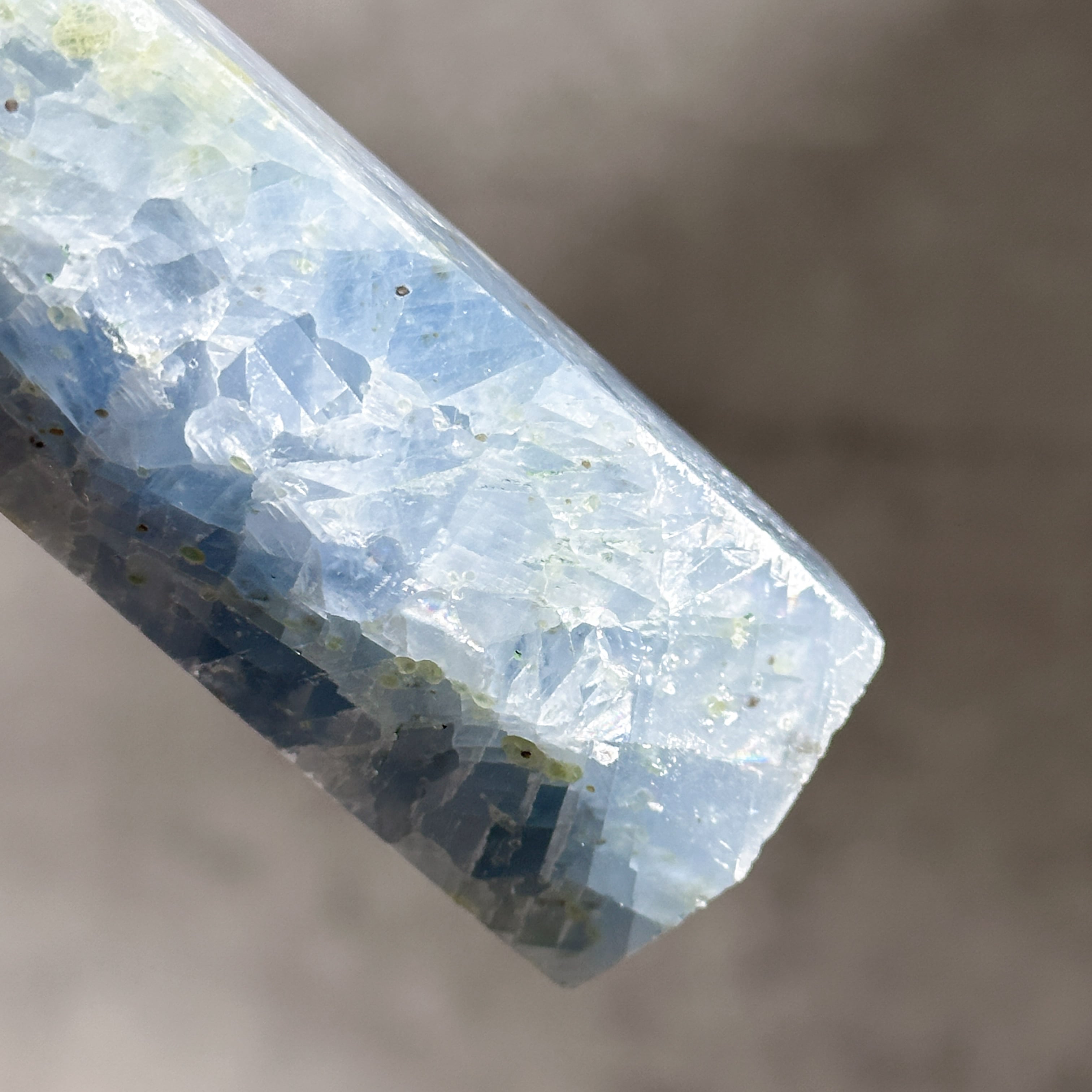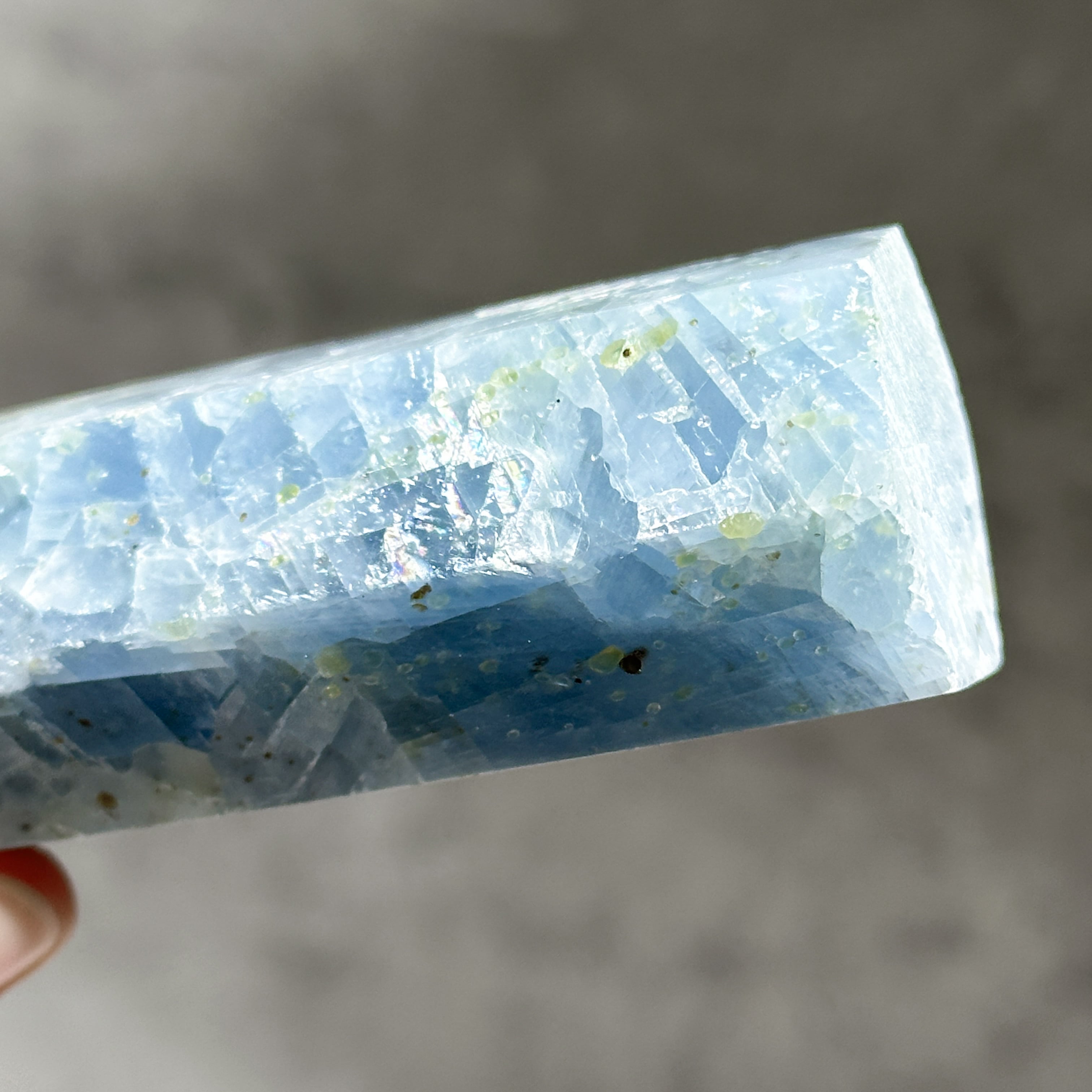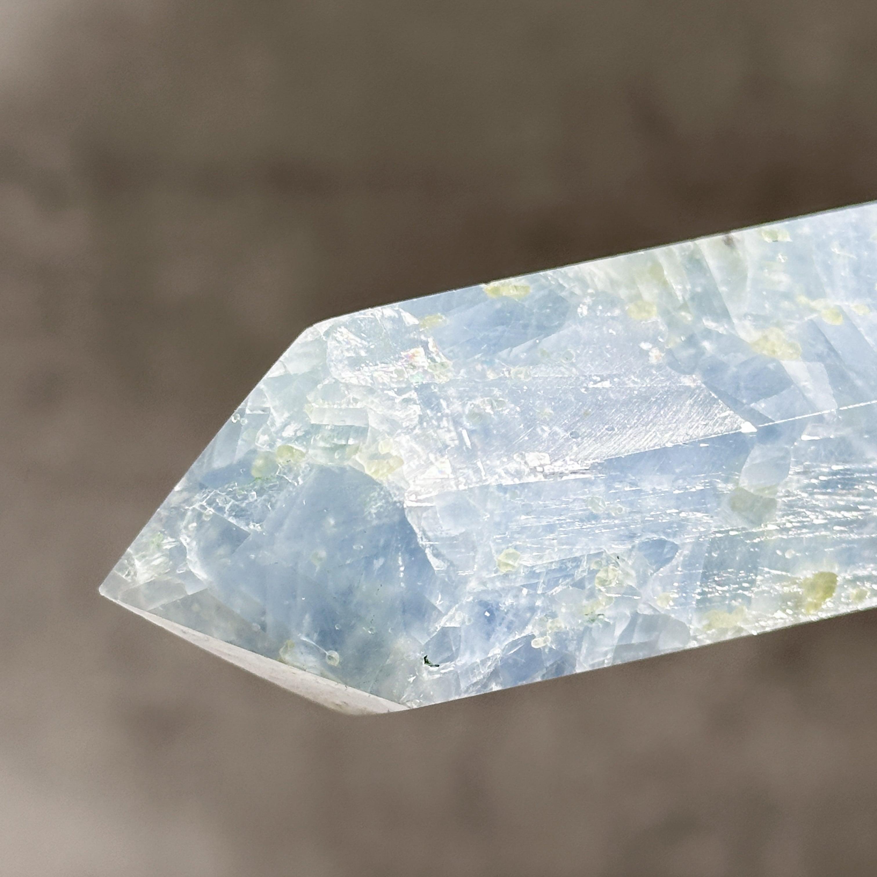 澄み渡るライトブルーの天然石、セレスタイトをタワー型に研磨しました。