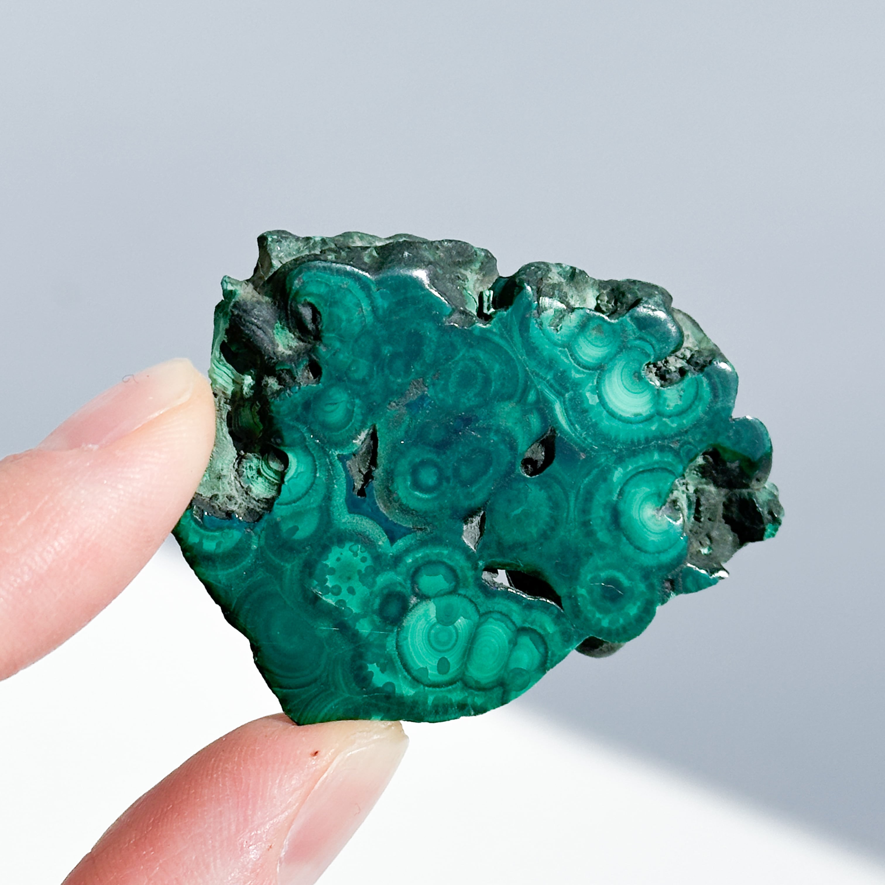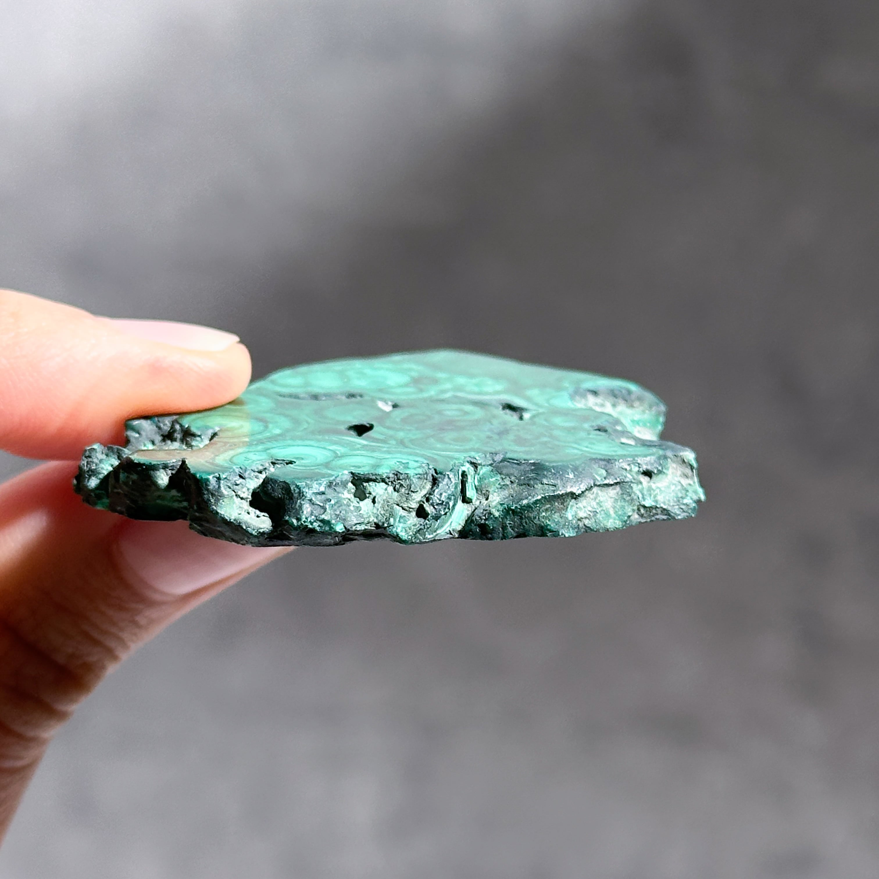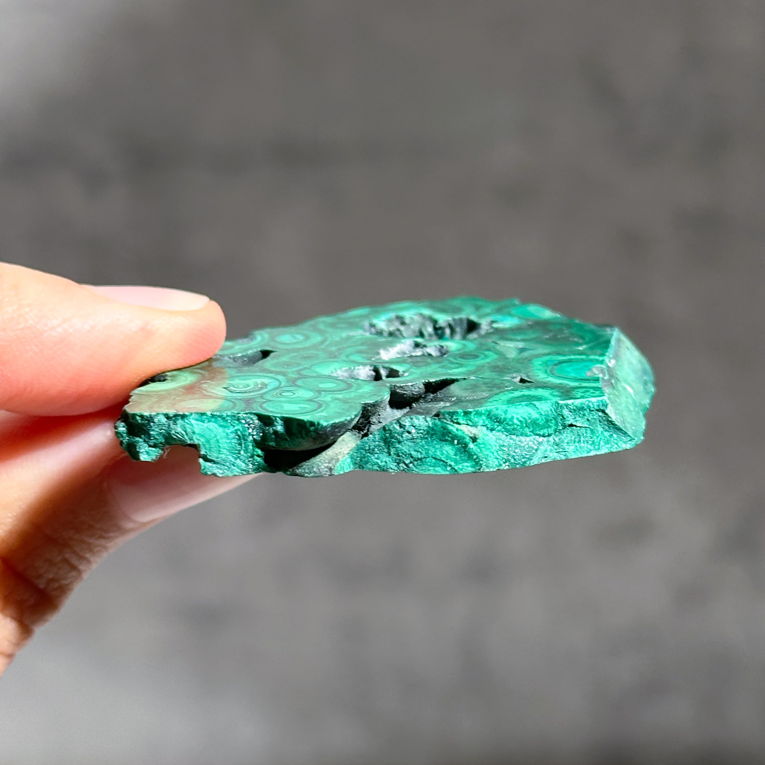 今回ご紹介するマラカイトは、コンゴ産の原石を板状にスライスしたもの。