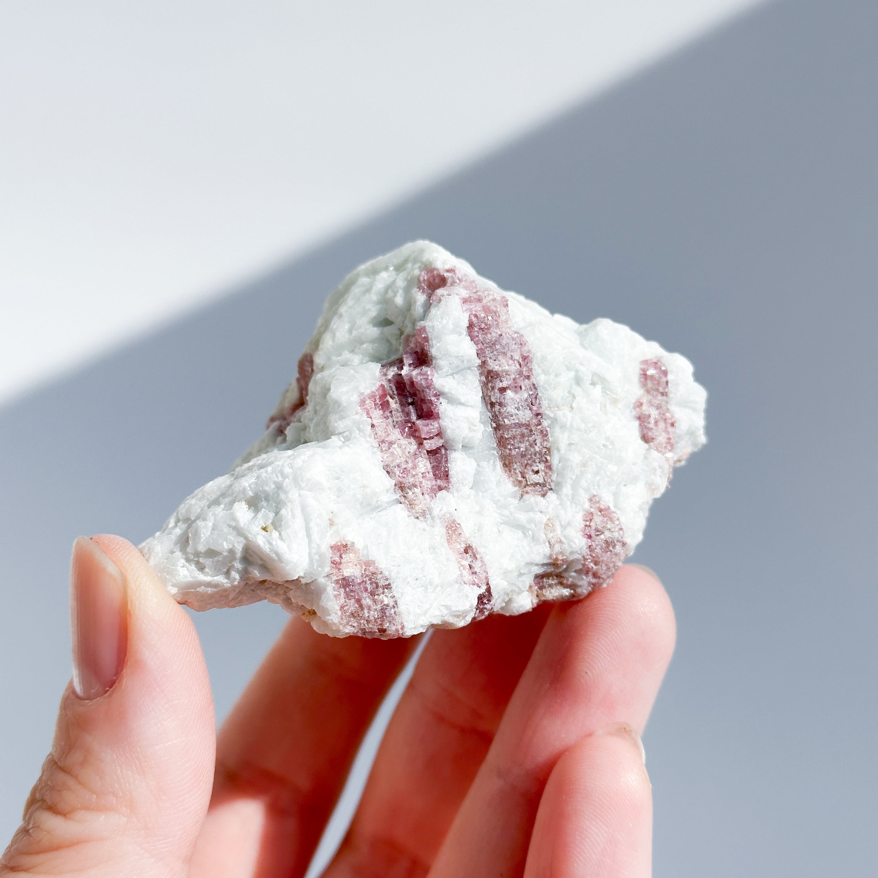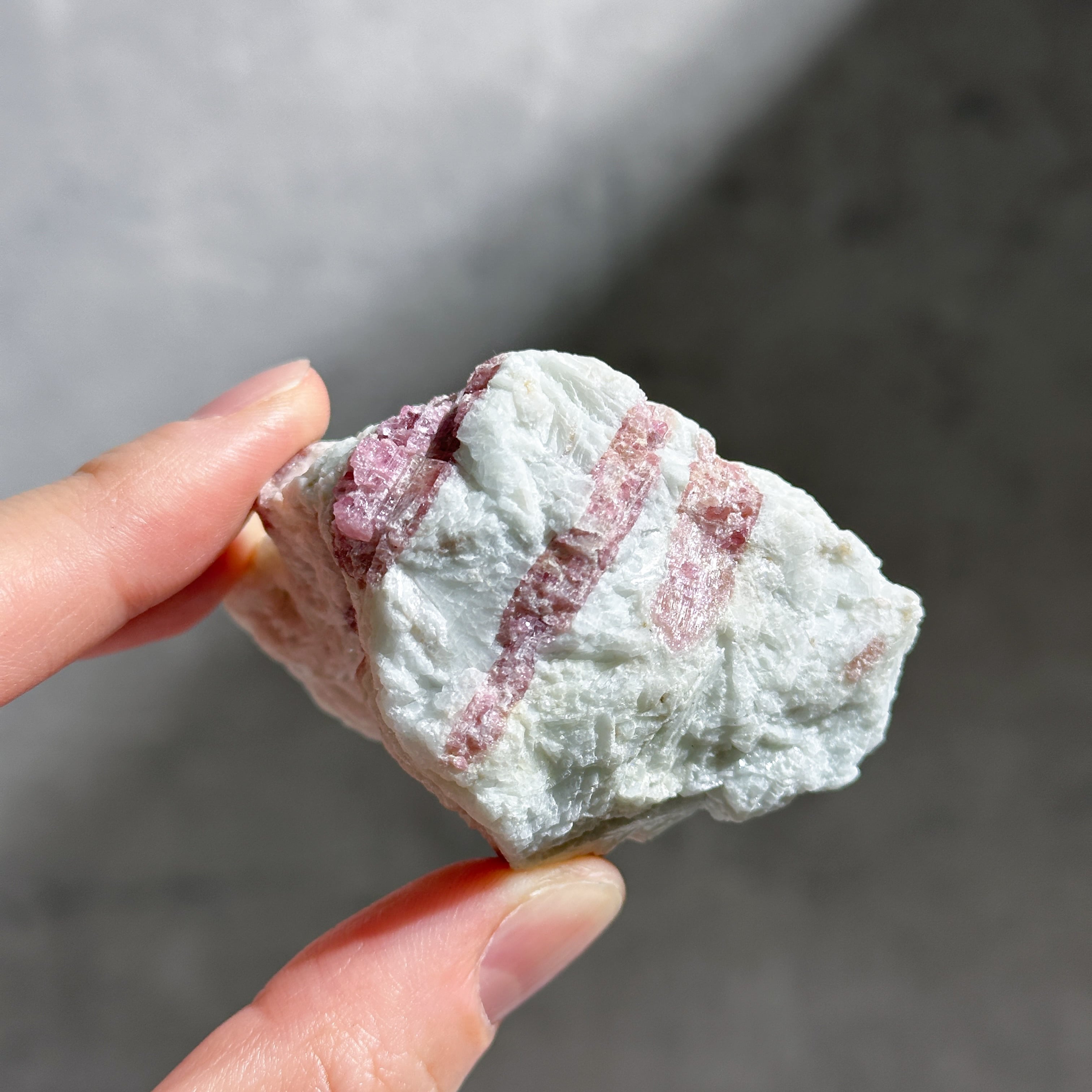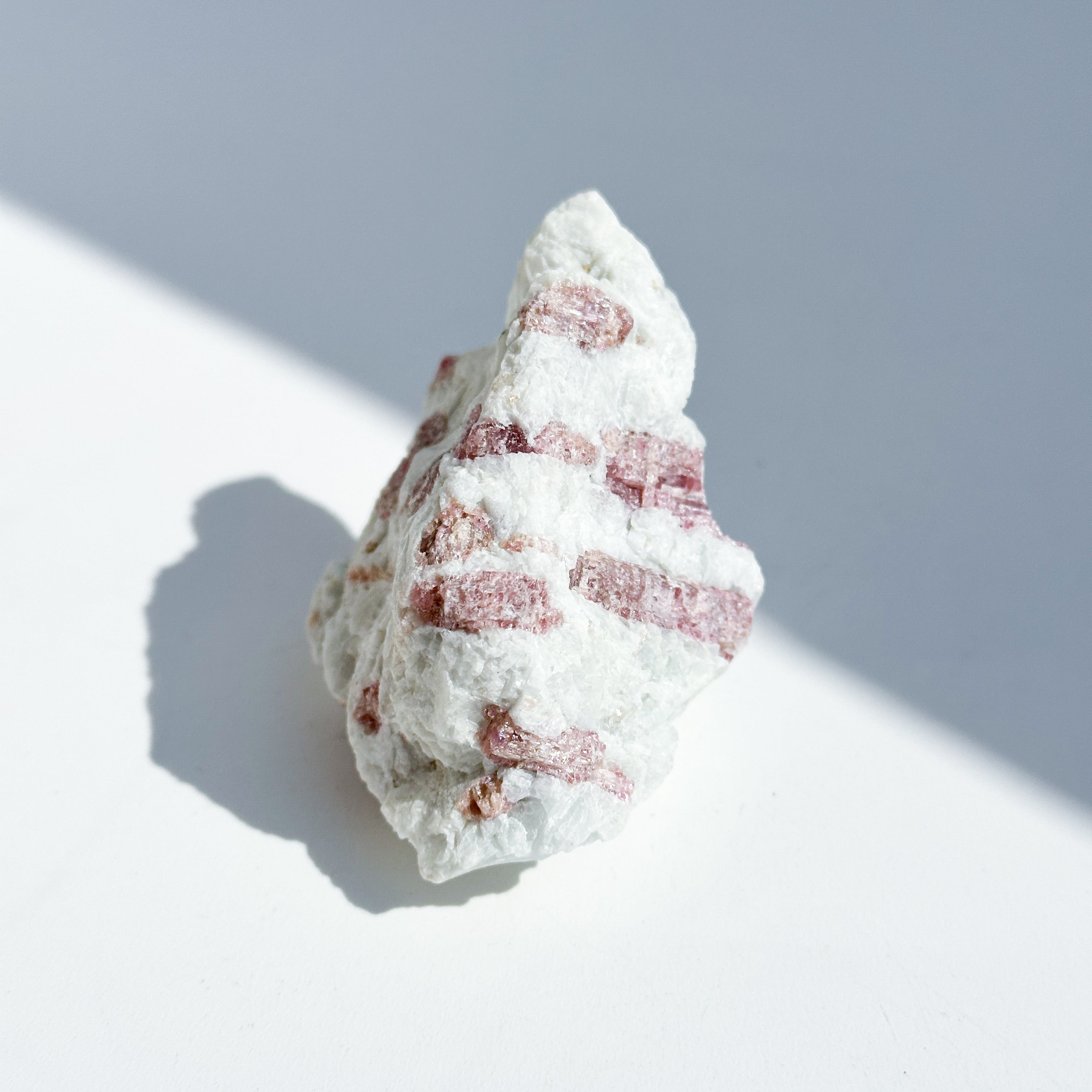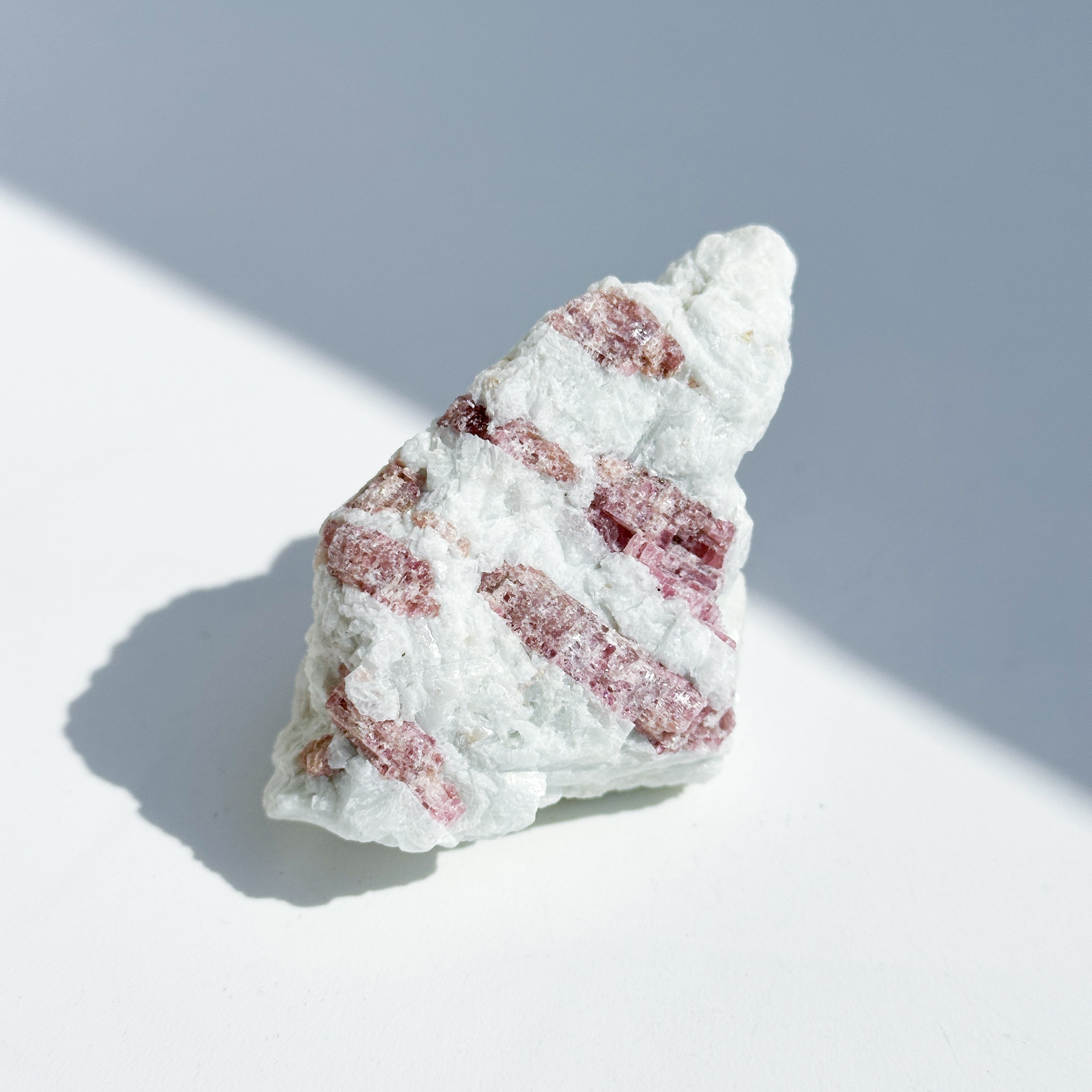 躍動するようにエネルギッシュなピンク色の鉱石、ピンクトルマリン。