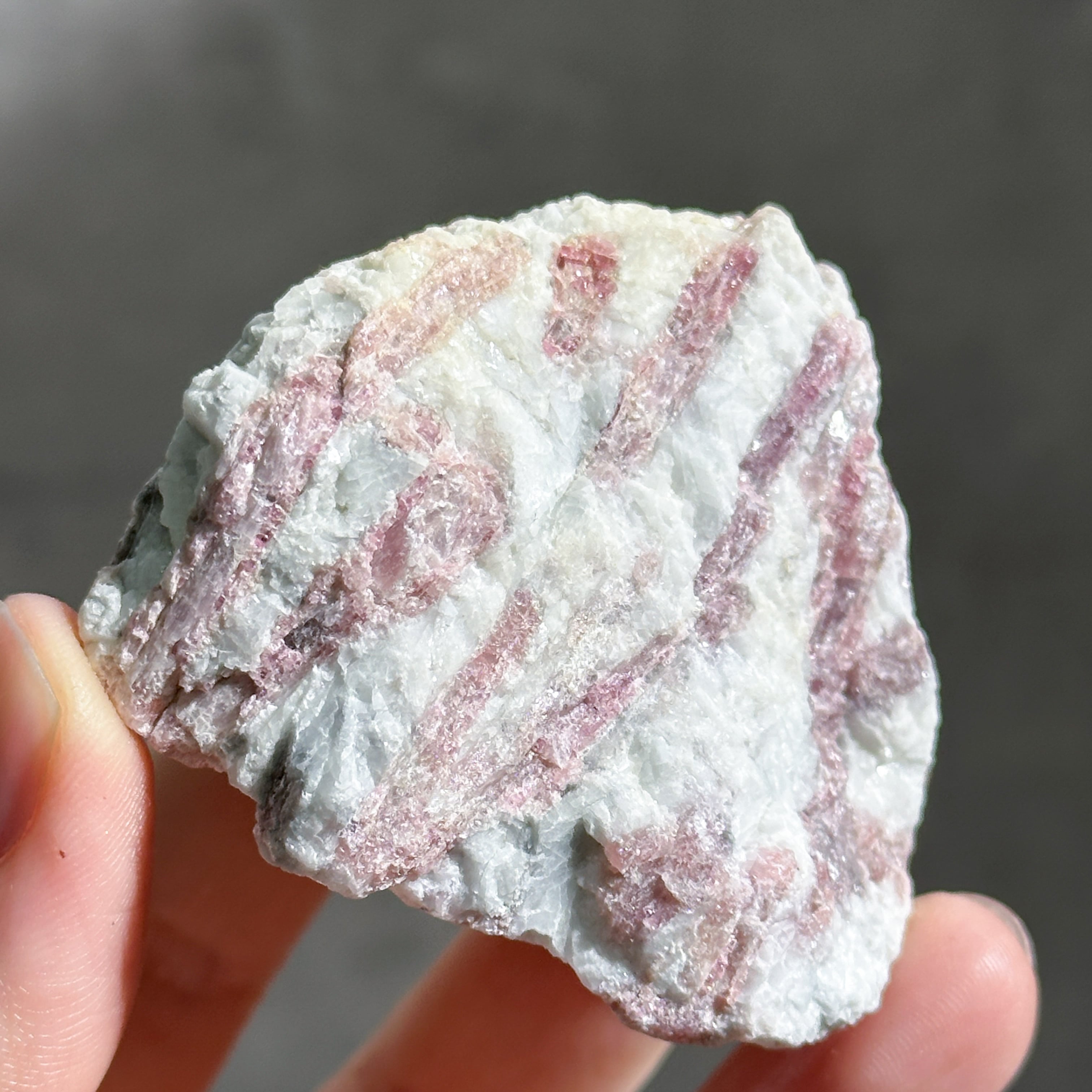 躍動するようにエネルギッシュなピンク色の鉱石、ピンクトルマリン。
